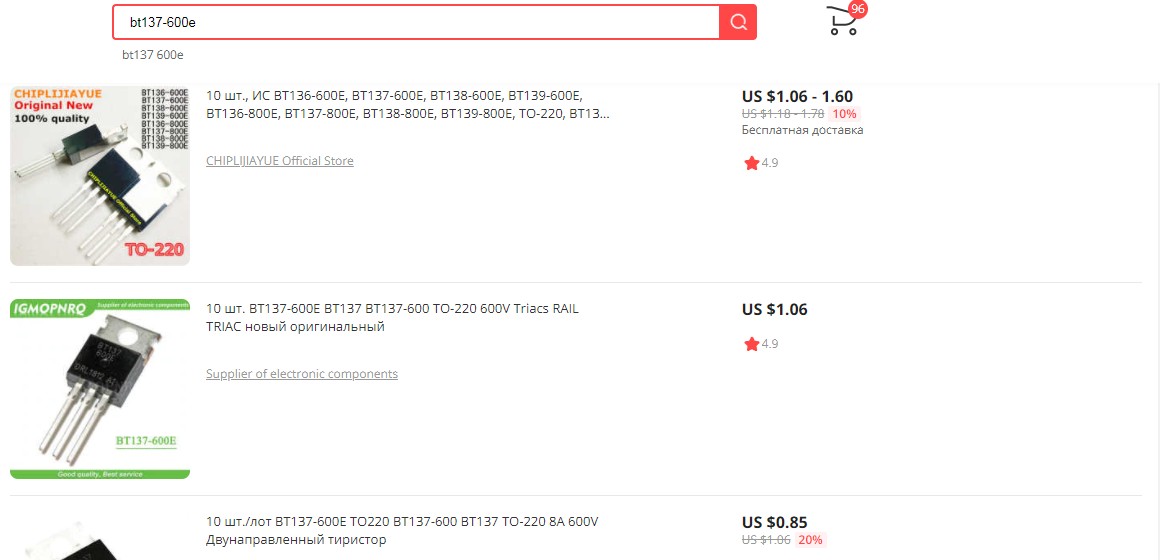 Тот же тиристор на Али стоит несколько долларов за пачку...