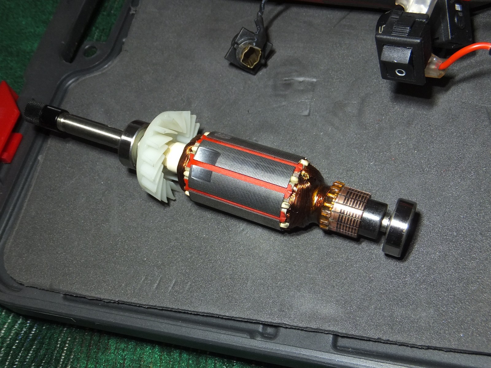 Судя по небольшому искрению и следам на контактах якоря можно понять что щетки новые и качественные, они даже не притерты с завода, потому не стоит сразу бросаться в работу и нагружать гравер на полную, следует его без нагрузки покрутить на разных оборотах минут 5-10.