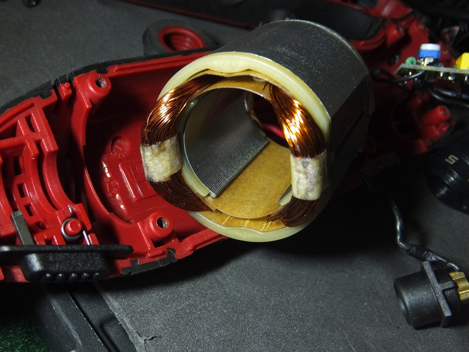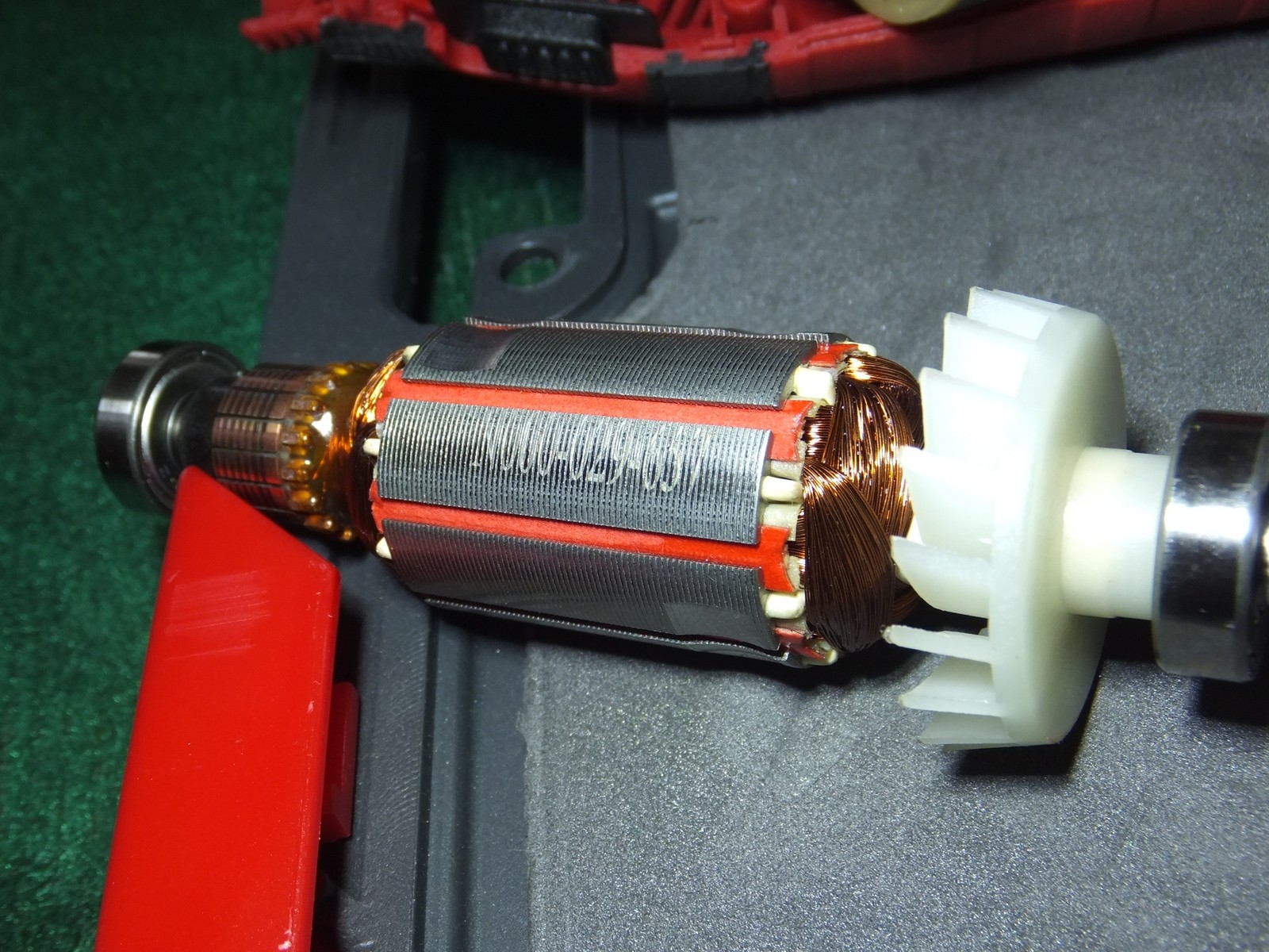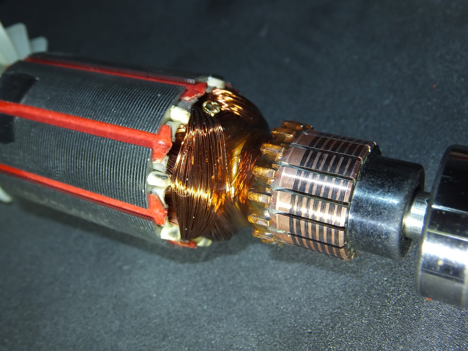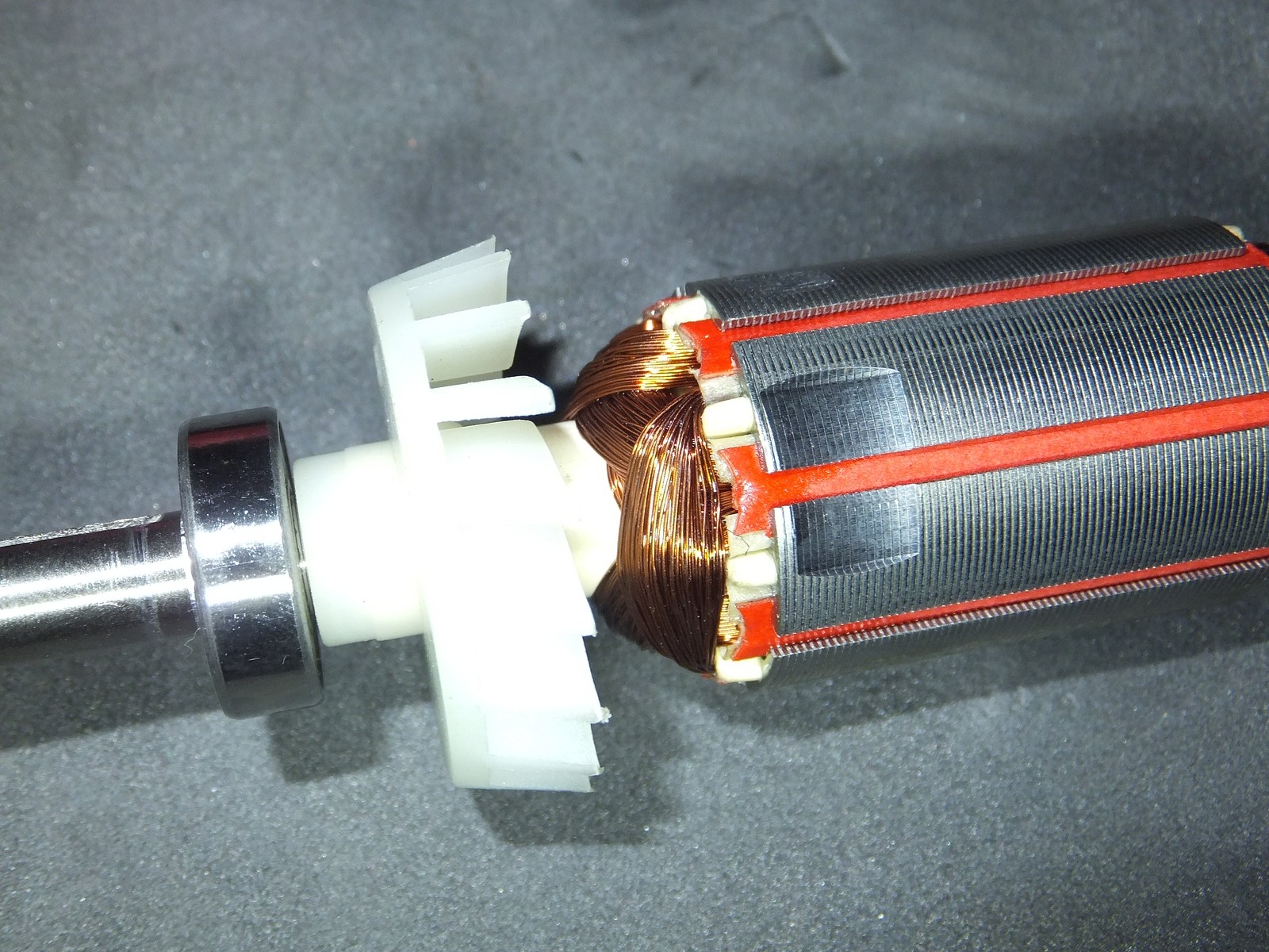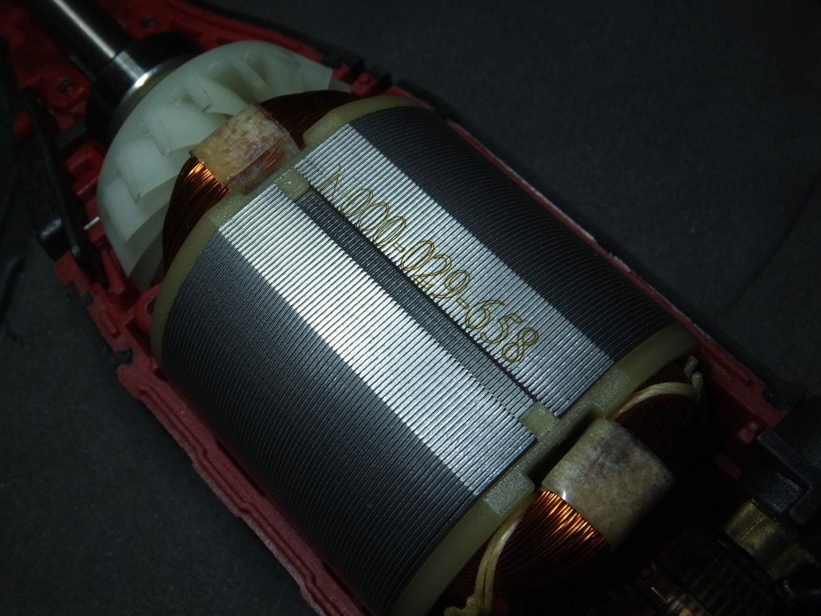 Якорь не бронирован, однако выглядит аккуратно, однако есть одна капля лака за которую зацепились мои глаза, со статором ничего примечательного, лаком пропитано конечно, сделано аккуратно, но и все на этом.