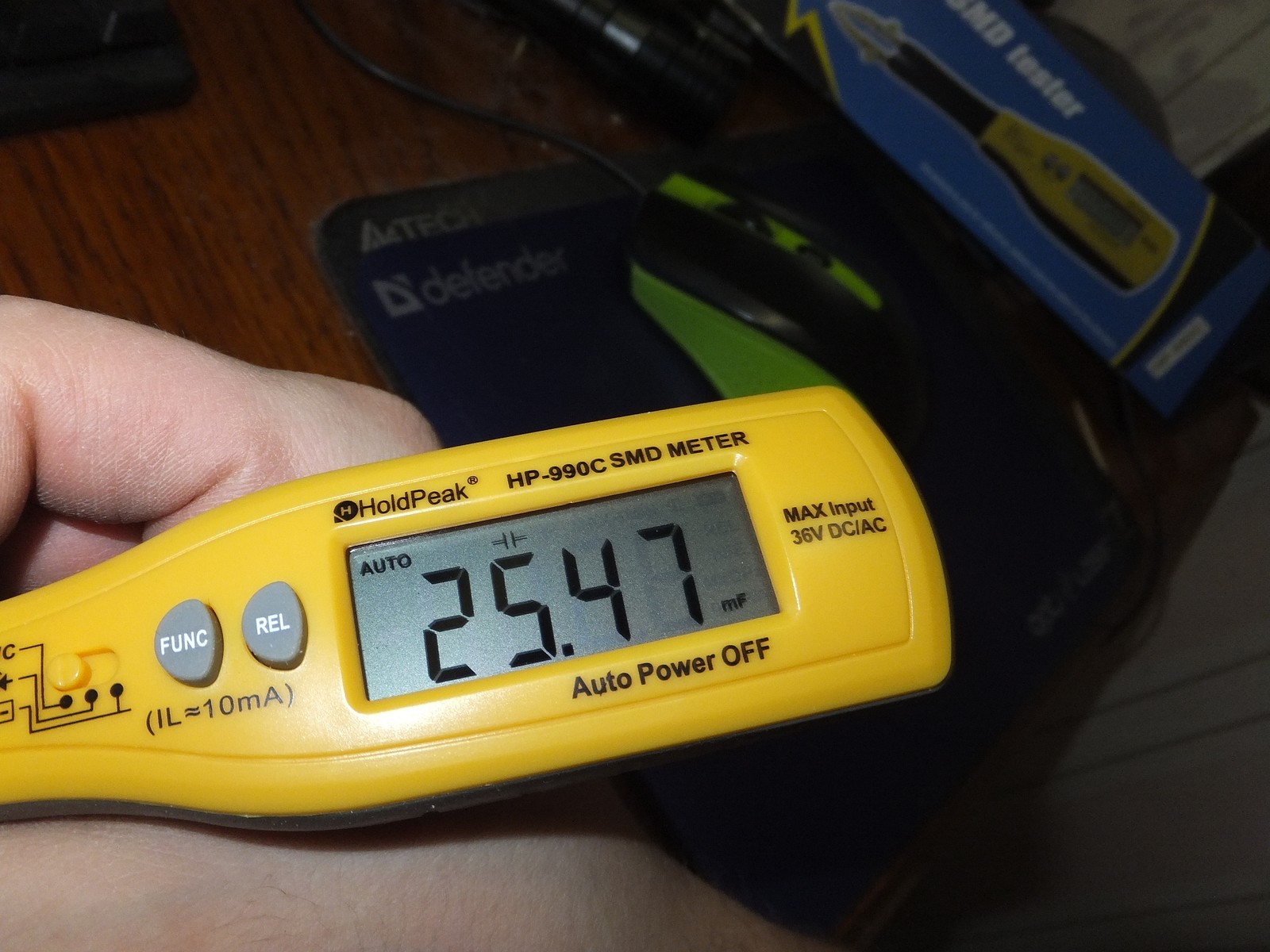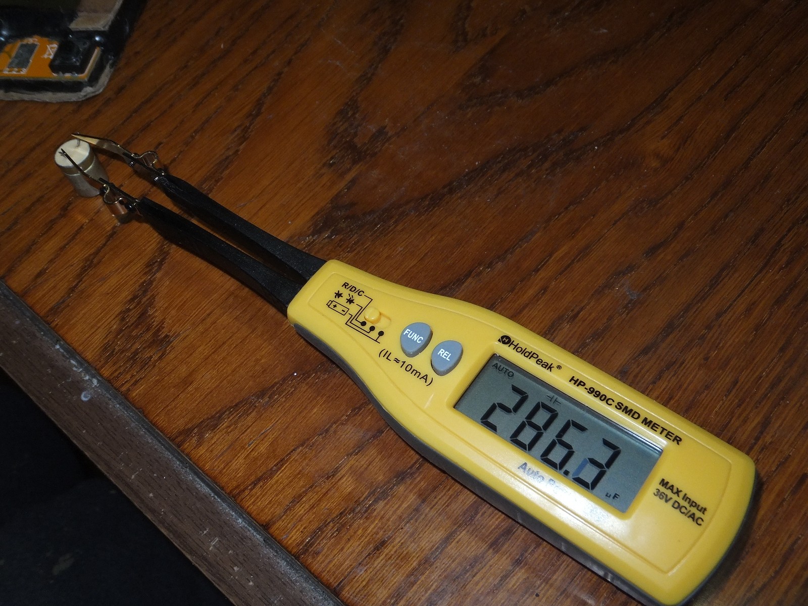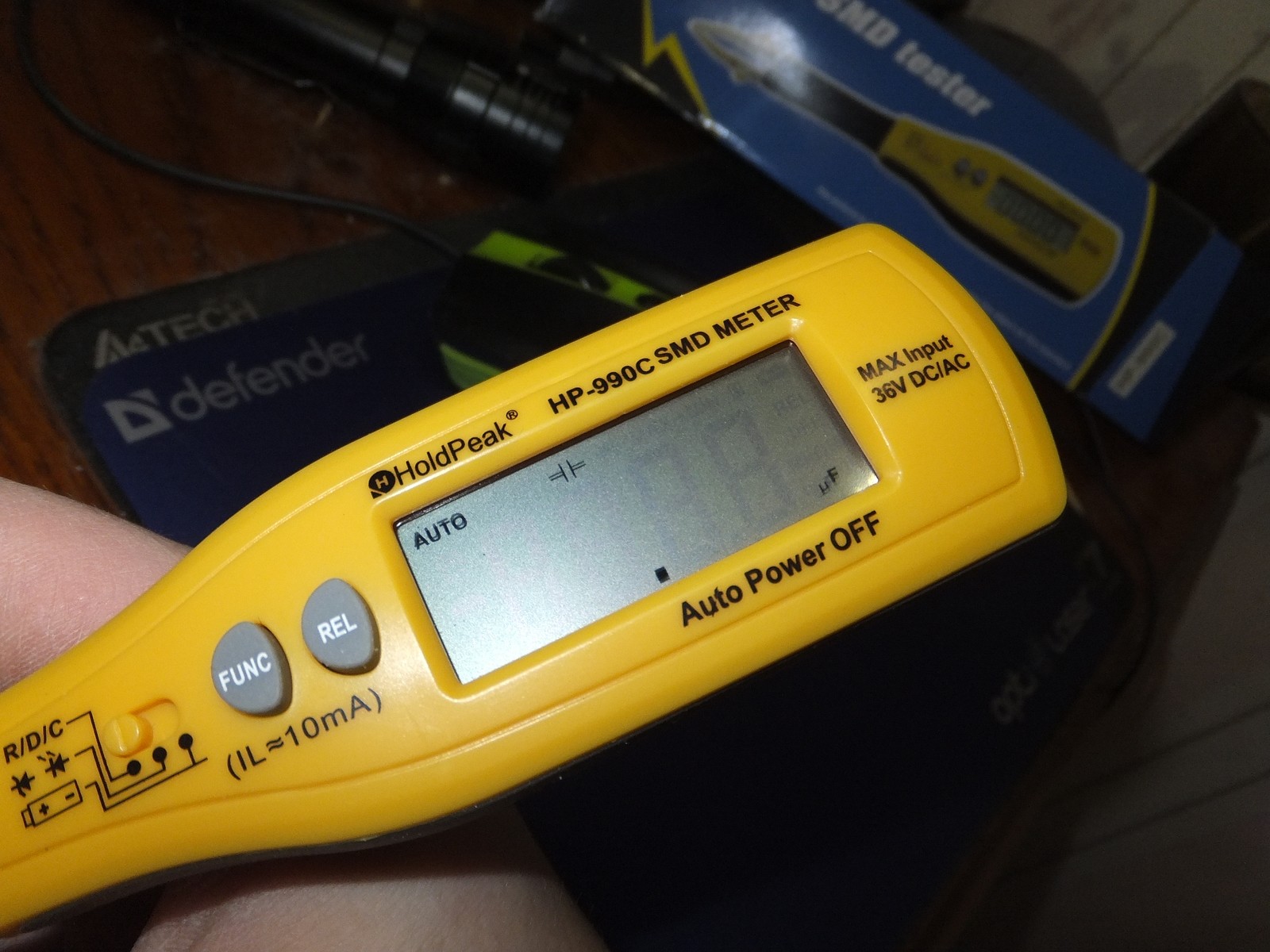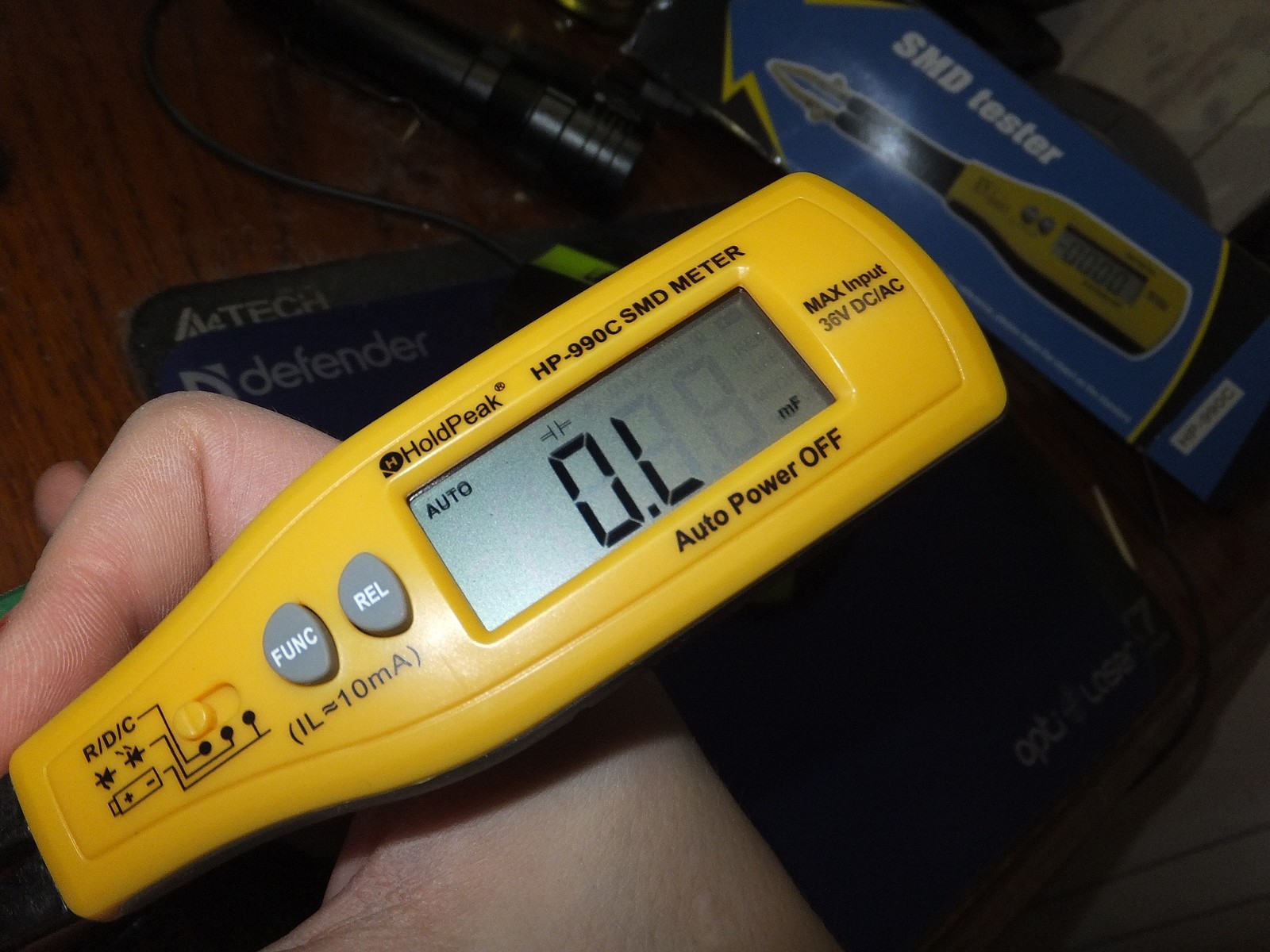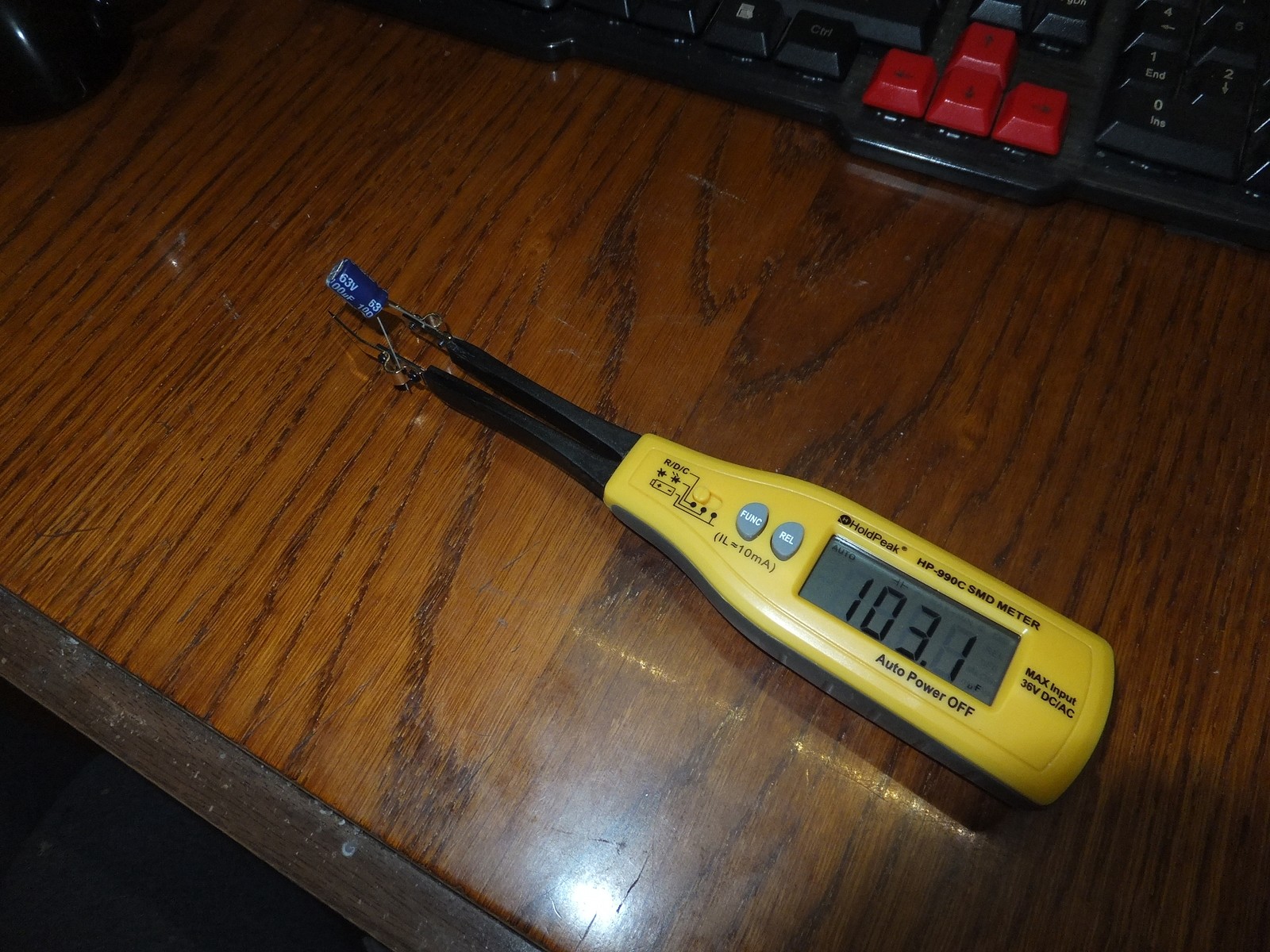 Маленький электролитический конденсатор получилось проверить, но показания оставляют желать лучшего.