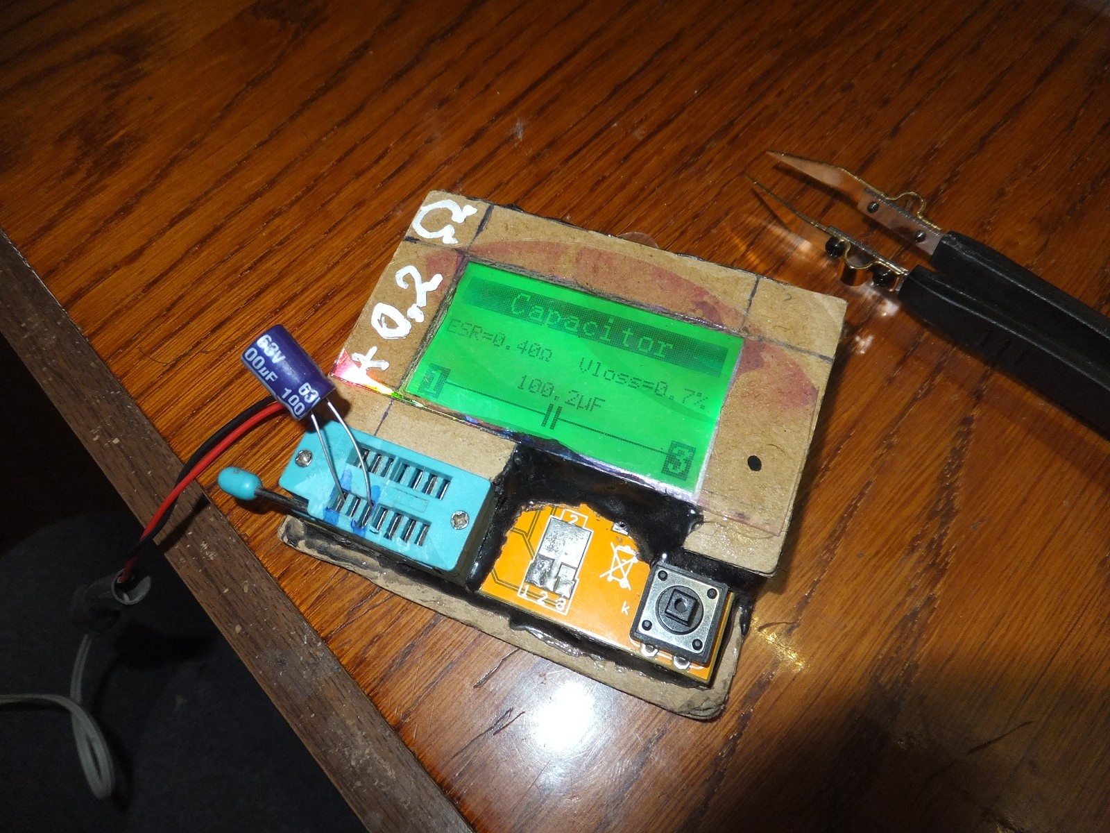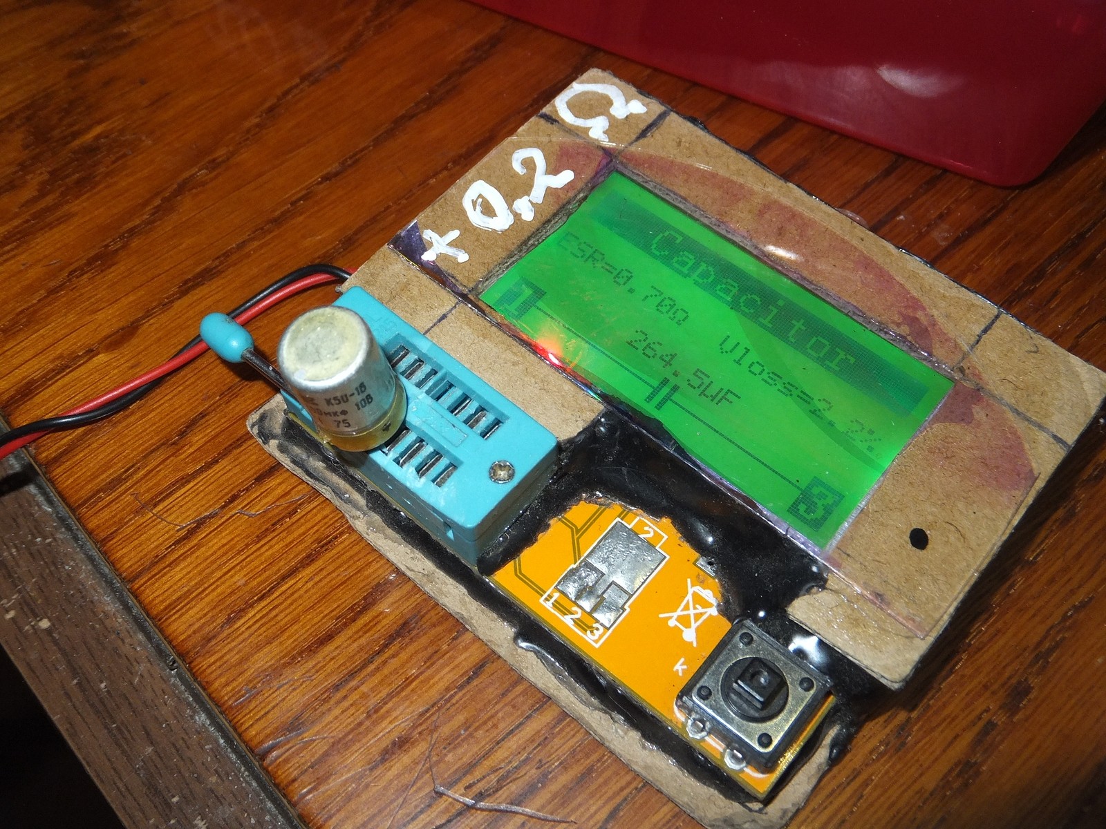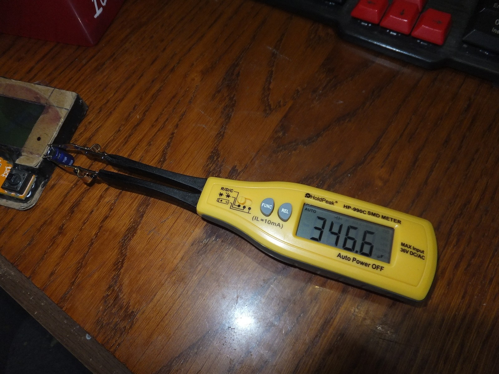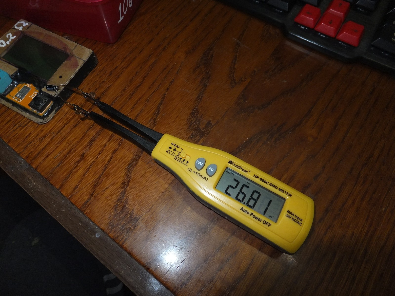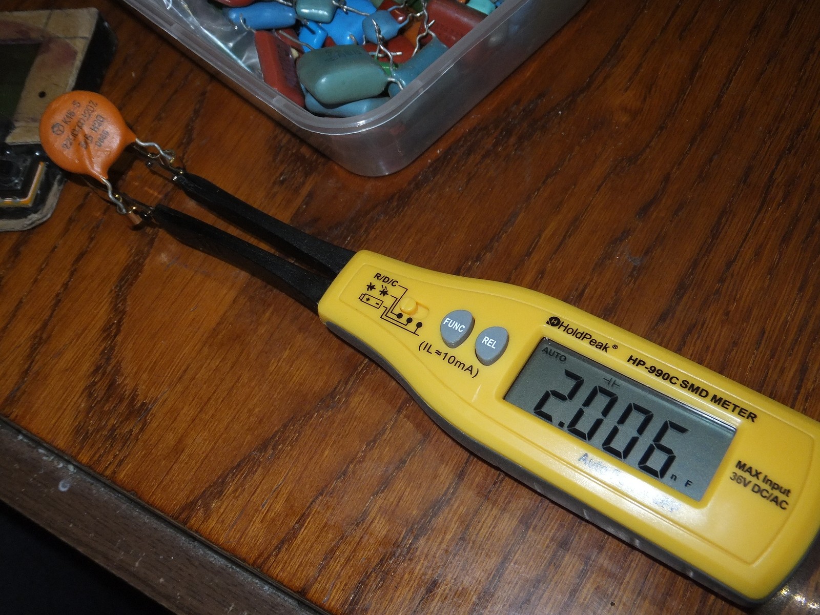 Маленький электролитический конденсатор получилось проверить, но показания оставляют желать лучшего.