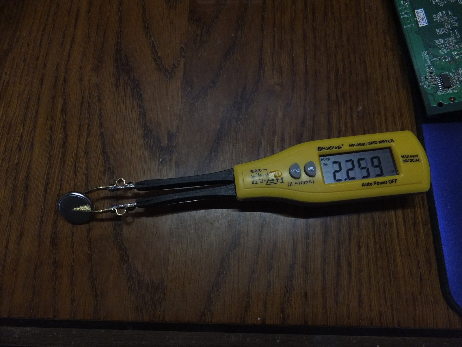 Режим измерения напряжения тоже показывает цифры, целых 2.259в насчитало, правда мой старый MS8264 насчитал 3.08в от этой же батарейки, погрешность явно не входит в заявленные 3.5%...