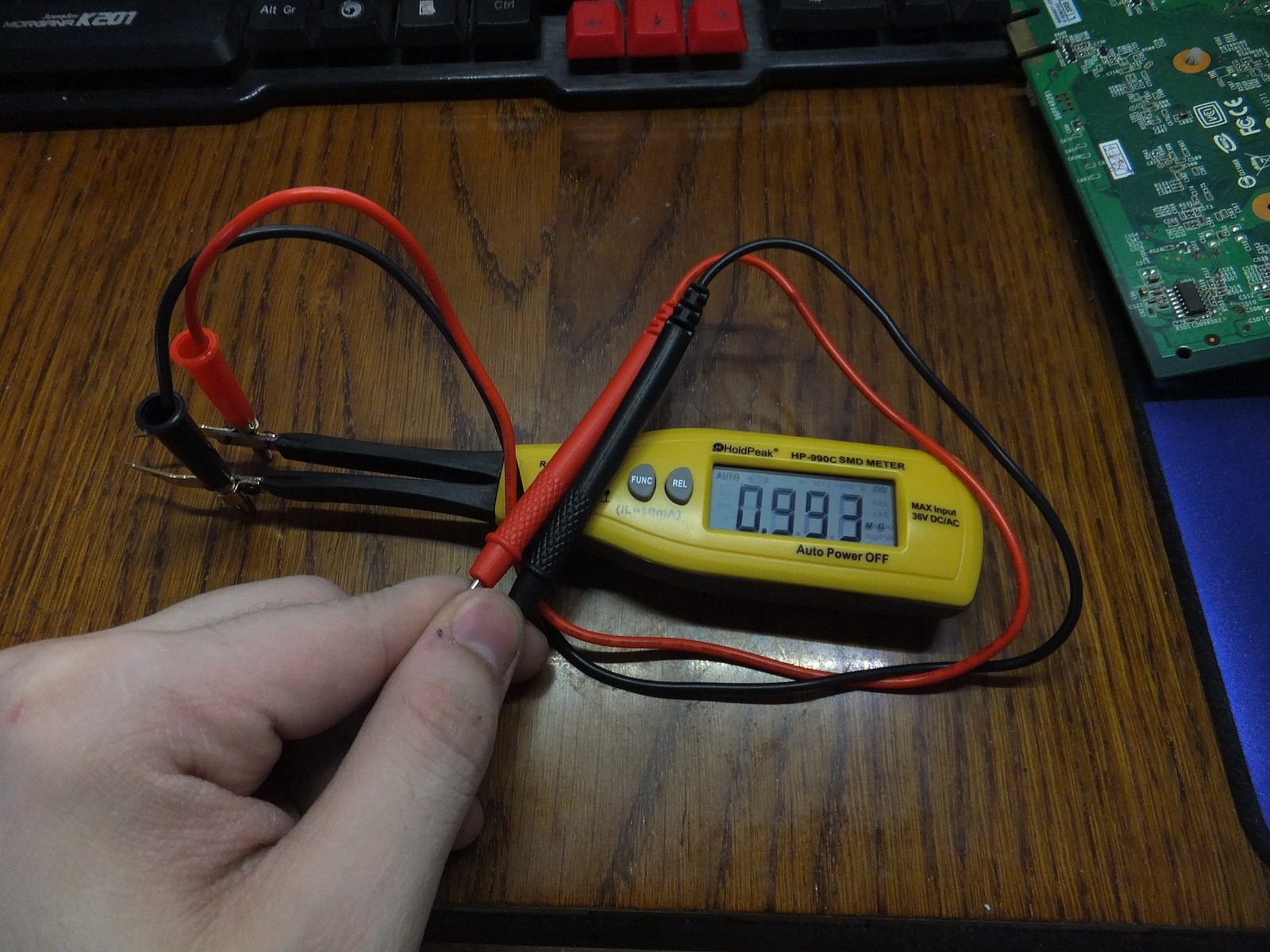 Керамический конденсатор тоже прозвонился как резистор, над этим конденсатором и некоторыми другими SMD тестер зависал ничего не показав.