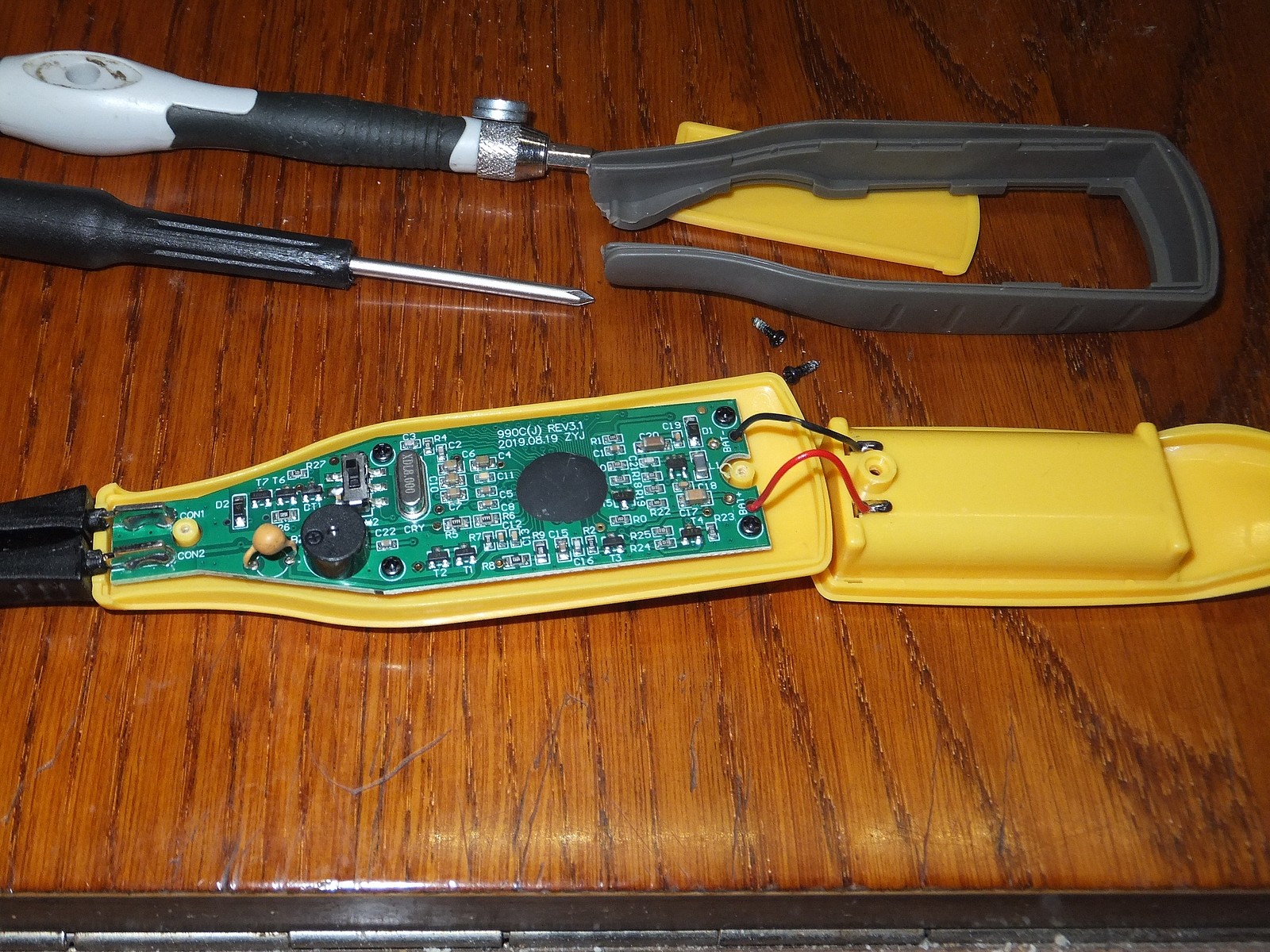 В ходе проверок было выяснено, что тестер все же работает, но измеряет только если надавить на клешни крепко держа корпус, на лицо отвал подумал я и вспомнил про ту самую традиционную разборку.
