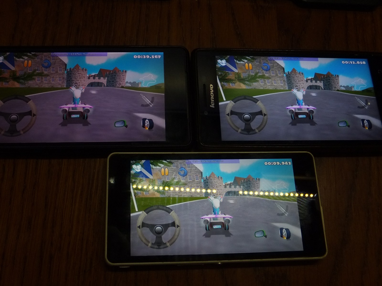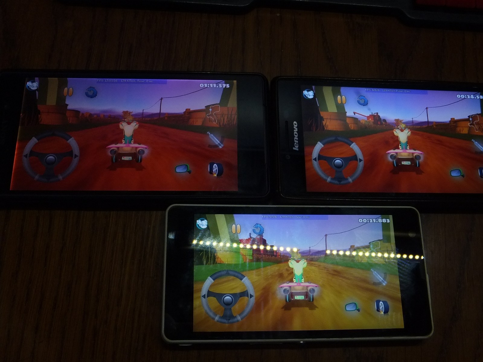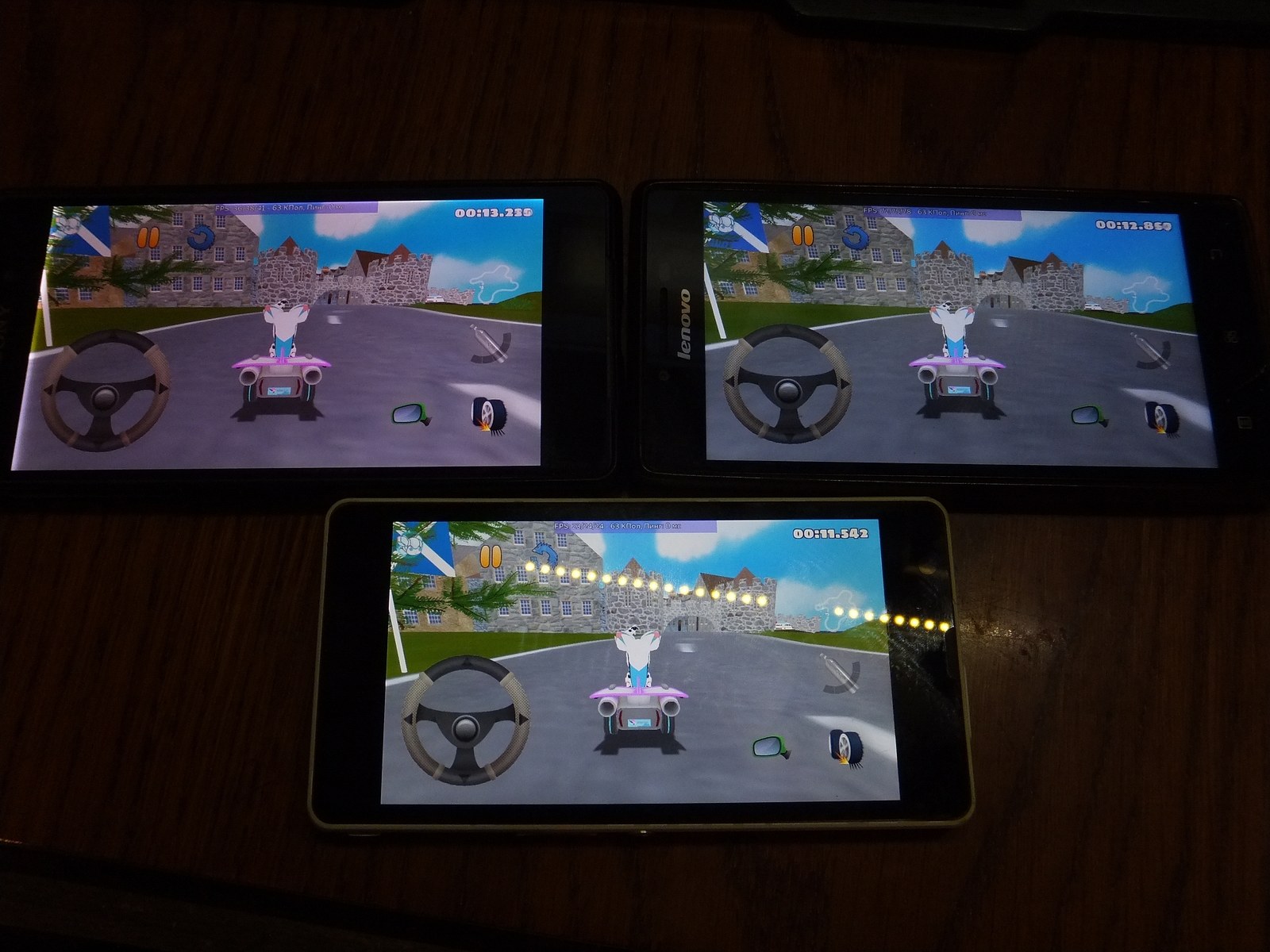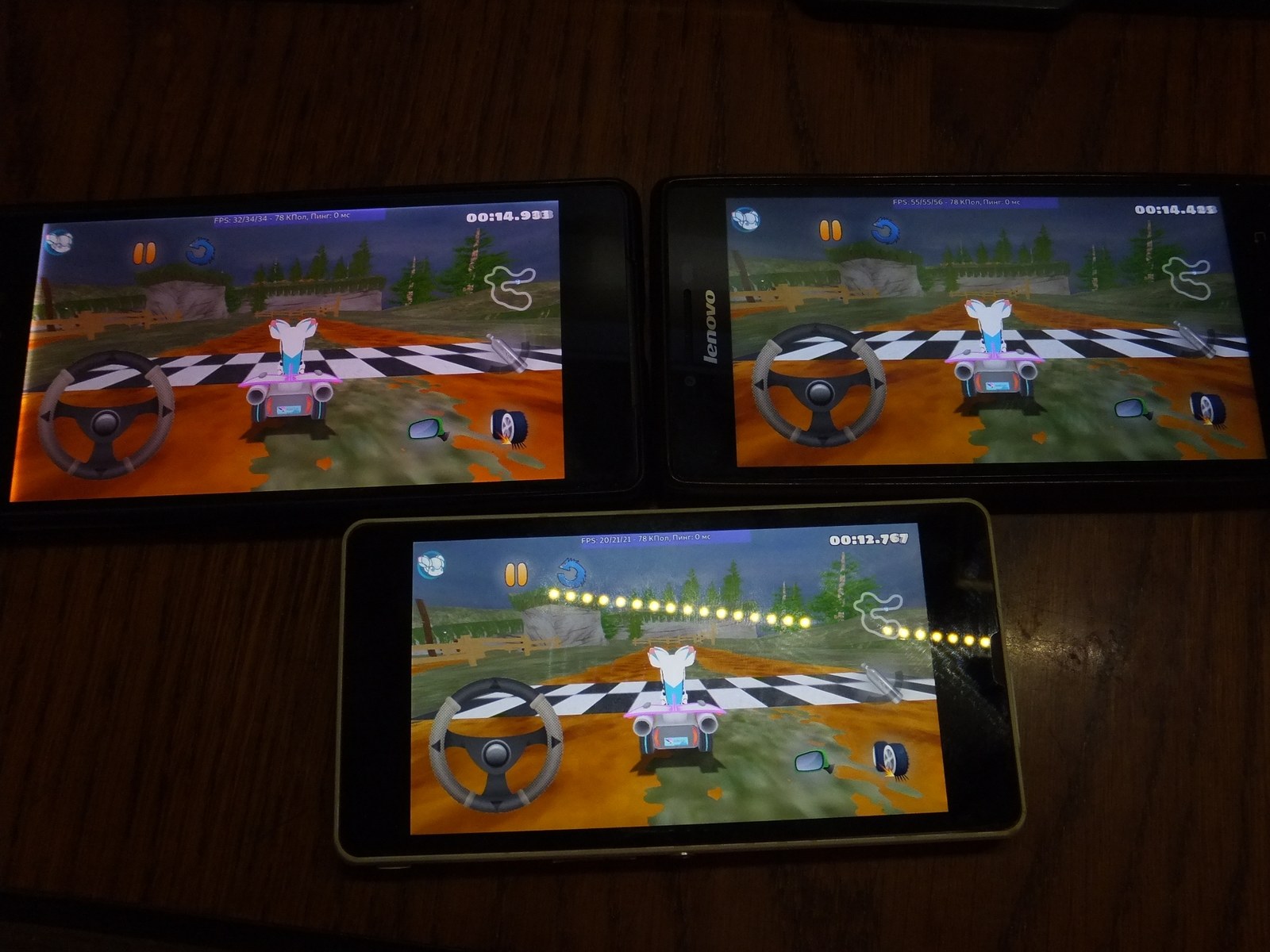 Ожидаемо FPS значительно снизился по сравнению с главным меню, причем я не заметил падения производительности со временем ни у одного из смартфонов.