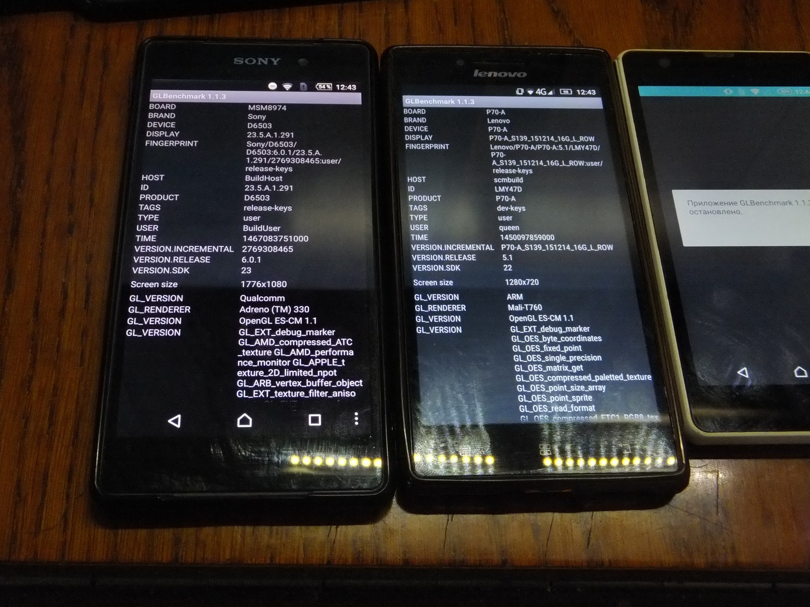 Единственное чем оказался полезен бенчмарк это тем что показывает информацию об OpenGL, но и тут не без сюрпризов, на Sony C5503 падает с ошибкой...