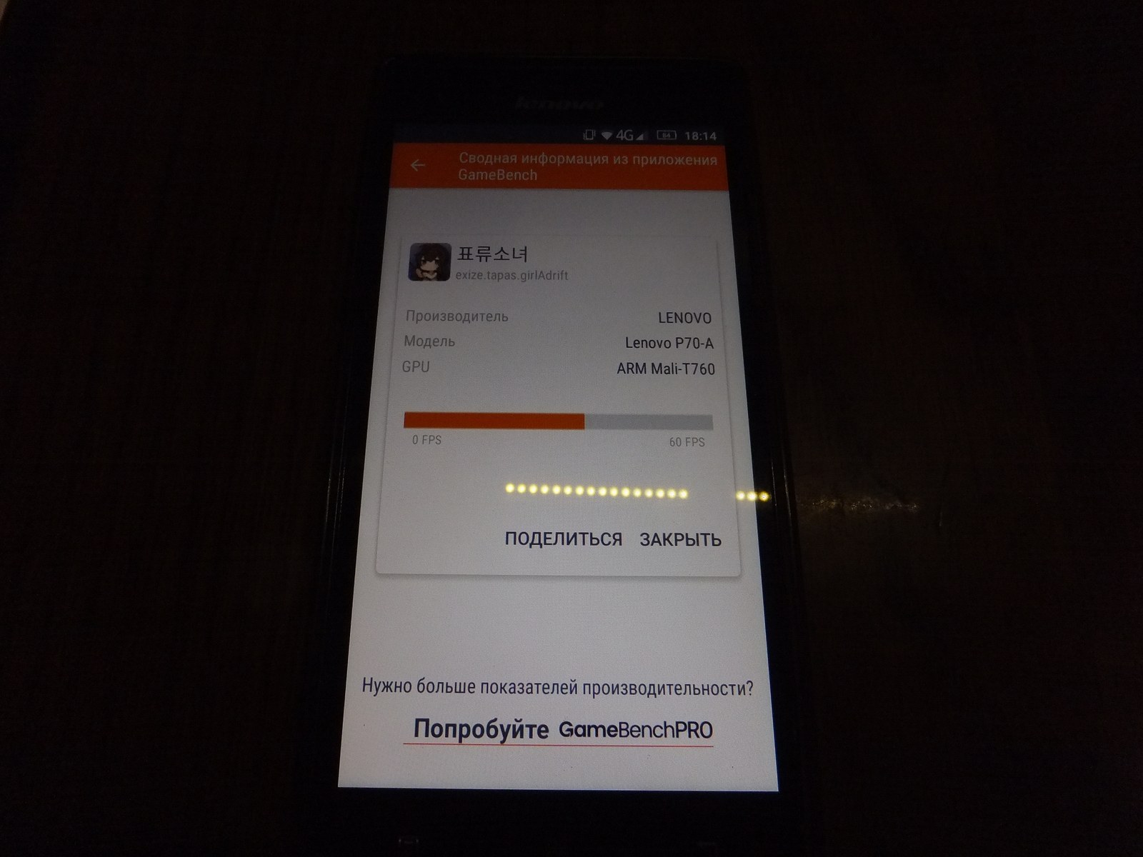 В случае Sony Z2 я так и не дождался пока GameBench покажет 60 FPS, максимум набирало 58 FPS на 60 Гц матрице, это конечно больше чем у Sony C5503, но предел не достигнут как это могла сделать Lenovo P70-A.