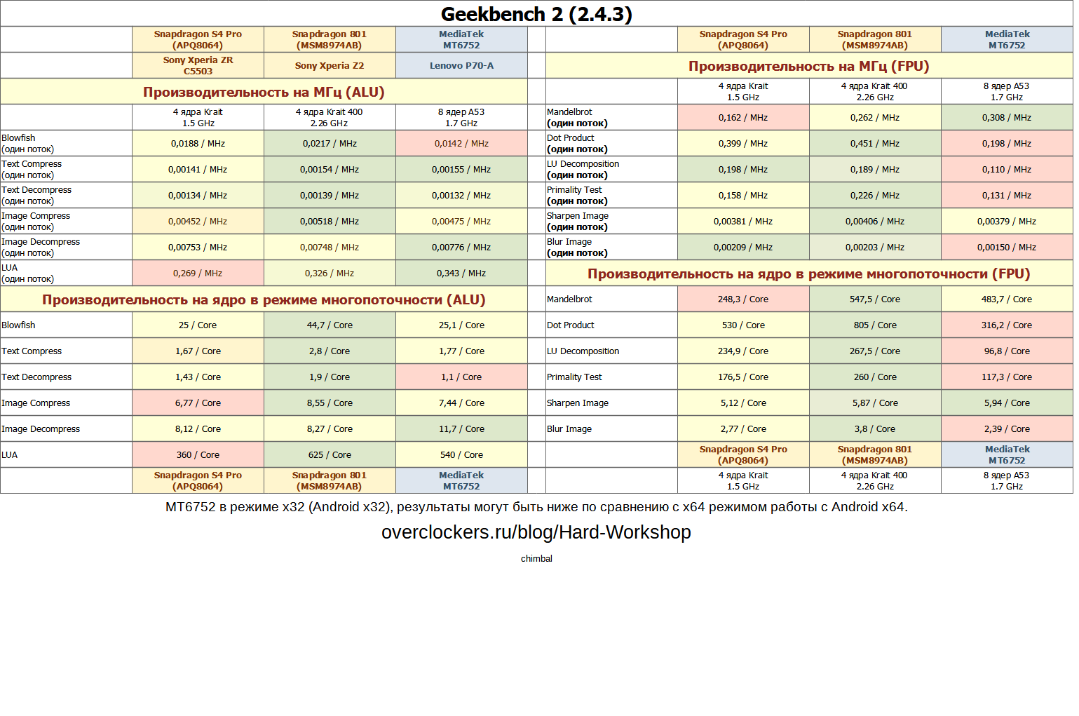 Если в плане ALU был примерно паритет между SNP-801 и MT6752, то FPU более производительный в целом у ядер Snapdragon, хотя и не везде.