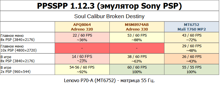 Тем временем APQ8064 не осилил даже 2x (960x544) разрешение в полную скорость, но нативное для Sony PSP разрешение данный SOC точно вытянет.
