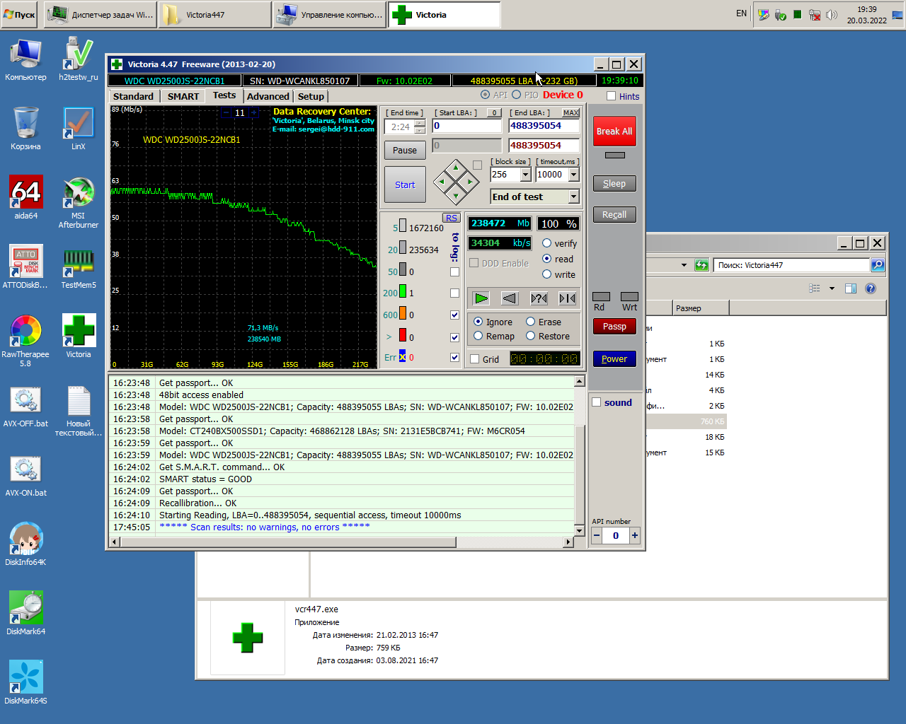 Далее я добавил модуль памяти на 2 ГБ ибо меня просили добавить если будет, загрузившись со своего SSD операционная система начала чинить файловую систему HDD, после я запустил TestMem5 проверить нет ли ошибок ОЗУ, полностью проверил жесткий диск на битые сектора, но проблем абсолютно никаких, жесткий диск вообще в идеальном состоянии оказался.