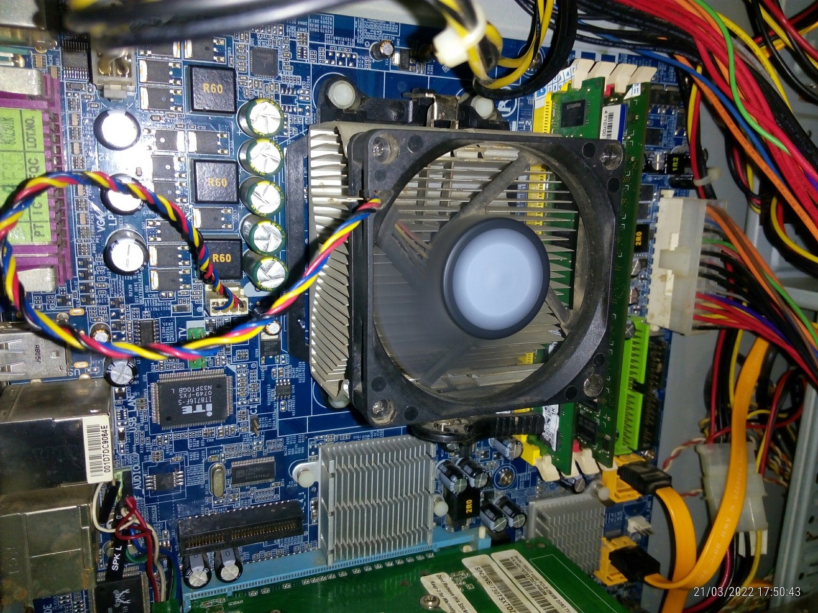 Но оставлять человеку такой процессор я не хотел, потому установил более новый и производительный Athlon II x2 215, снова без термопасты устанавливаю брусок охлаждения, проблем никаких даже при нагрузке на FPU.