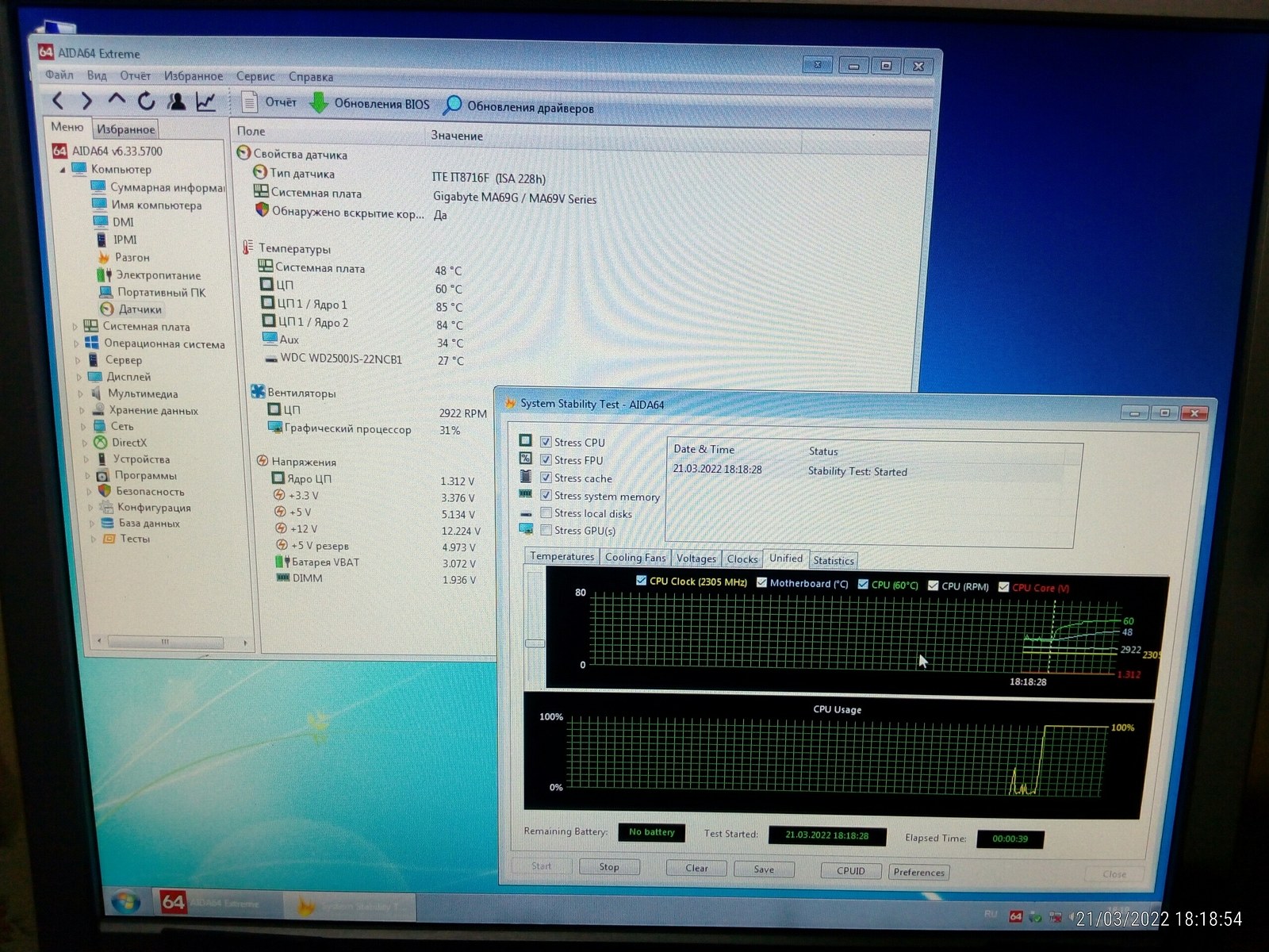 В общем несмотря на дешевую GD100 с неизвестным зазором так как герметик я не убирал полностью, температурный режим процессора пришел в более адекватный режим, только при тестировании FPU температура выходит за 90 градусов.
