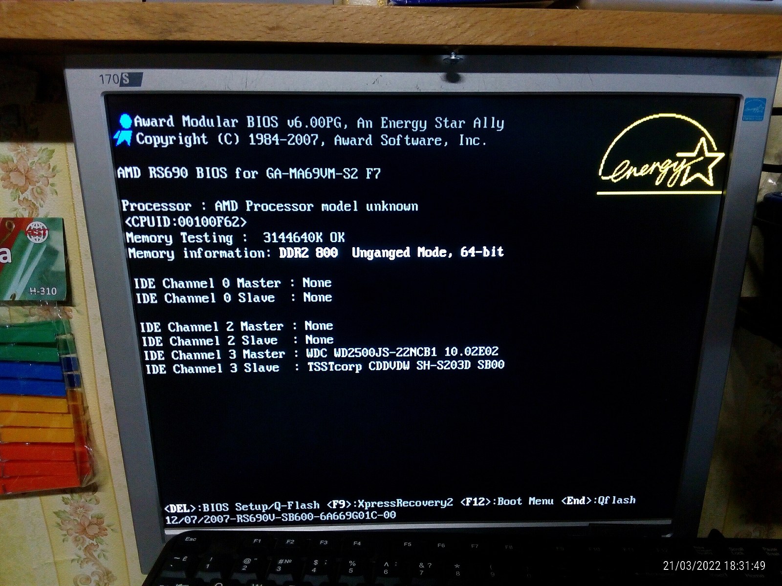 На всякий случай я решил обновить BIOS в системной плате, тем более Gigabyte добавила микрокоды на процессоры второго поколения (AM3) хотя плата изначально выпускалась как AM2, это наглядный пример как от программной части зависит работоспособность реального оборудования.