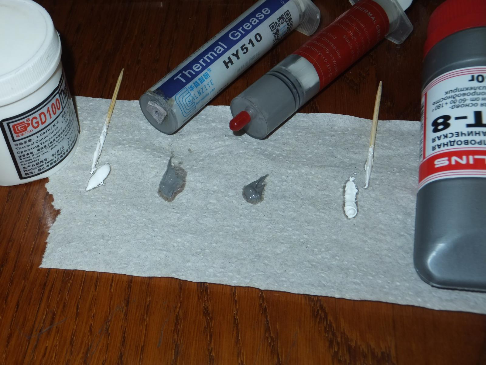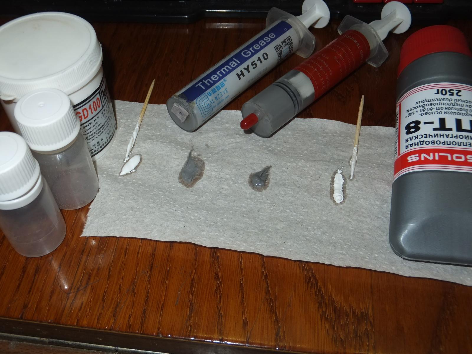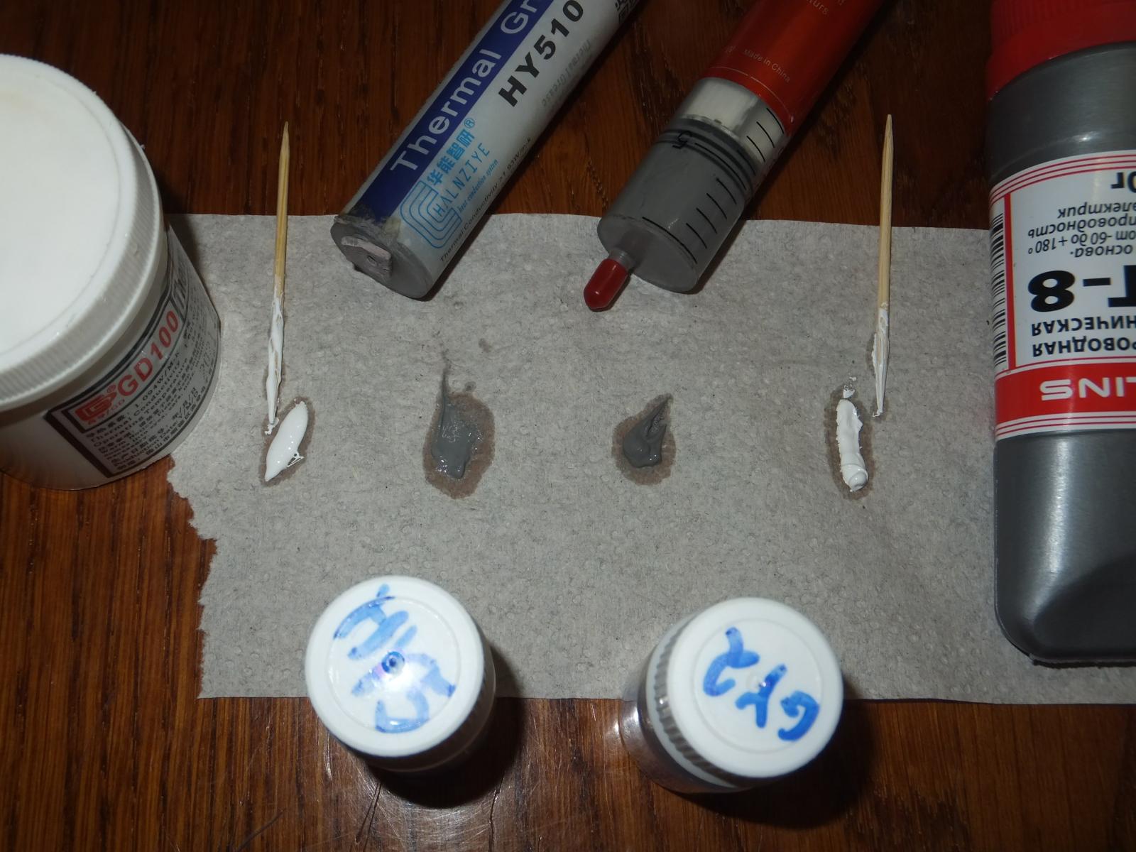Чтобы объективно сравнить пасты между собой я планировал их вылить в небольшие баночки и перемешать до однородной консистенции, но GY260 настолько плотная, что выдавить её из шприца невозможно, вернее возможно, но порезаться ошметками пластика не то к чему стоит стремиться...