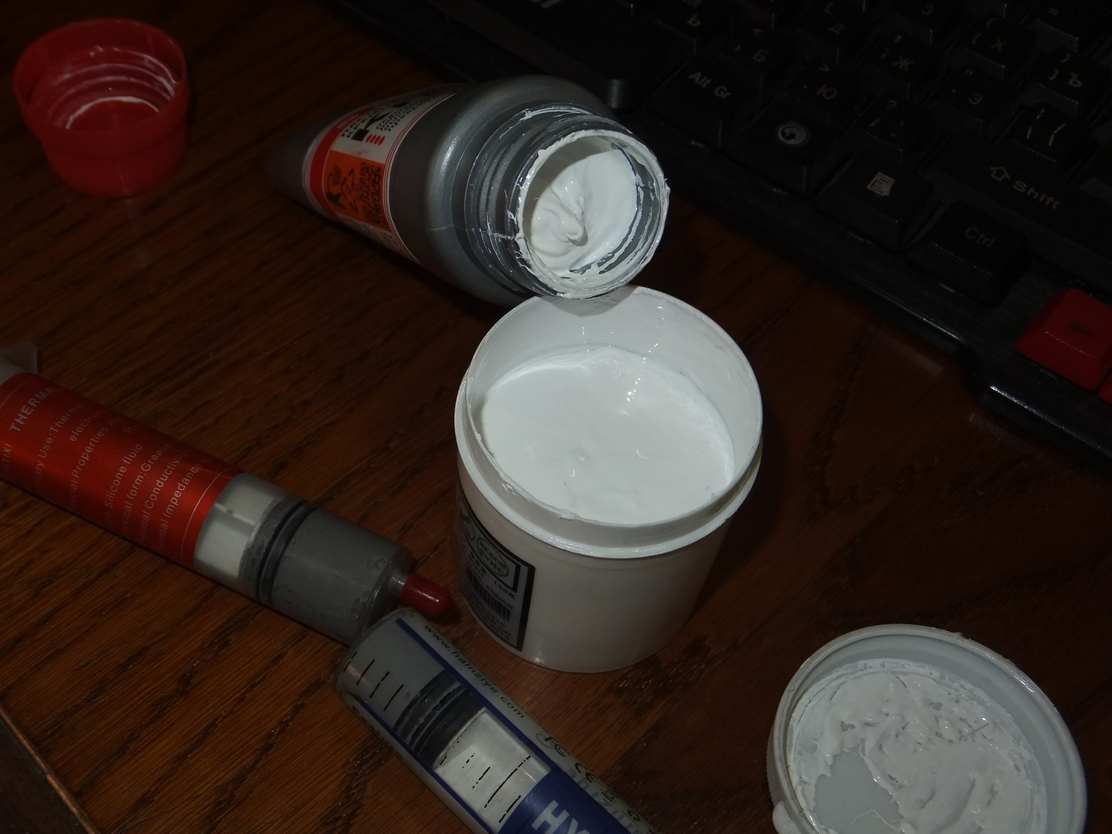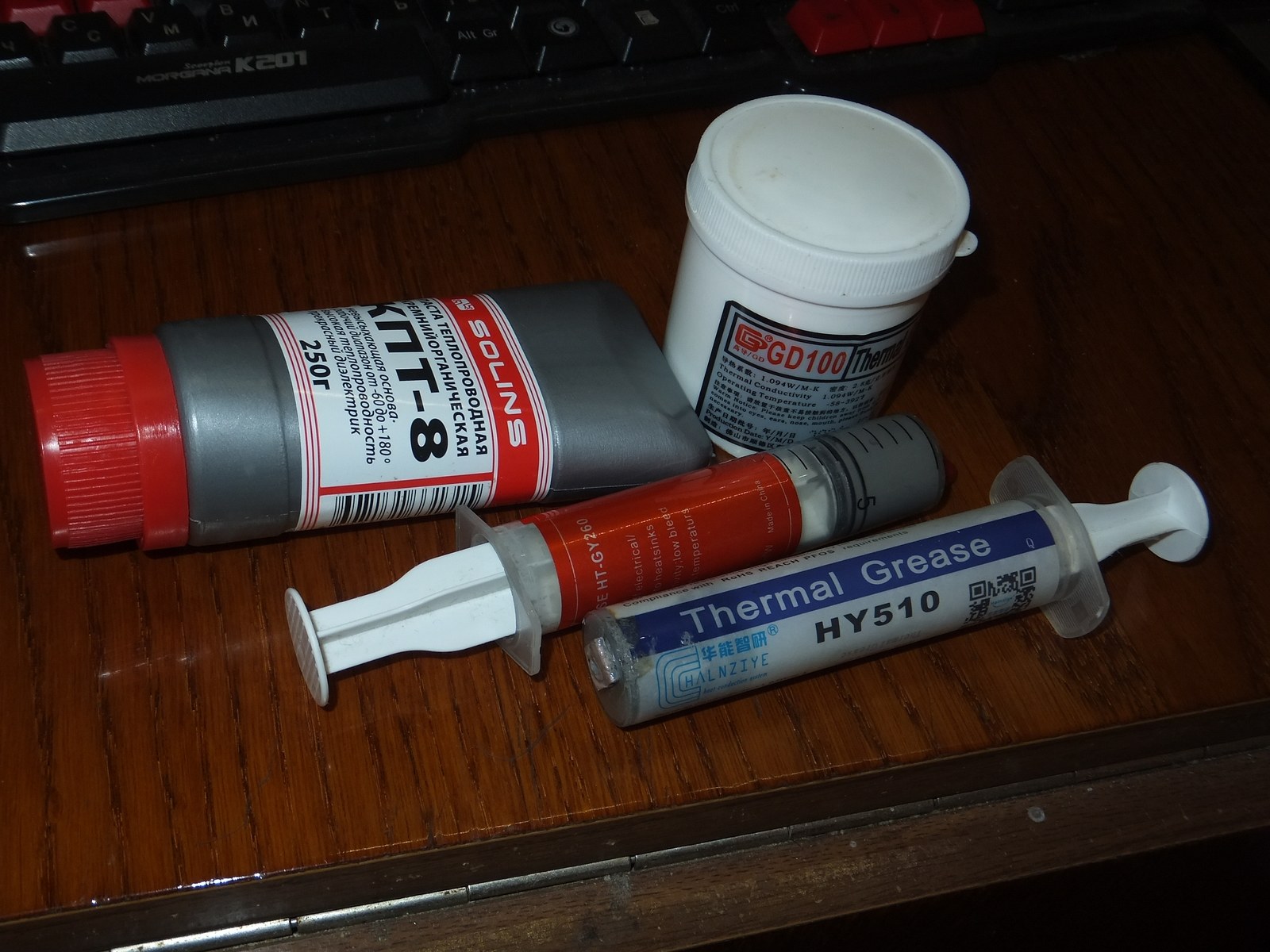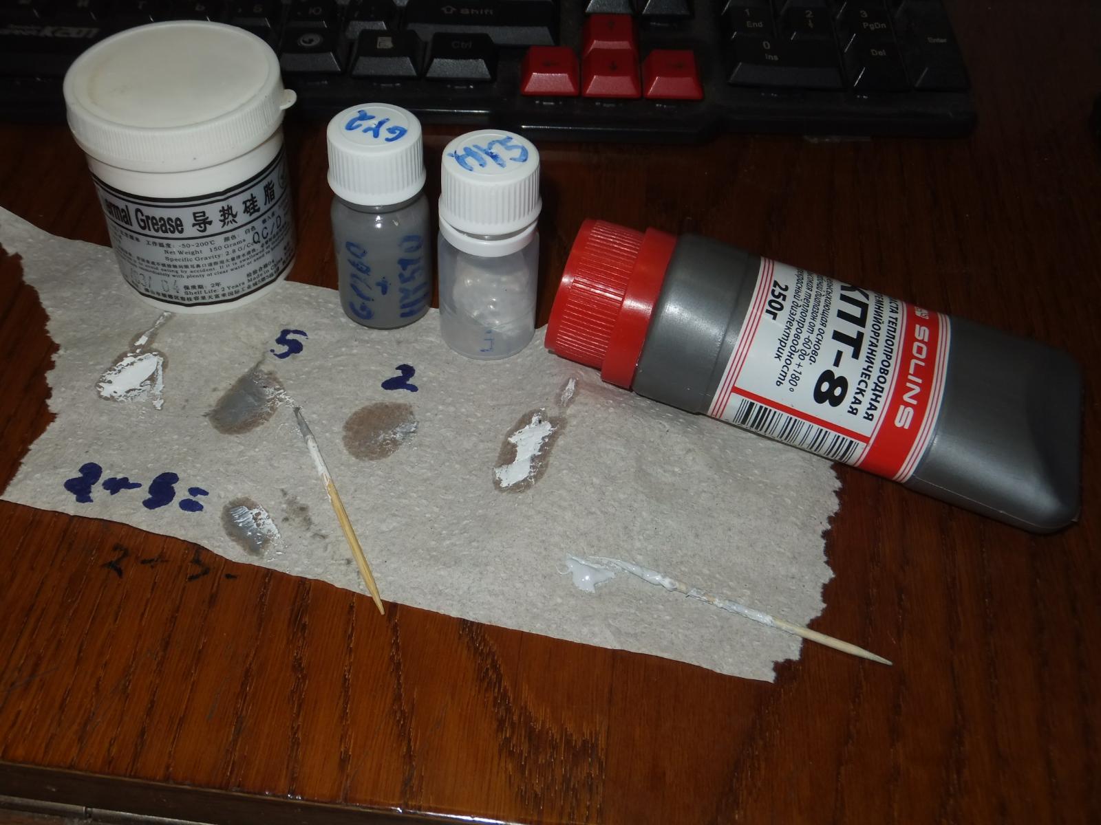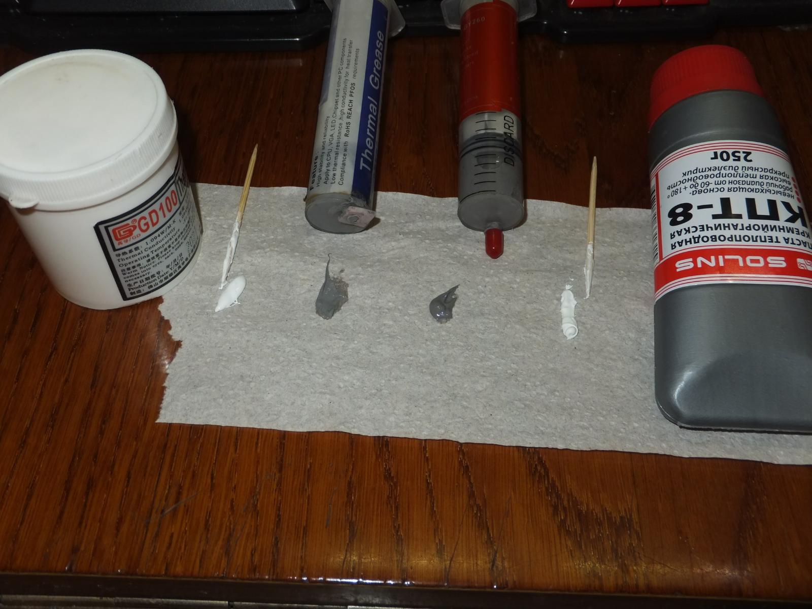 Чтобы объективно сравнить пасты между собой я планировал их вылить в небольшие баночки и перемешать до однородной консистенции, но GY260 настолько плотная, что выдавить её из шприца невозможно, вернее возможно, но порезаться ошметками пластика не то к чему стоит стремиться...