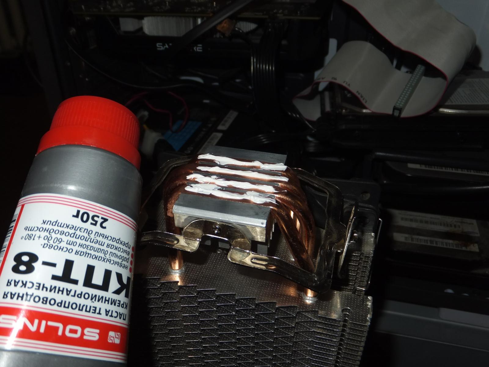 Потом нужно еще найти горбатый радиатор или башню с горбатым основанием, и при этом чтобы оно не совпадало с горбатостью процессора, тогда в принципе выйдет нащупать разницу между той же КПТ-8 (0.65-1 втмк) и HY510 (>1.93 втмк).