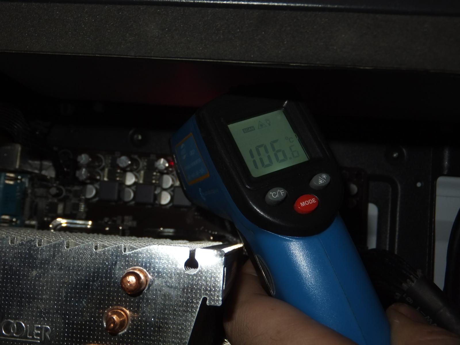 Чтобы не насиловать систему питания мне пришлось снова добавить вентилятор направленный на VRM, воздушный поток от башни никак не охлаждает цепь питания.