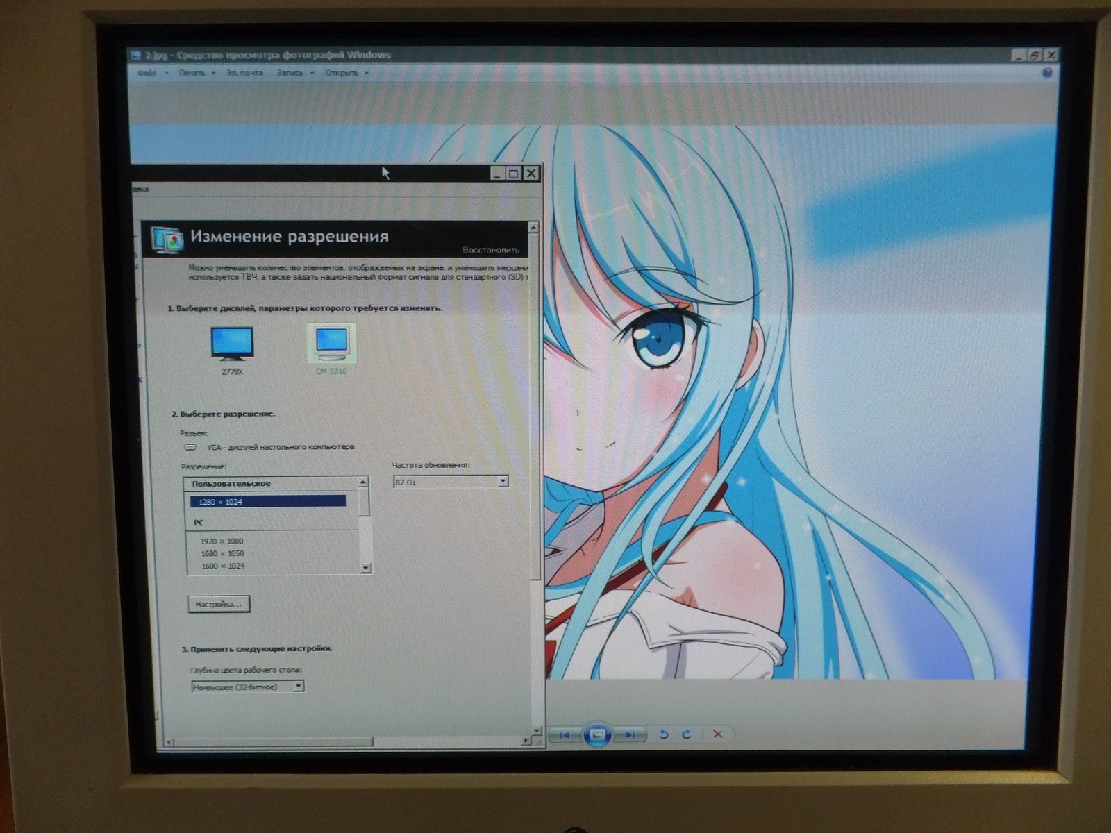 Монитор сейчас работает при 1280x1024 из списка стандартных разрешений.