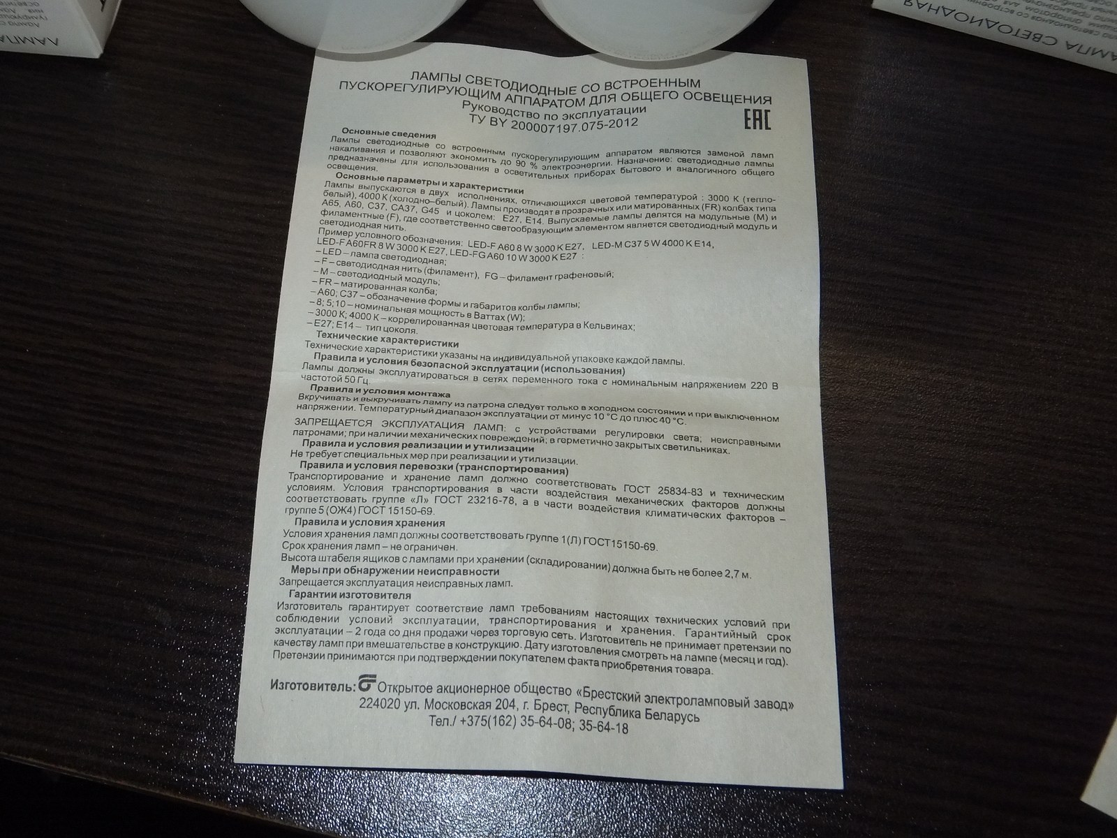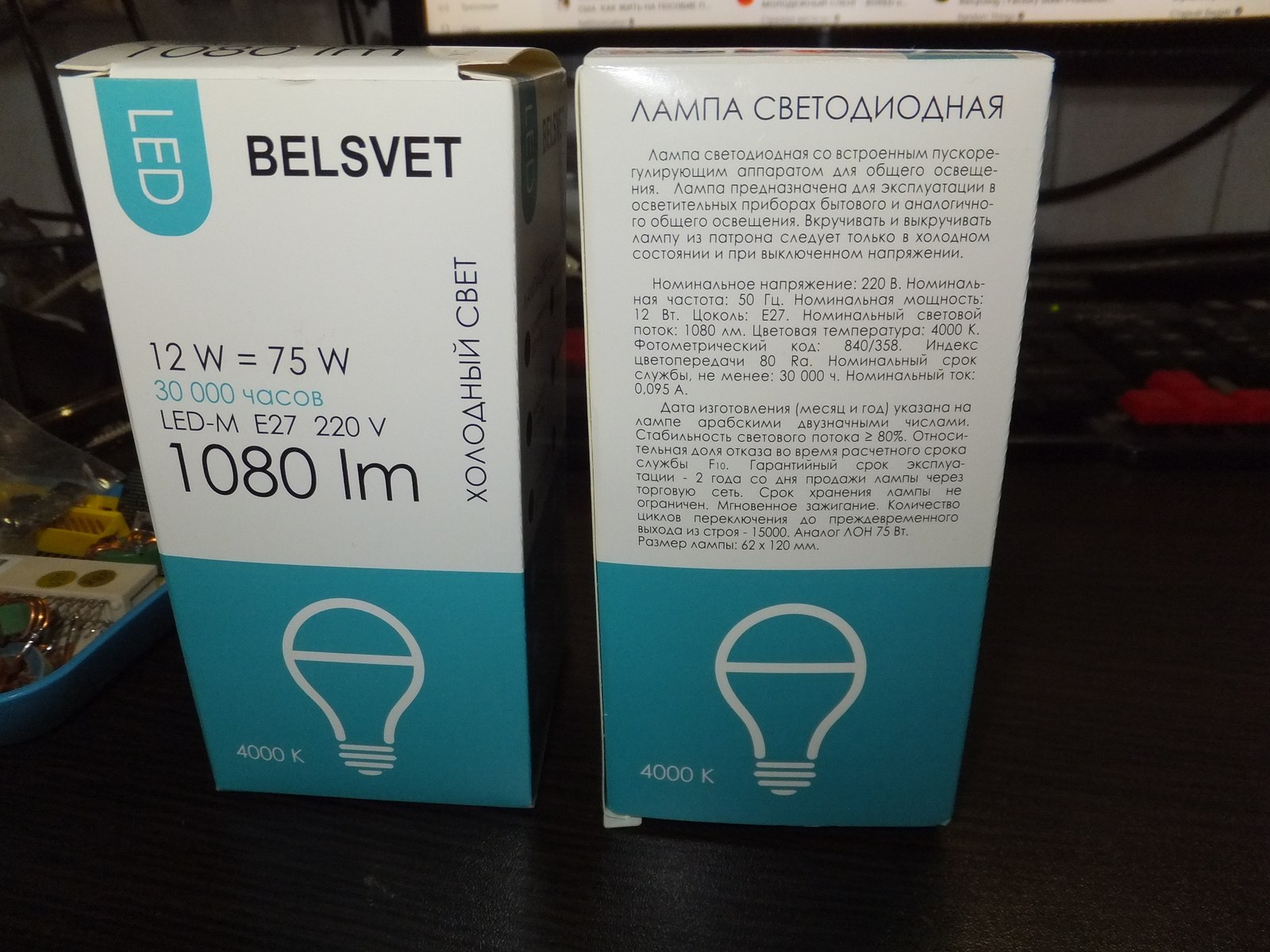 На этот раз я решил купить лампочки сделанные в Беларуси, они дороже, стоят примерно 3.2 рубля (чек потерялся, ~75 р., ~1.3$), но это все равно относительно дешево.