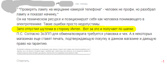 Конечно же некоторые комментаторы не упустили возможность упомянуть про этот факт, возможно подразумевая что коробки от Intel не такие уж и плохие как я сказал сравнивая с коробкой от светодиодной лампочки.