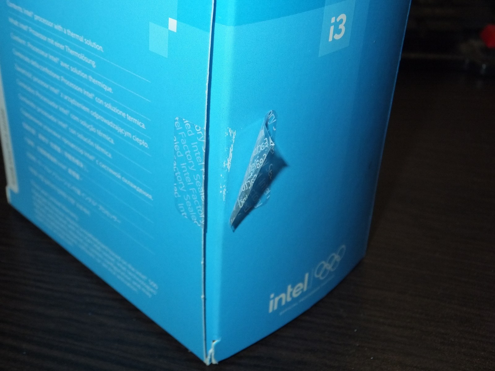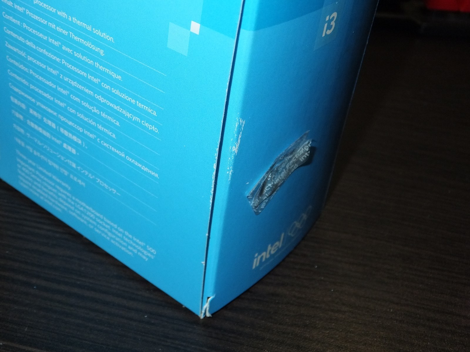 И начну я пожалуй с текущего состояния коробки от процессора Intel Core I3 10105F, то самое состояние в котором она после использования сейчас у меня лежит...