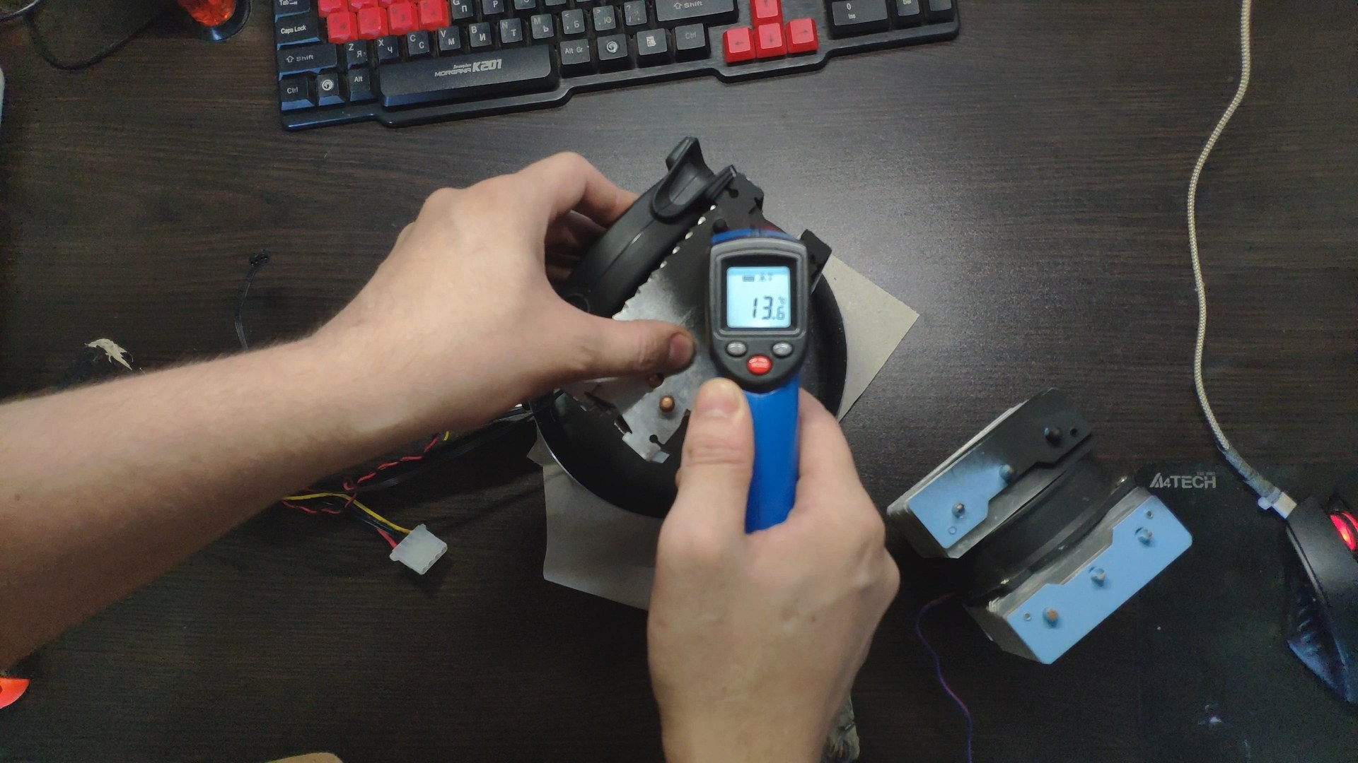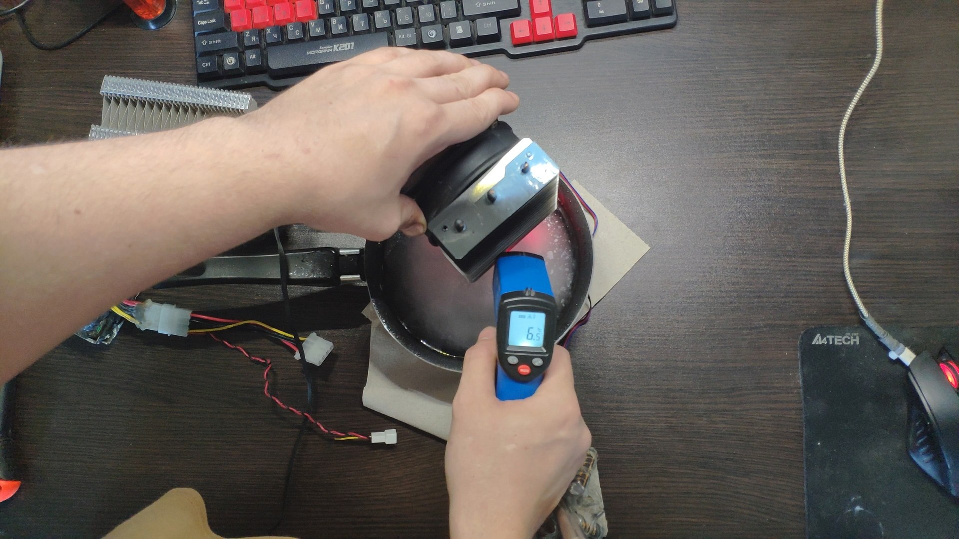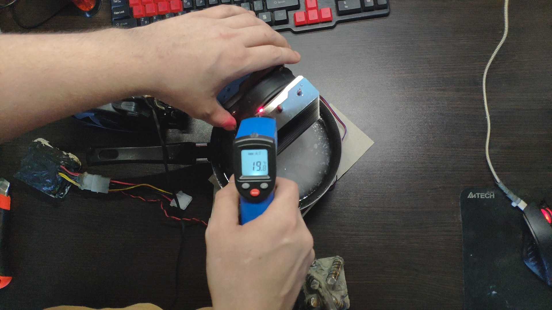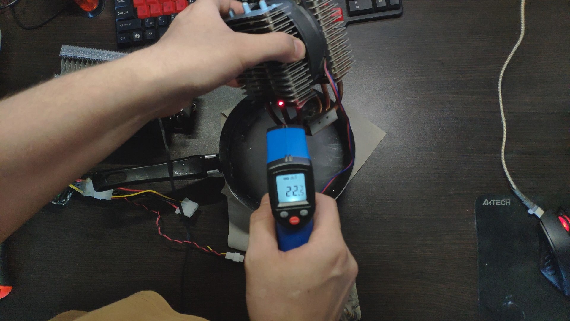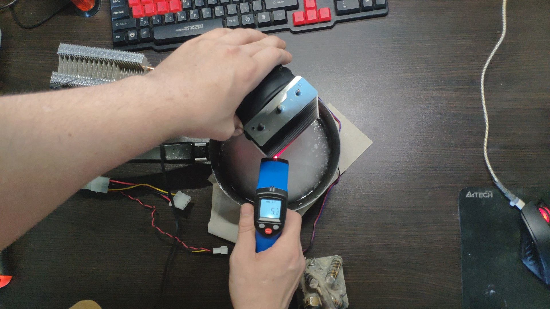 Далее я отключил вентилятор чтобы он не прокачивал теплый комнатный воздух и температура радиатора сразу же начала падать до ~10 градусов.