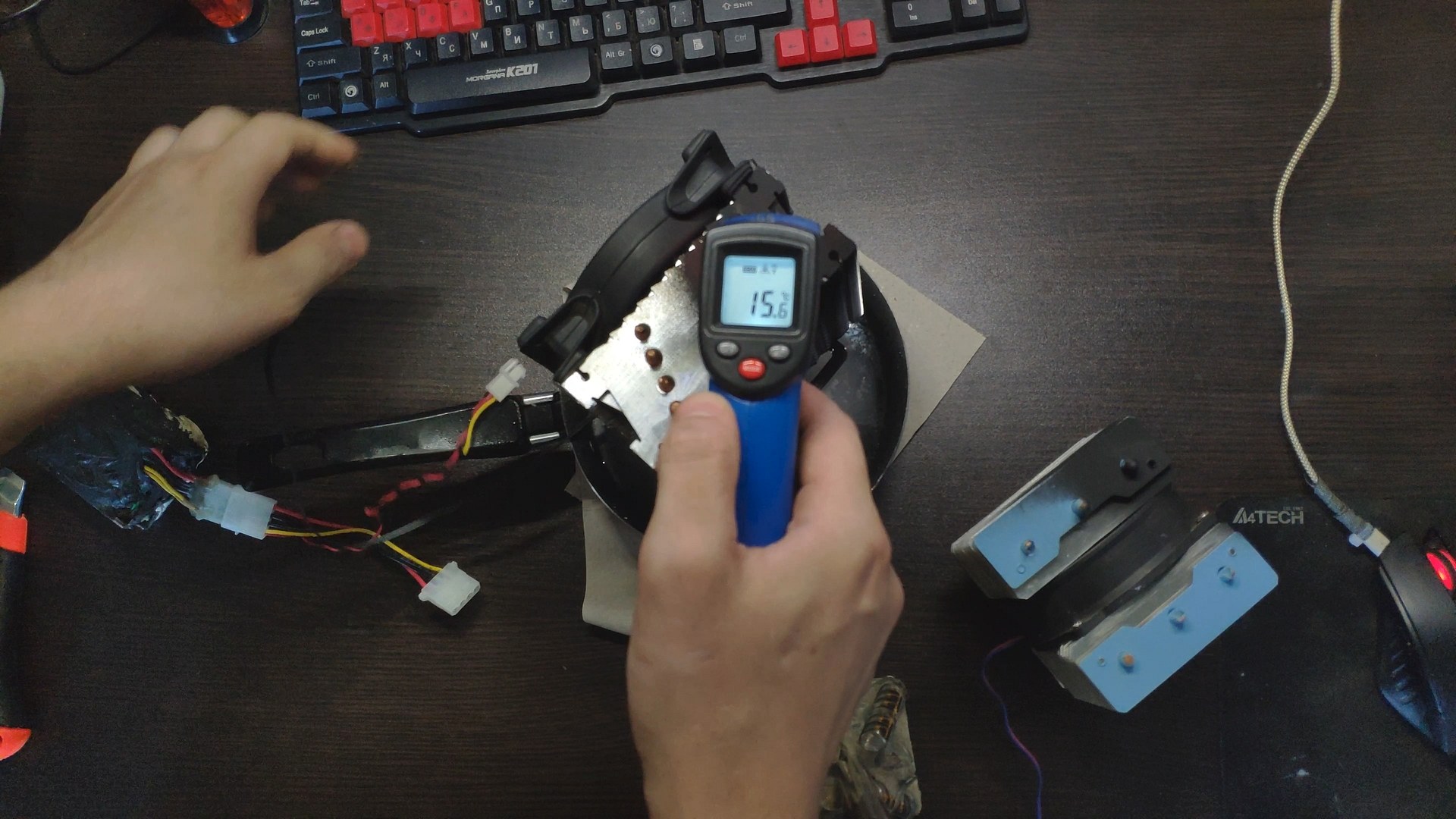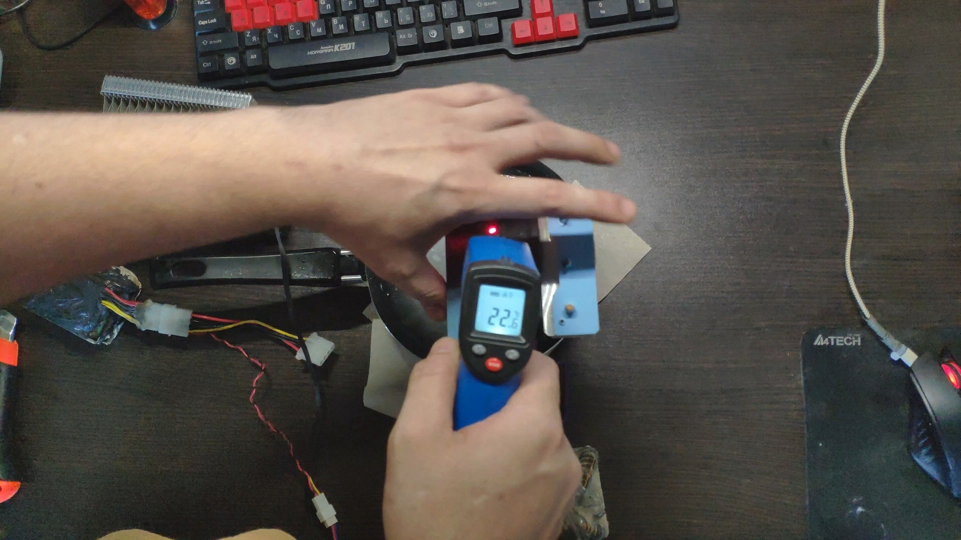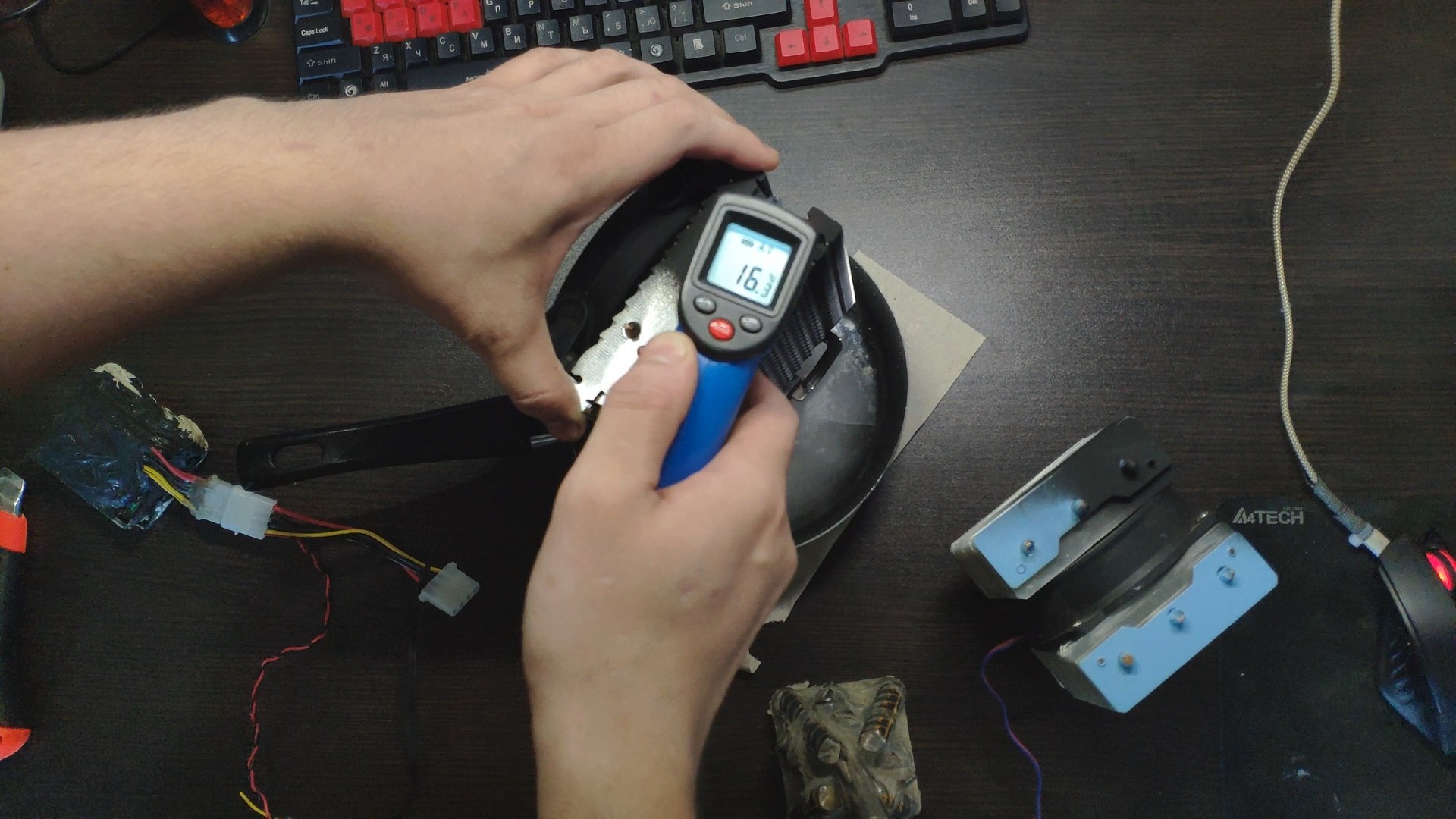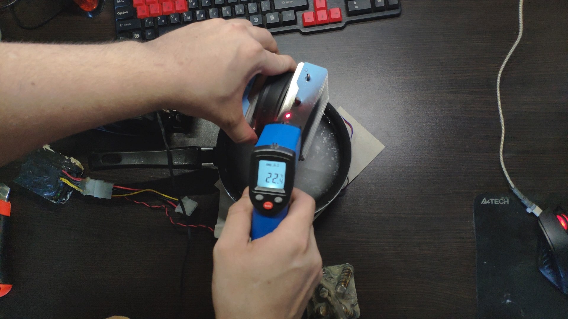 Далее я отключил вентилятор чтобы он не прокачивал теплый комнатный воздух и температура радиатора сразу же начала падать до ~10 градусов.