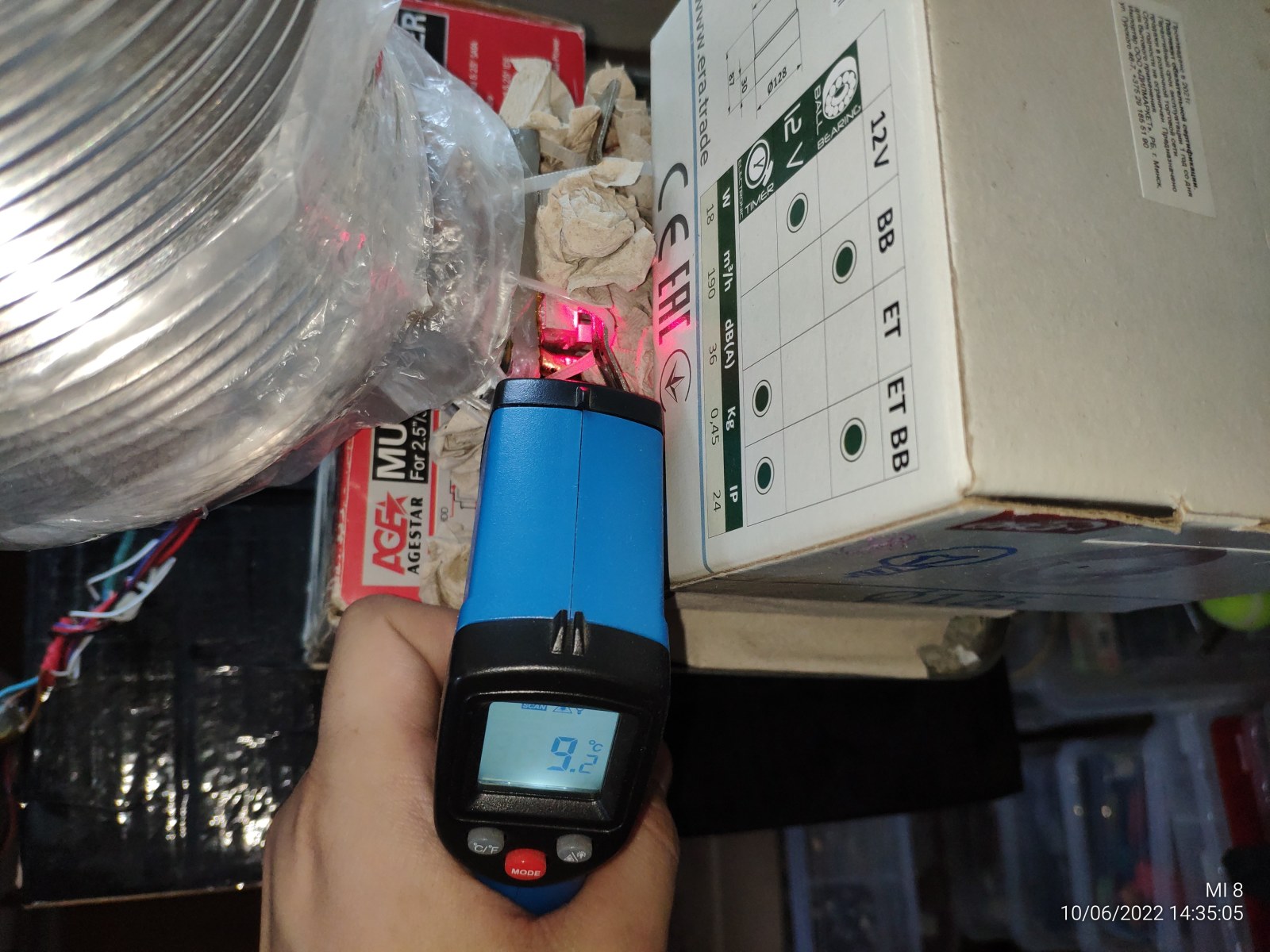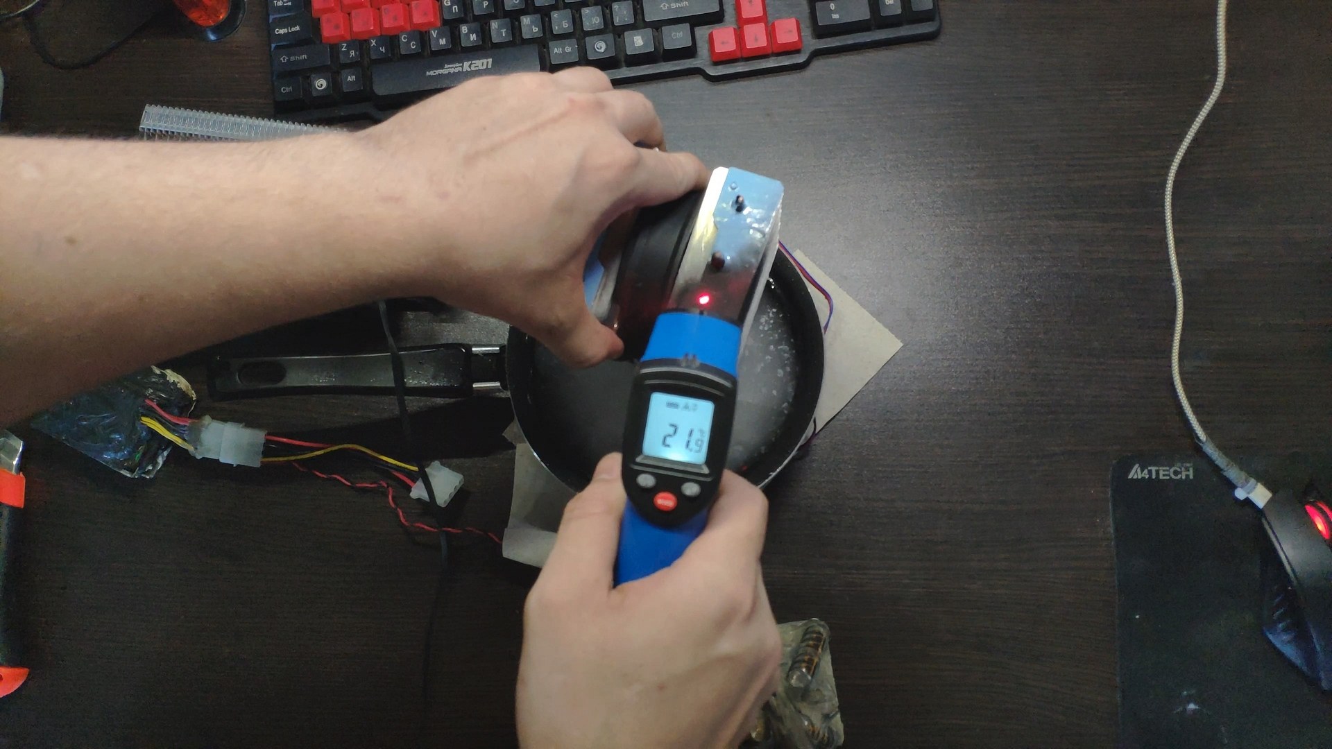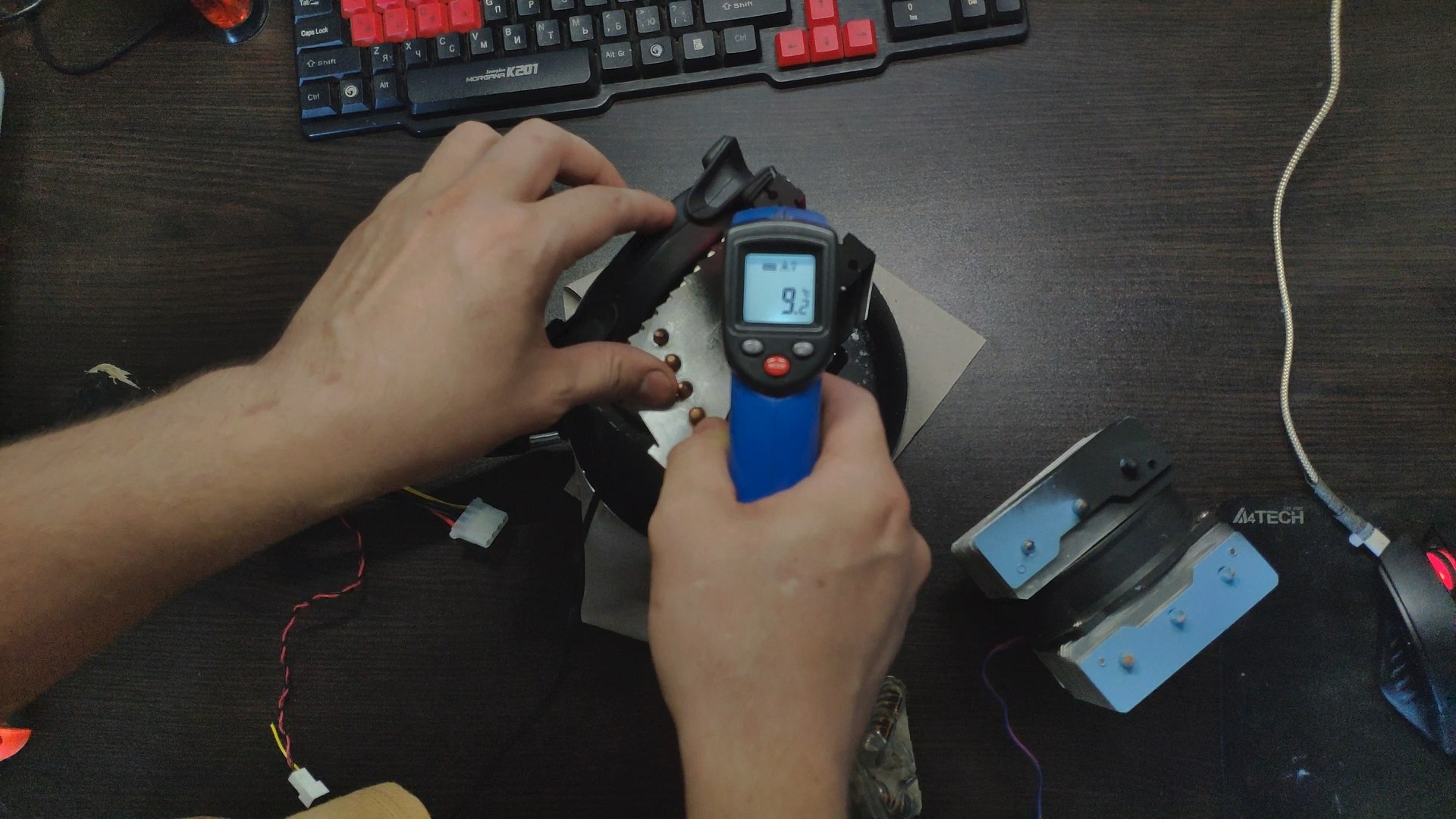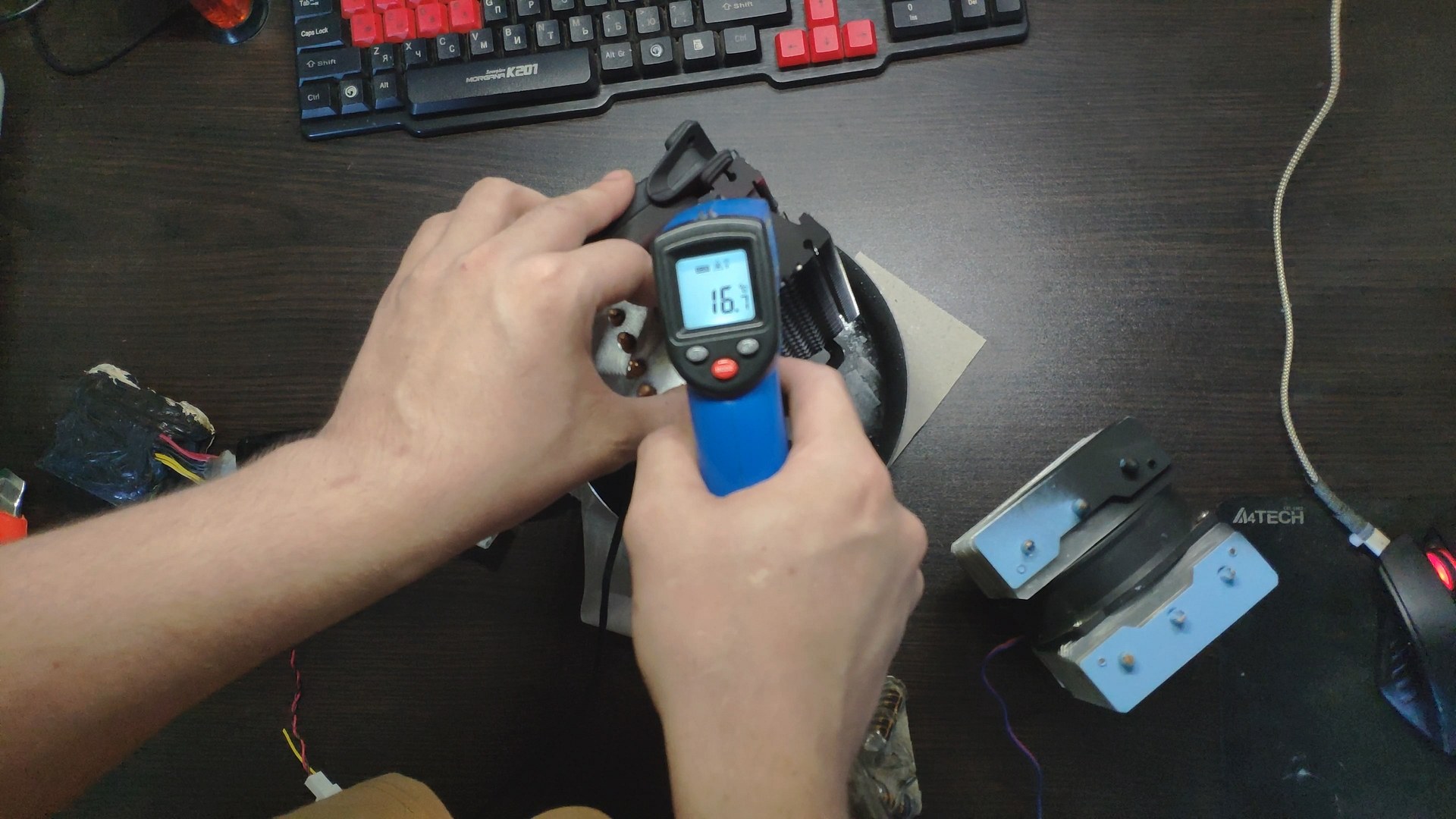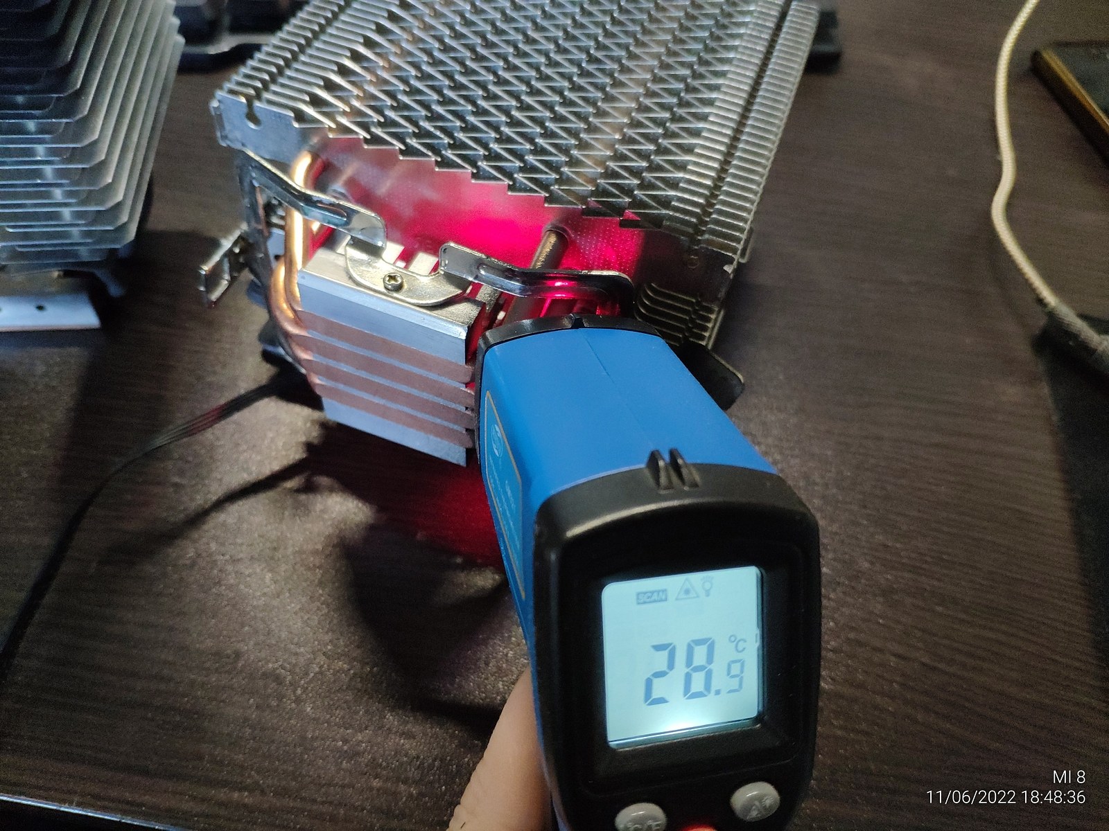 Далее я отключил вентилятор чтобы он не прокачивал теплый комнатный воздух и температура радиатора сразу же начала падать до ~10 градусов.