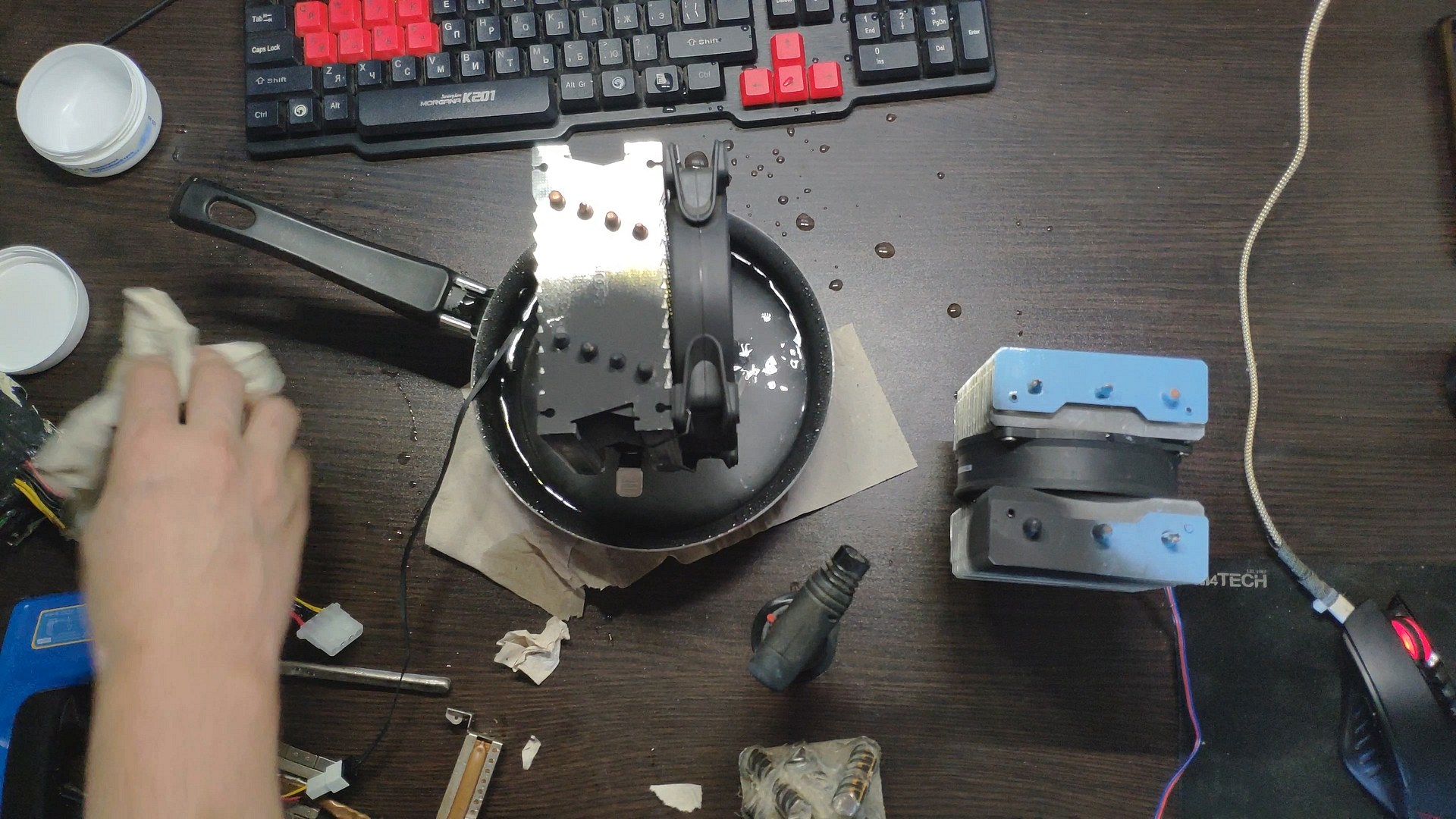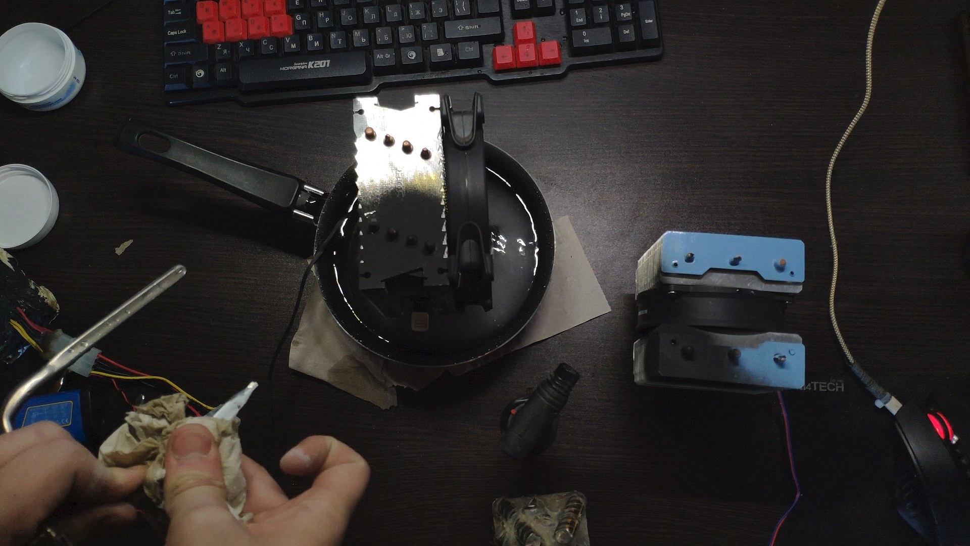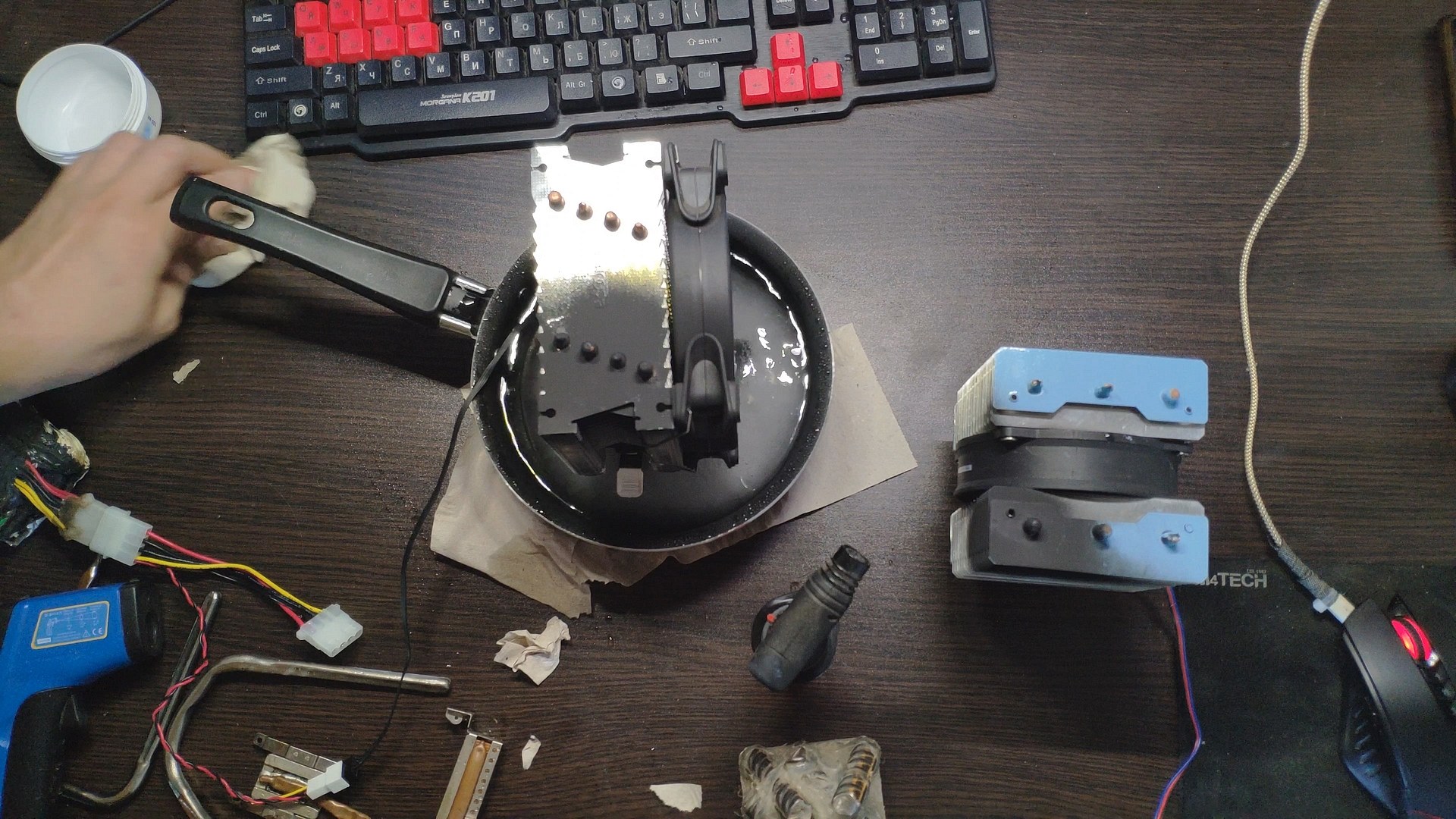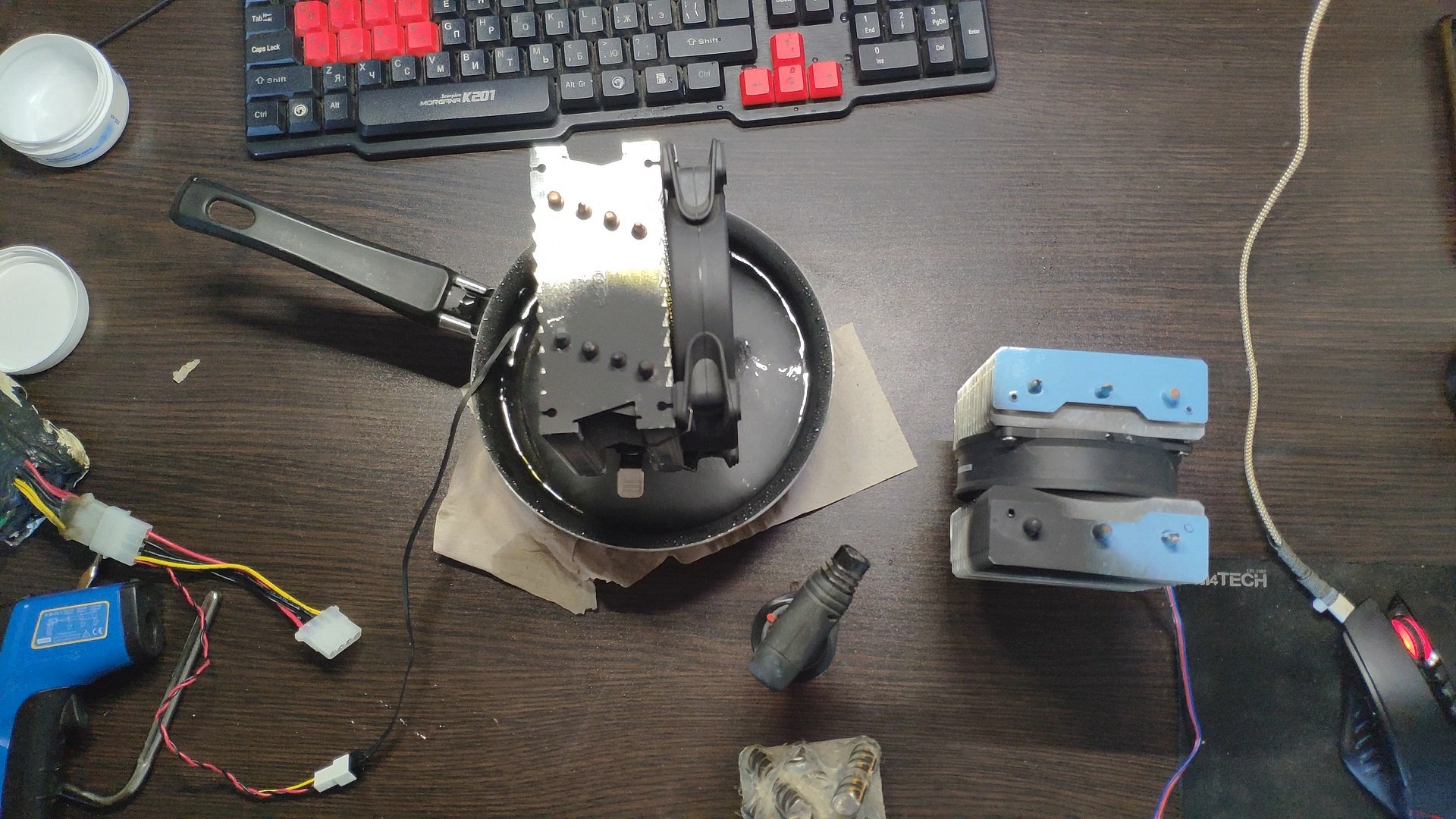 Для испытаний я подготовил две башни, модифицированный Titan TTC-NK34TZ/RF(BX) и PCCooler GI-X4b, в качестве вспомогательного элемента будет аккумулятор на 12в (подключать вентиляторы) и пирометр (измерять температуру).