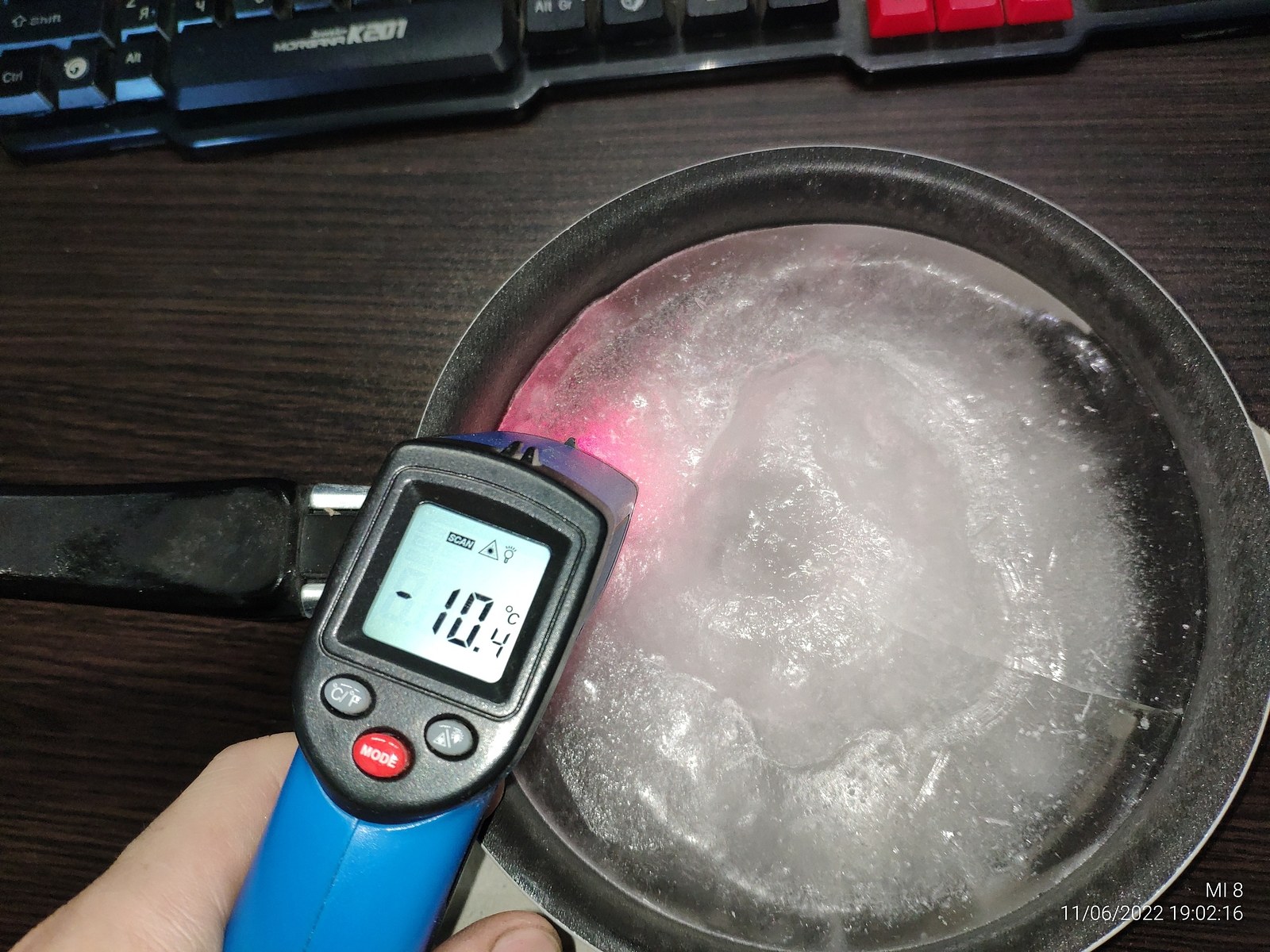 Далее я попытался измерить температуру неокрашенного участка радиатора в сухом состоянии без конденсата, но получил неправильный результат, выходит я не зря нанес тонкий слой эмали для замеров.