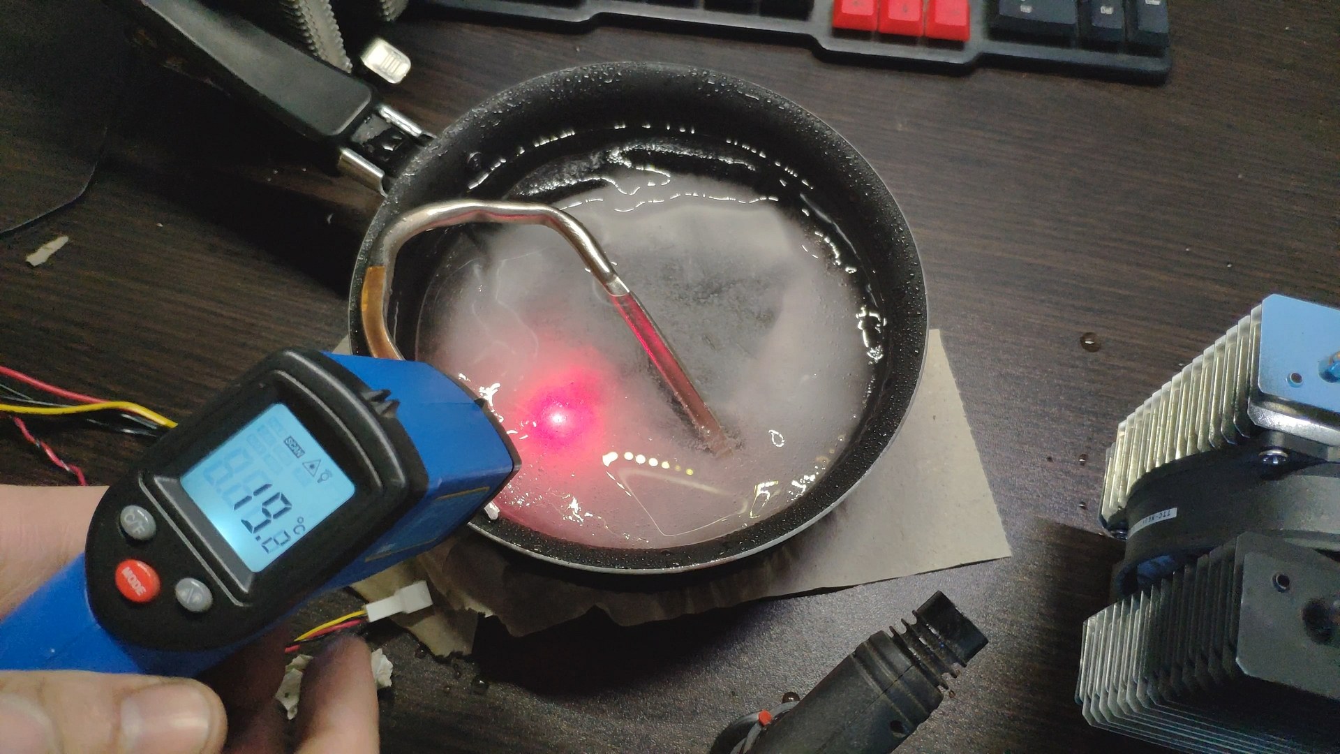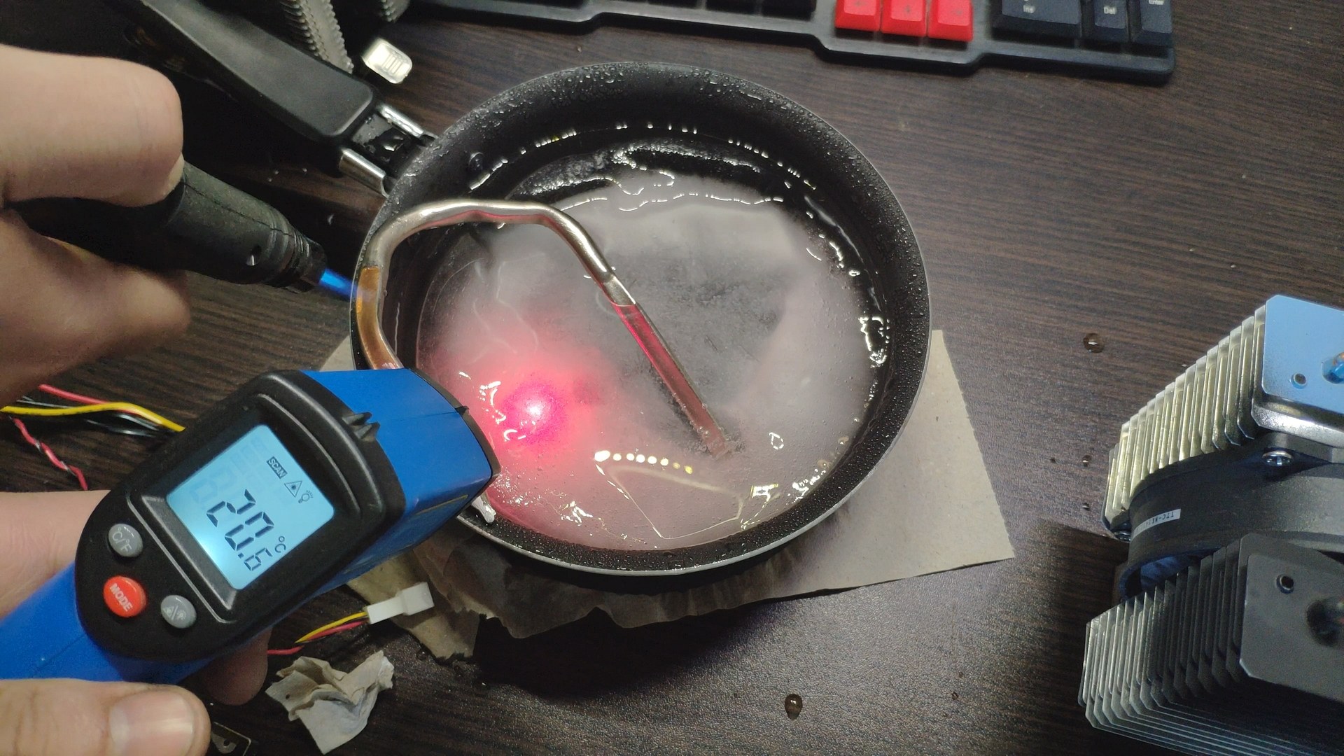 Как раз еще испытал дешевую газовую горелку, но трубка уверенно выдержала мощность горелки расплавляя лед, а после удаления горелки температура быстро упала до ~12 градусов.