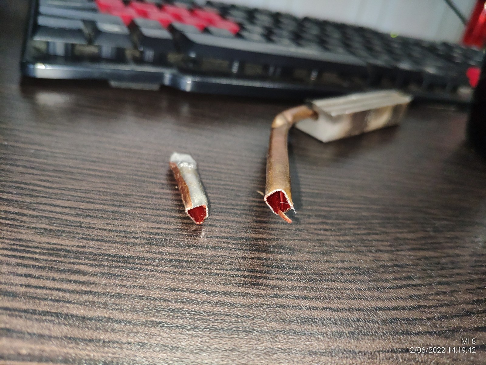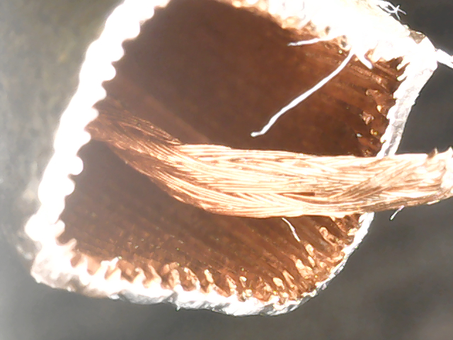 Специально для любознательных я разрезал одну нерабочую трубку ножницами по металлу, как можно заметить, толщина стенок просто мизерная по отношению к объему трубки: