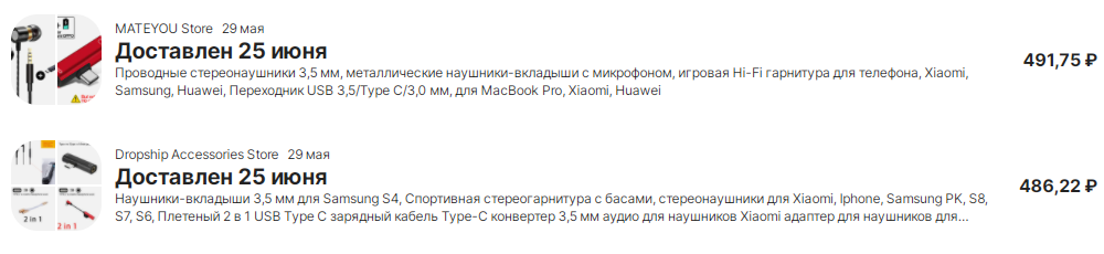 1) Проводные стереонаушники 3,5 мм - 395,30 руб.