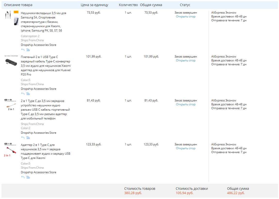 Стоимость доставки указана в моём личном случае (AliExpress Saver Shipping), стоимость товаров указана на момент заказа.