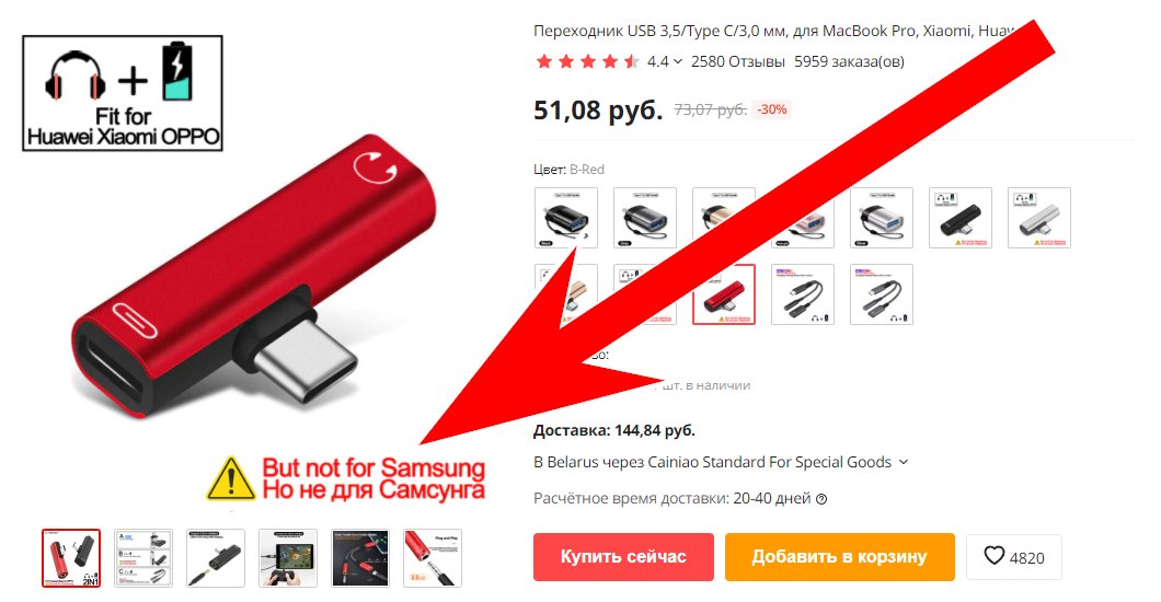 Однако следует еще учитывать что смартфоны от Samsung могут и не работать с некоторыми переходниками, но у меня нет аппаратов от этой конторы чтобы лично проверить работоспособность переходников, потому могу посоветовать лишь внимательно смотреть что пишут продавцы к своим товарам:
