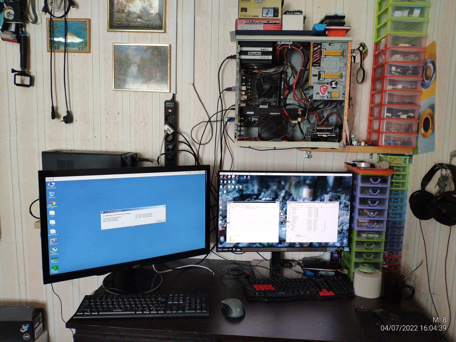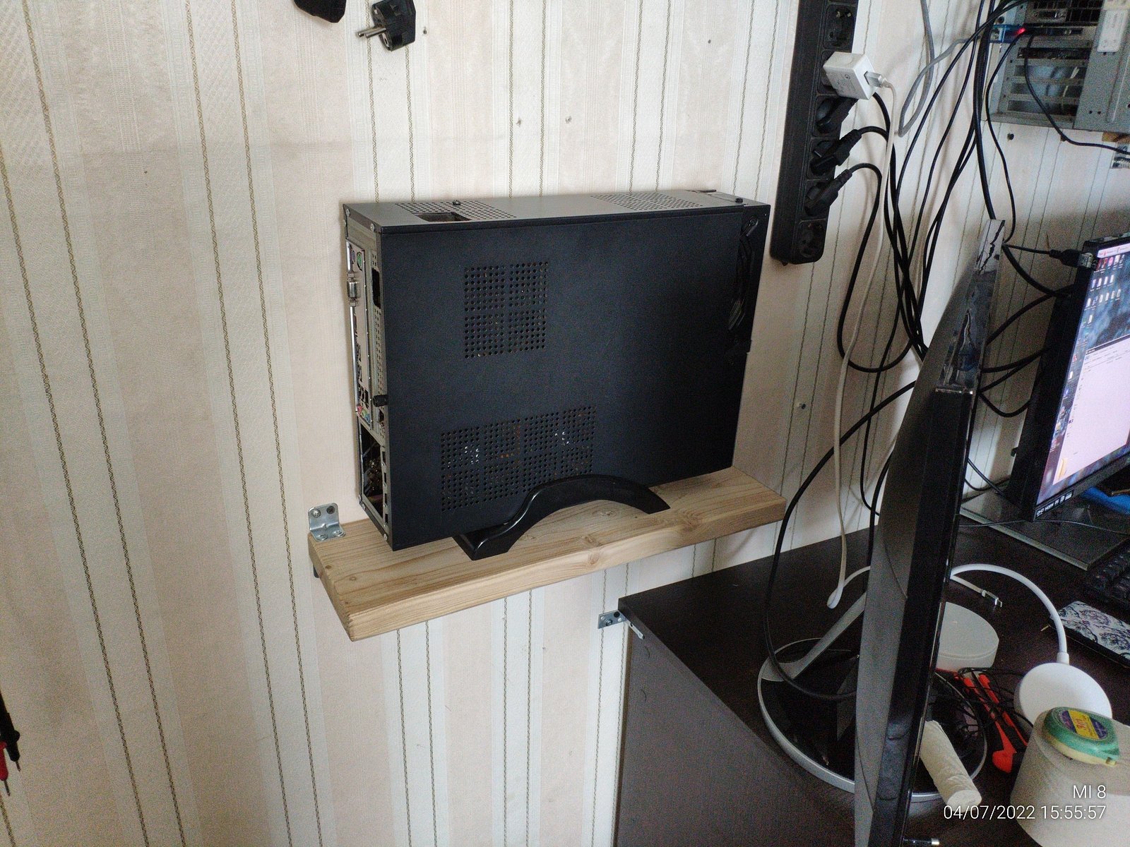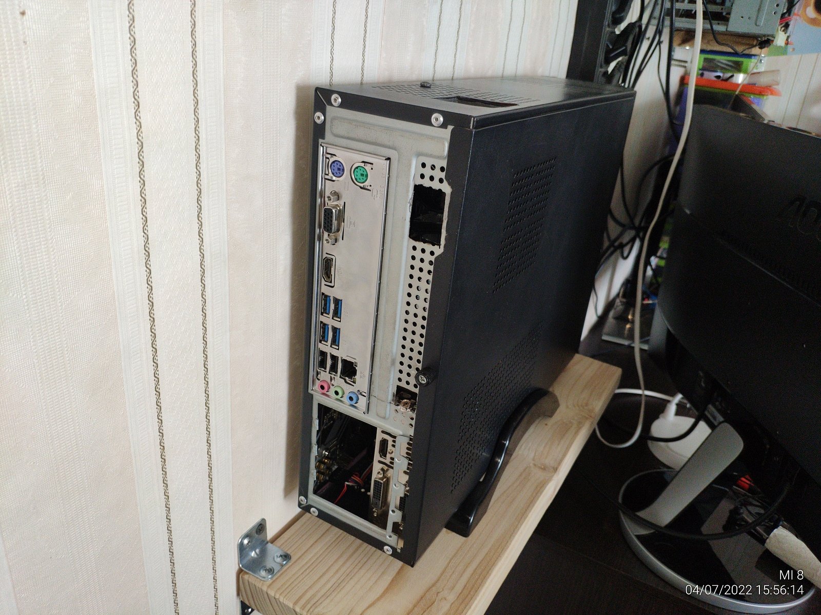 В прошлый раз я собрал систему вместе с R9 290 Tri-X, а сейчас я очистил одну полку уже закрепленную на стене, убрал старый монитор со стены и установил второй QHD монитор на стол чтобы нормально использовать ПК.