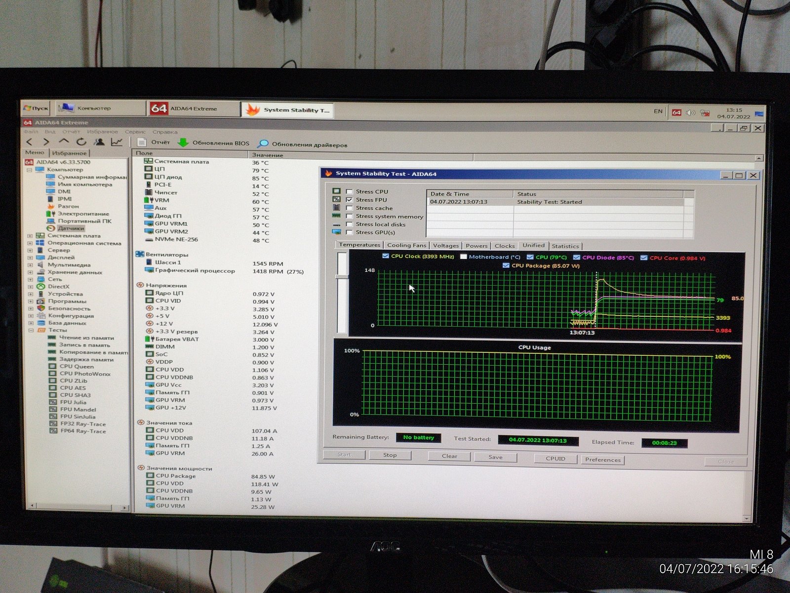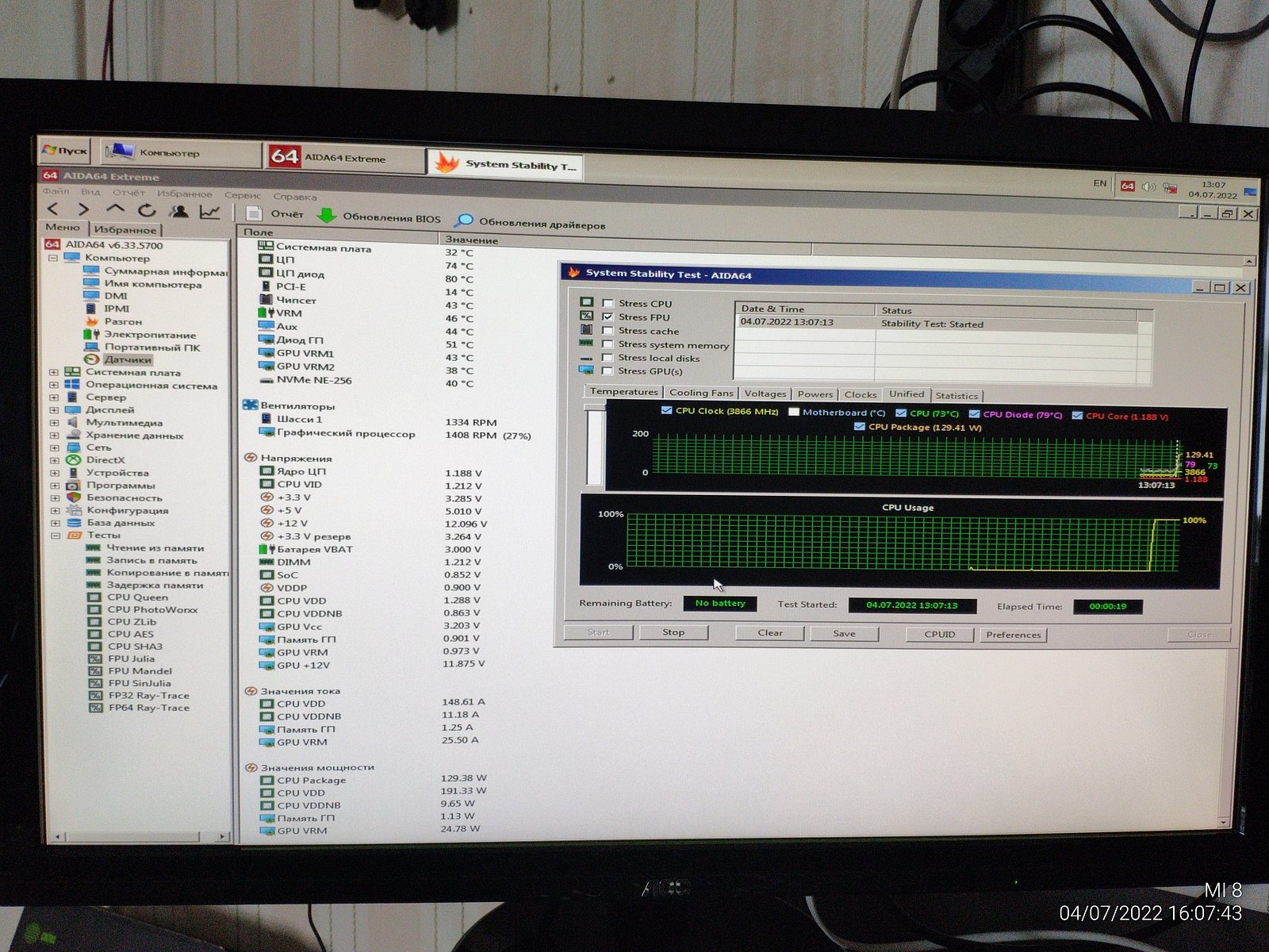 Пока не взялся за стресс тесты я сделал замер температуры окружения, да, жарковато в помещении, лето все же на улице, но так даже лучше, жестче условия для ПК.