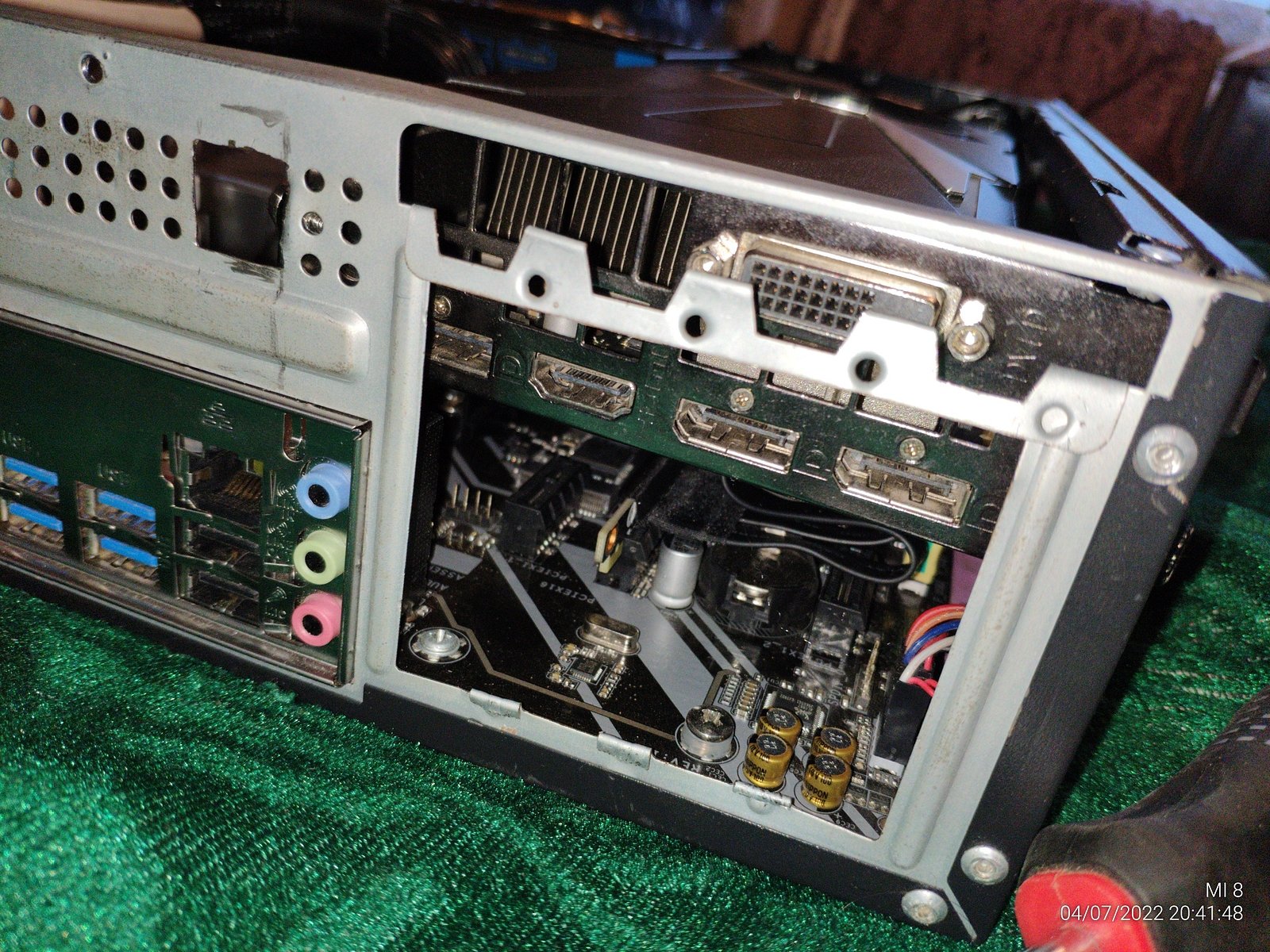 Для надежности я залил термо клей между корпусом и площадкой PCI-e, чтобы снизить нагрузки при установке видеокарты.