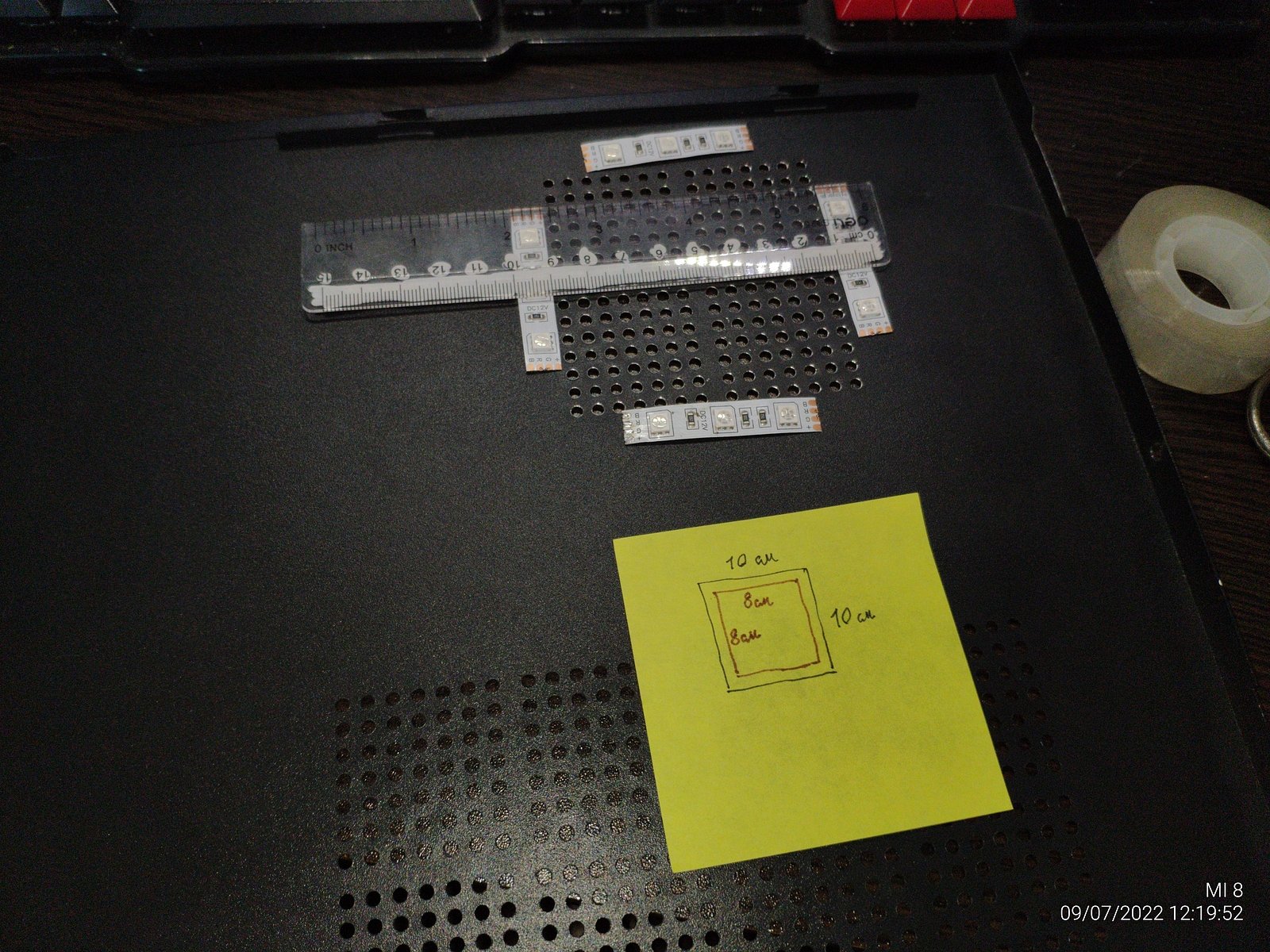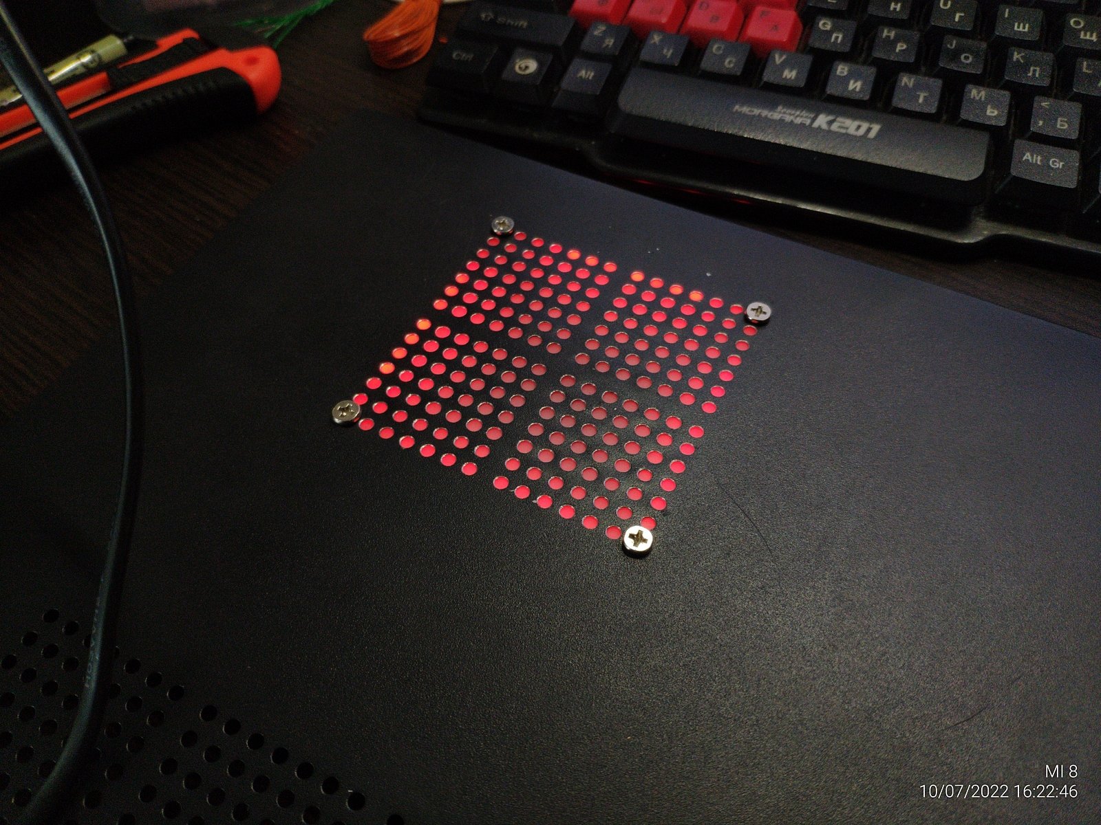 Однажды мне понадобилось перекрыть вентиляционные отверстия в корпусе, заклеить скотчем было бы слишком просто, потому я решил изготовить RGB подсветку которой и перекрою вентиляционные отверстия.