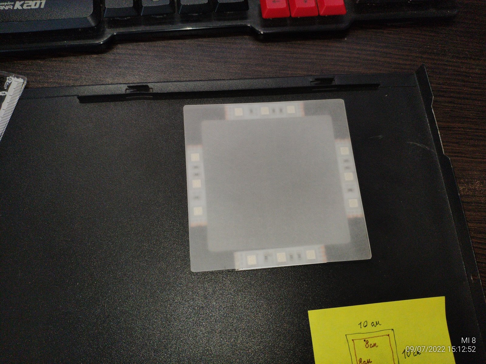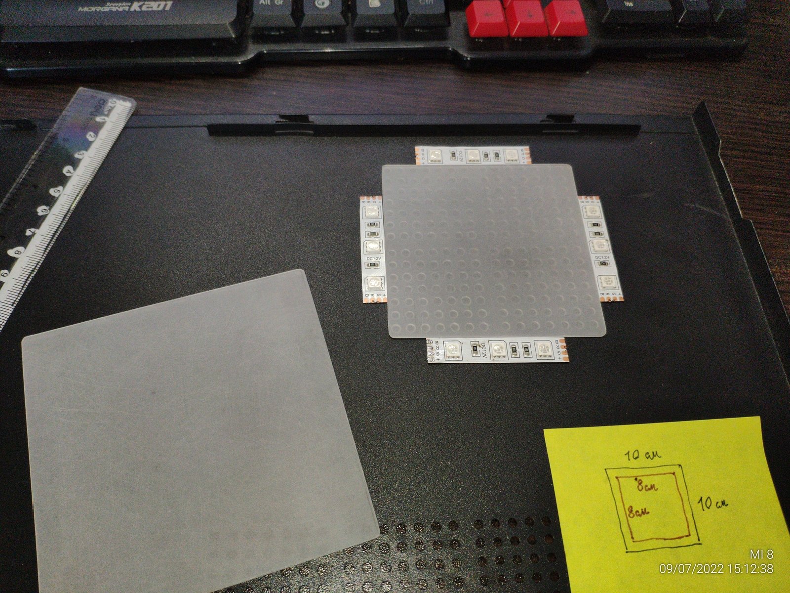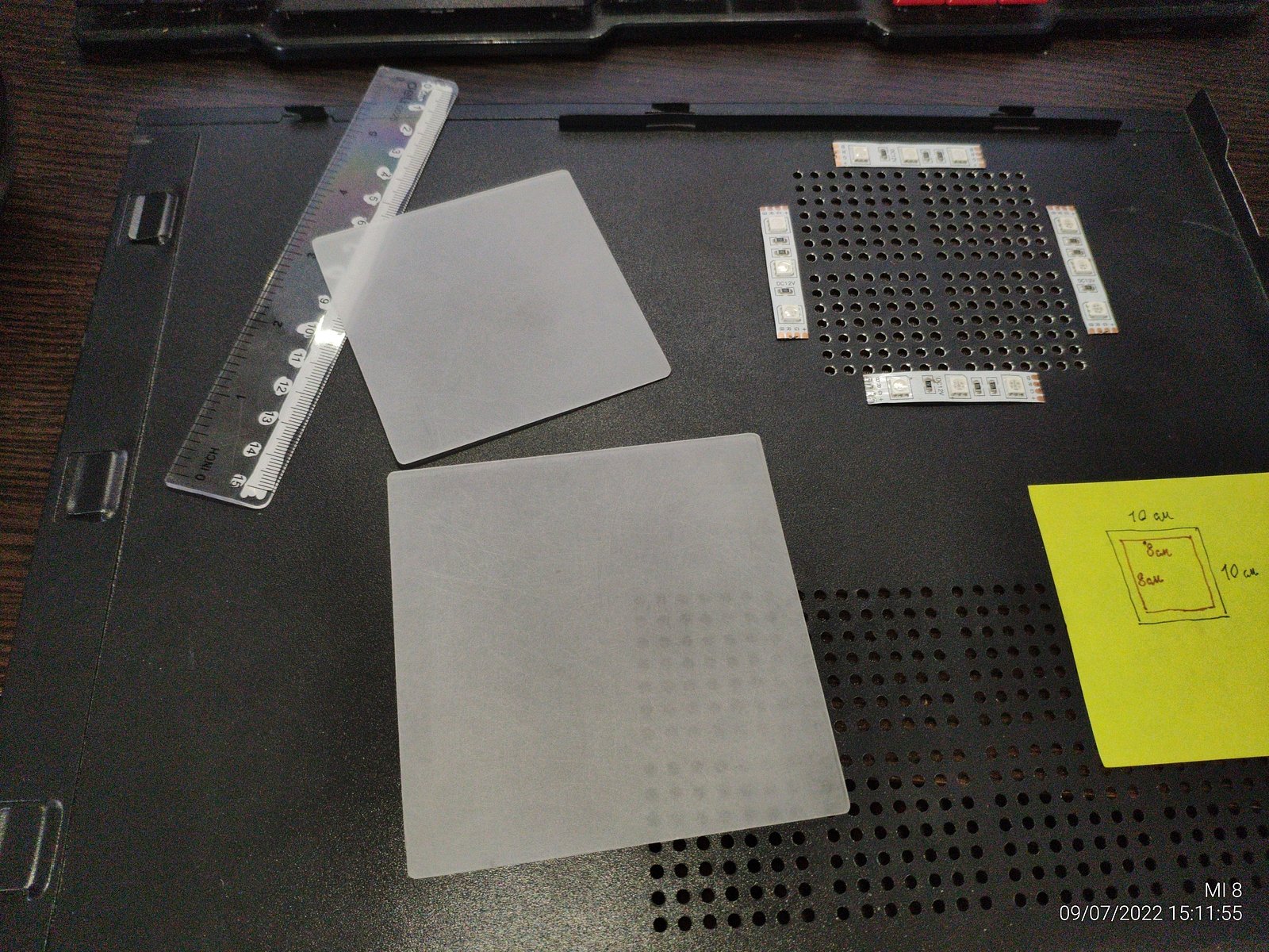Процесс резки пластика от CD/DVD кейса я оставил за кадром, однако предупрежу людей, которые не имели дел с подобным пластиком (06 PS, полистирол), он очень хрупкий, резать ножницами его не выйдет, плавить нагретым ножом тоже очень плохая идея, со 100% вероятностью пойдут трещины от места где было оплавлено раскаленным ножом, если не сразу то через некоторое время обязательно будут трещины...