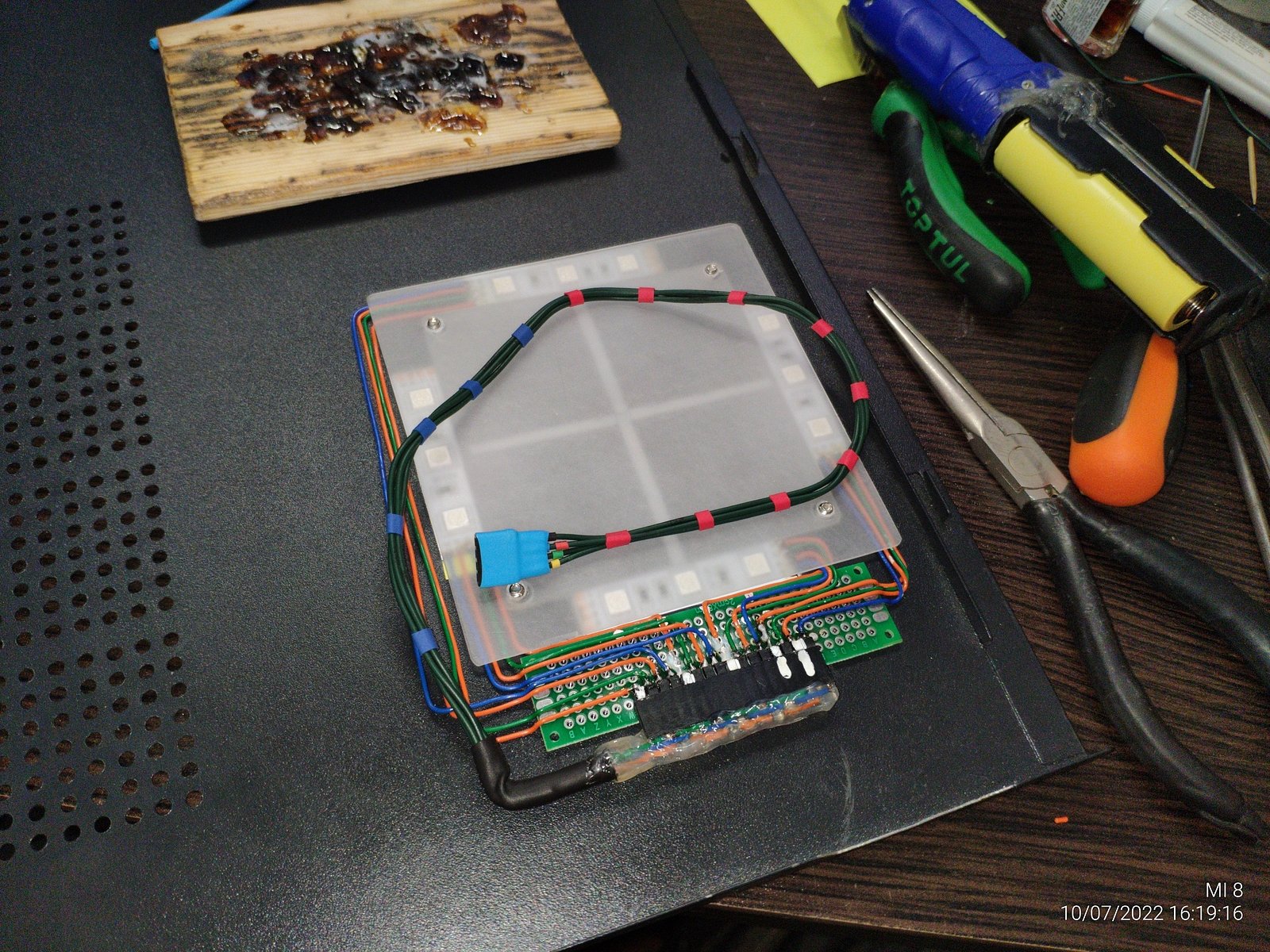 Дальше осталось неспешно припаять провода соединив RGB сегменты с коннектором соблюдая стандартный для системных плат порядок подключения VGRB.