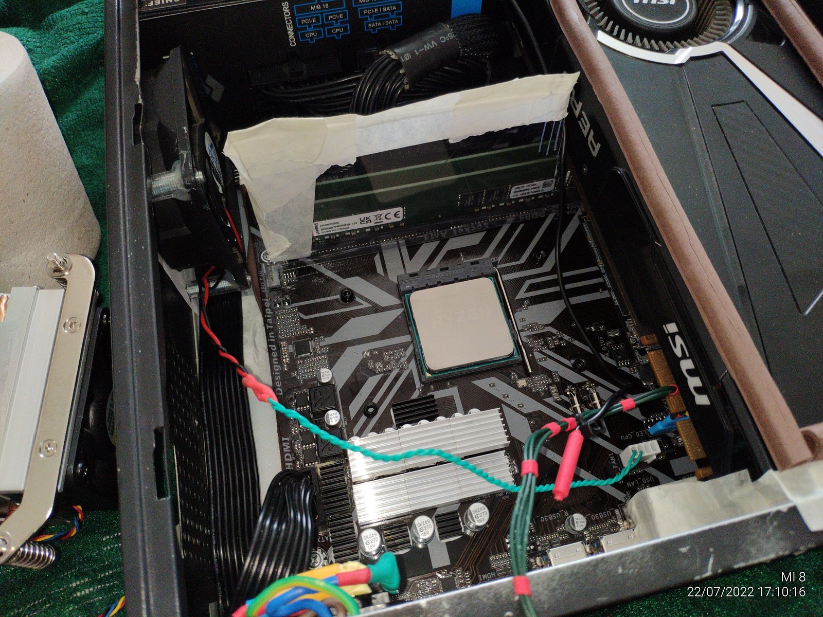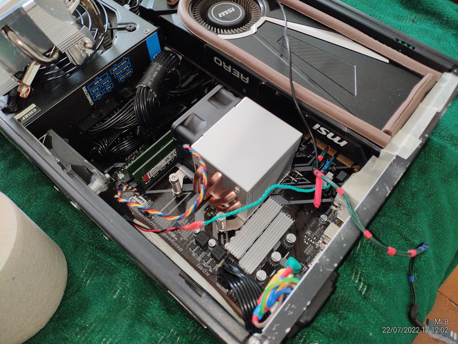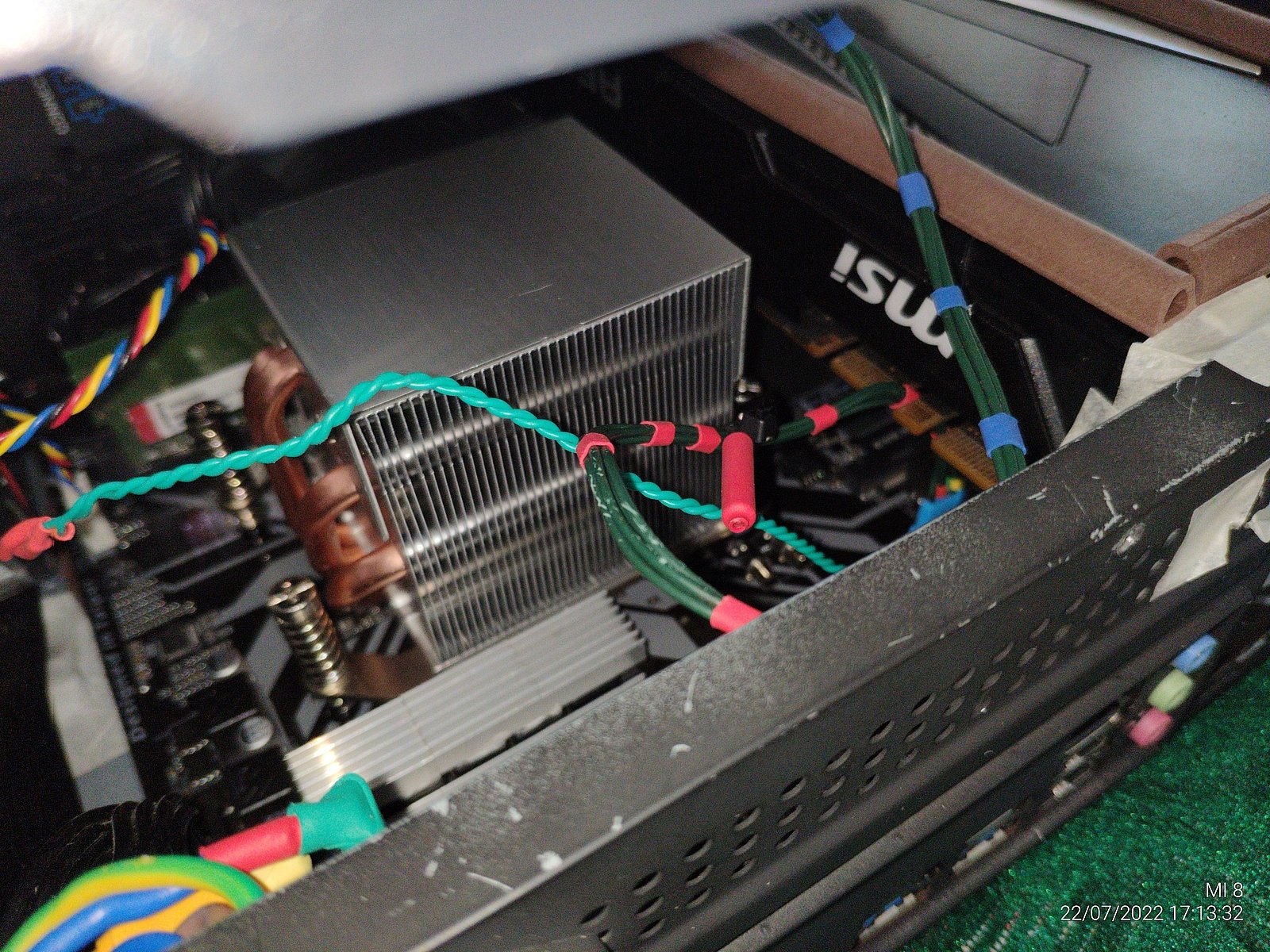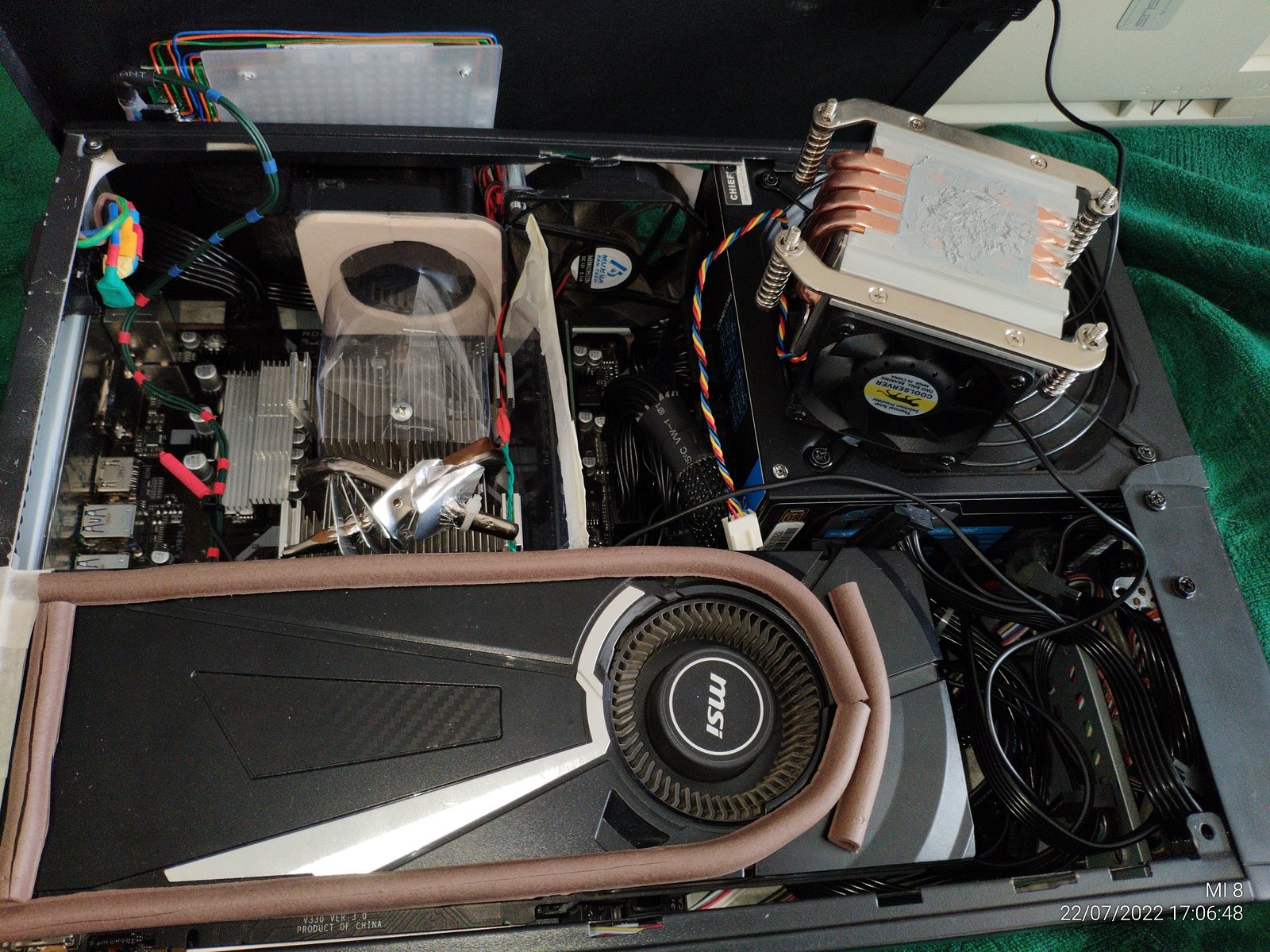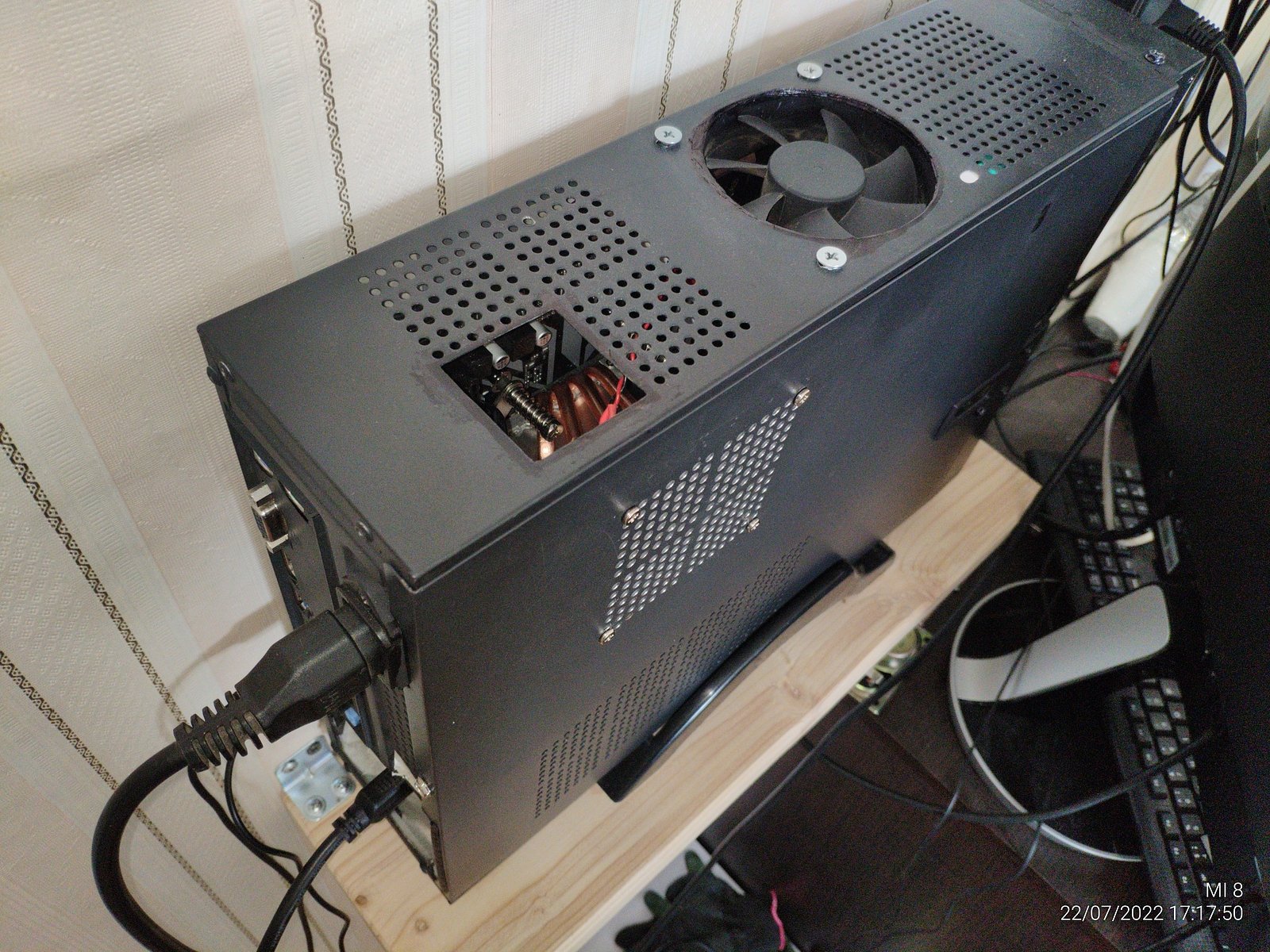 Я сейчас прекрасно понимаю что будет ужасная ситуация в плане воздушных потоков и нагрева, но я наглядно покажу что бывает в крайне маленьких корпусах если просто воткнуть и запустить стандартную систему охлаждения.