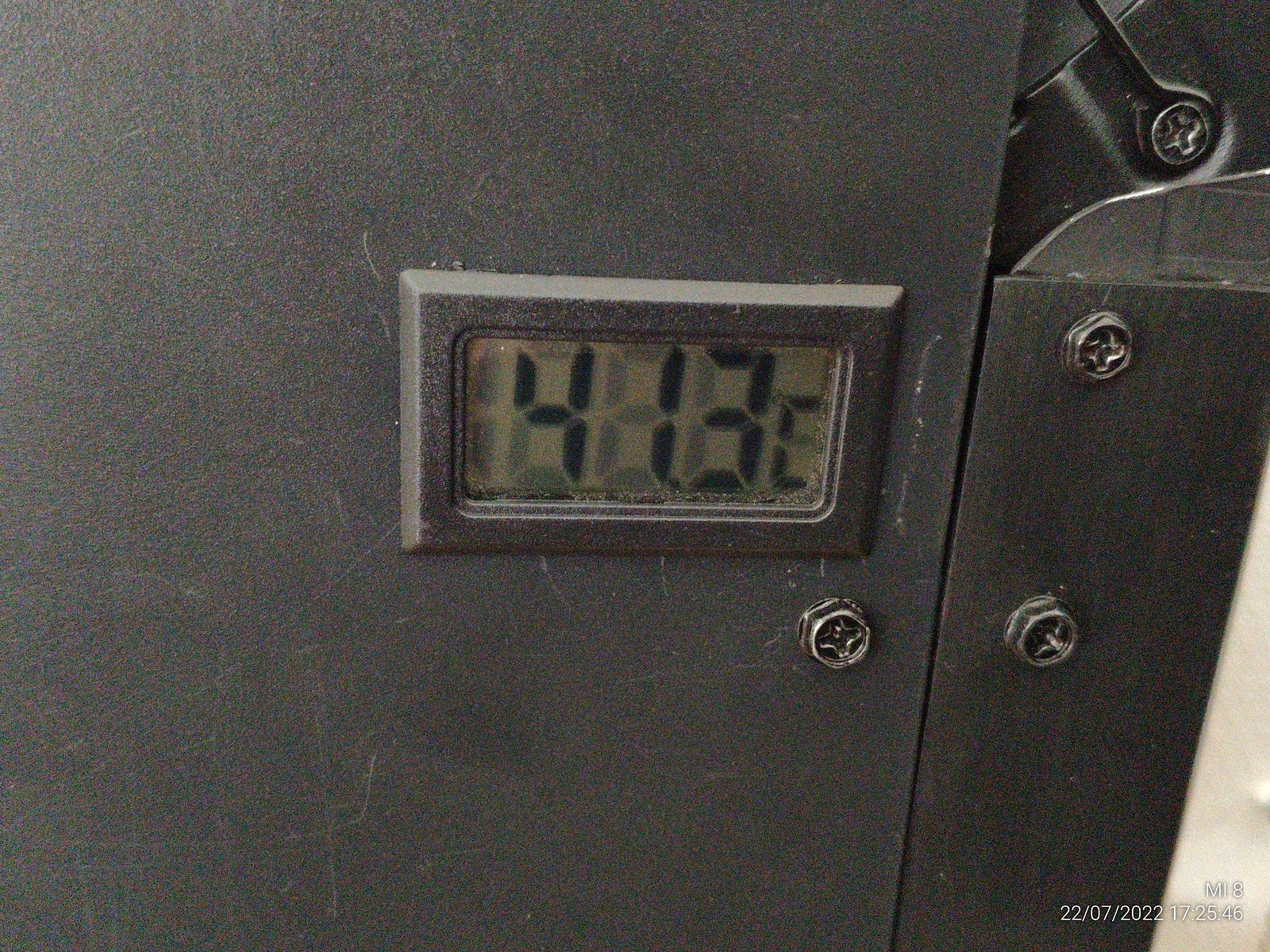 Вернув лимиты мощности и напряжения в сток я принялся тестировать систему, термопара отлично показывает что происходит внутри корпуса когда над воздушными потоками никто не работал.