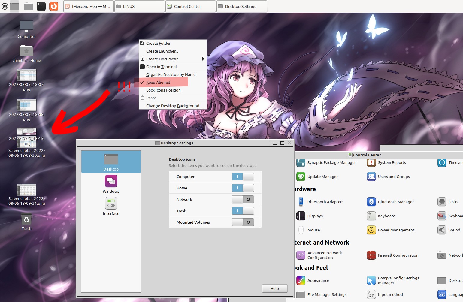 Следующими ужасами Linux MINT 21 MATE Edition выступает оформление системы и очередное отсутствие базовых настроек интерфейса...