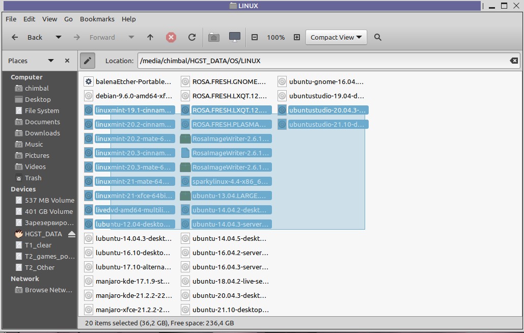 Туда же и переименование файлов, большинство людей привыкли два раза с задержкой нажать на имя файла и можно переименовать, но только не в Linux MINT 2x.x MATE Edition и других дистрибутивах, что мне попадались на глаза и запомнились таким поведением...