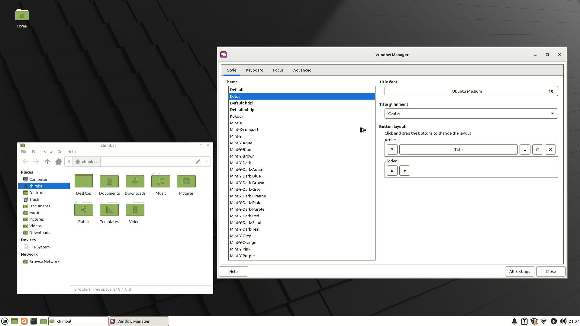 Тем оформления вроде и много, а по факту разницы толком и нет, и вручную настроить невозможно, хотя если пользователь до сих пор не психанул уйдя обратно в Microsoft Windows, можно набрести на другой раздел настроек где тоже предлагают выбрать тему, но в этот раз можно поменять местами кнопки в заголовке окна.