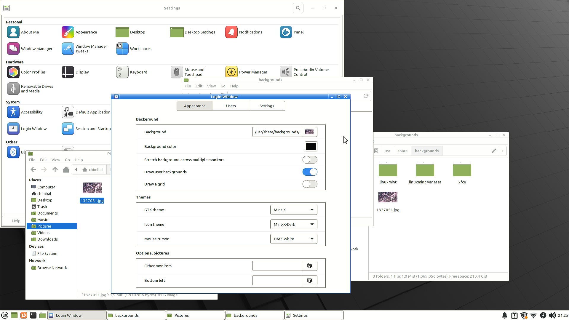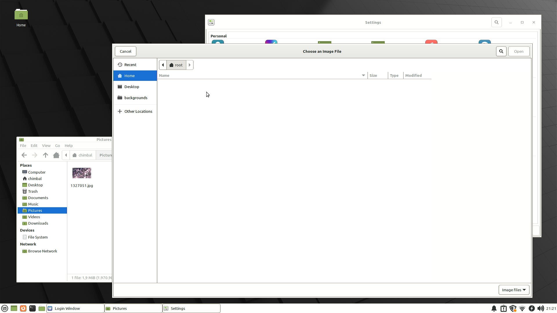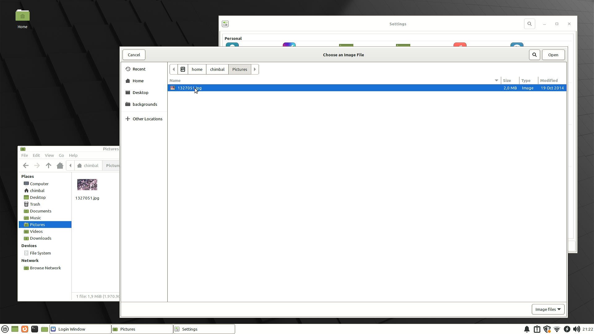 Далее идет персонализация экрана авторизации, нельзя просто взять и сменить фоновое изображение на своё, нужно через "Other locations" идти в корень файловой системы, найти домашнюю папку свою и после этого можно выбрать желаемый фон.