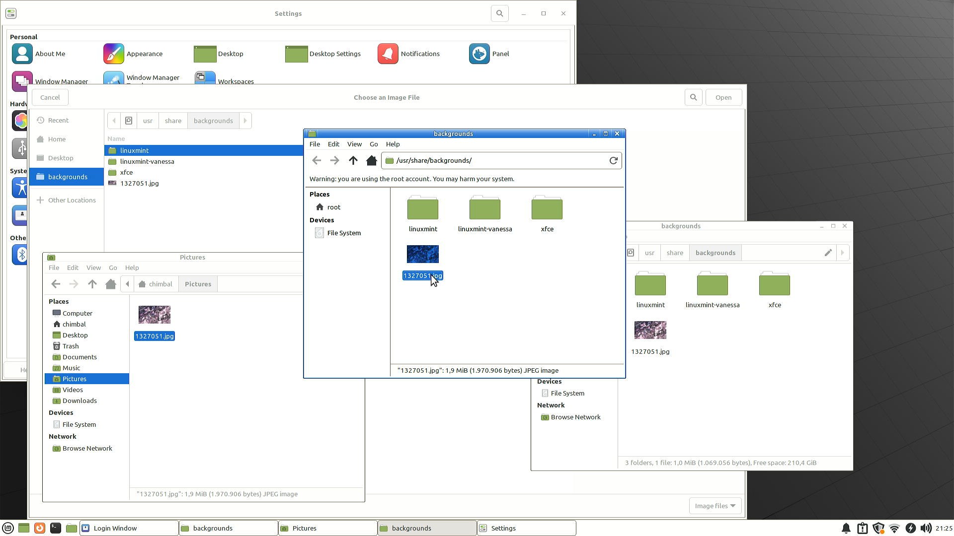На этом всё? Нет, только не при использовании Linux дистрибутивов, фон конечно же появился, но сразу же скрылся за стандартным фоном, вот так "персонализация"... Перезагружать систему бесполезно, это никак не влияет на "работоспособность".