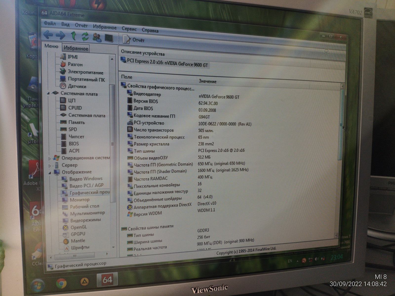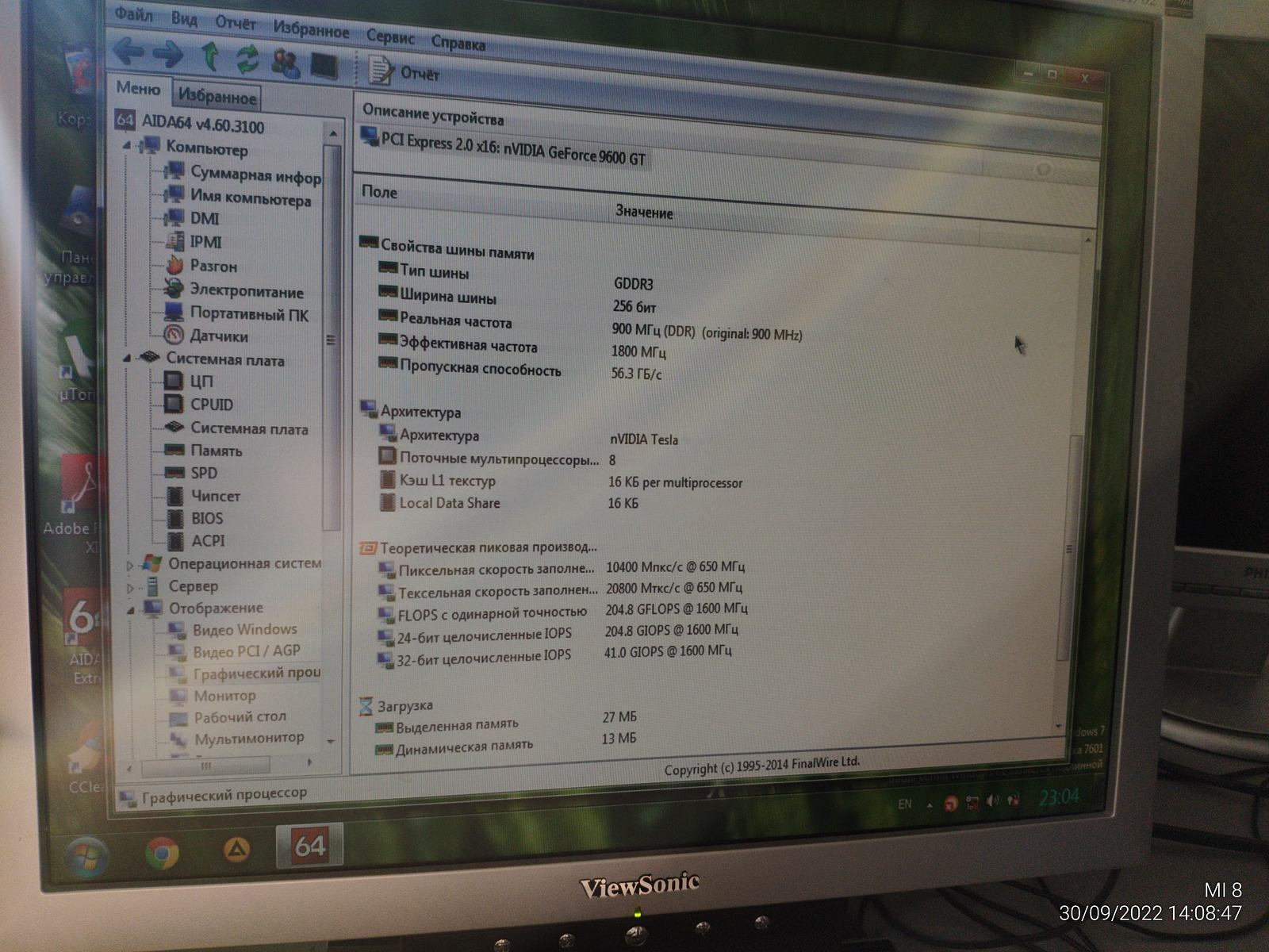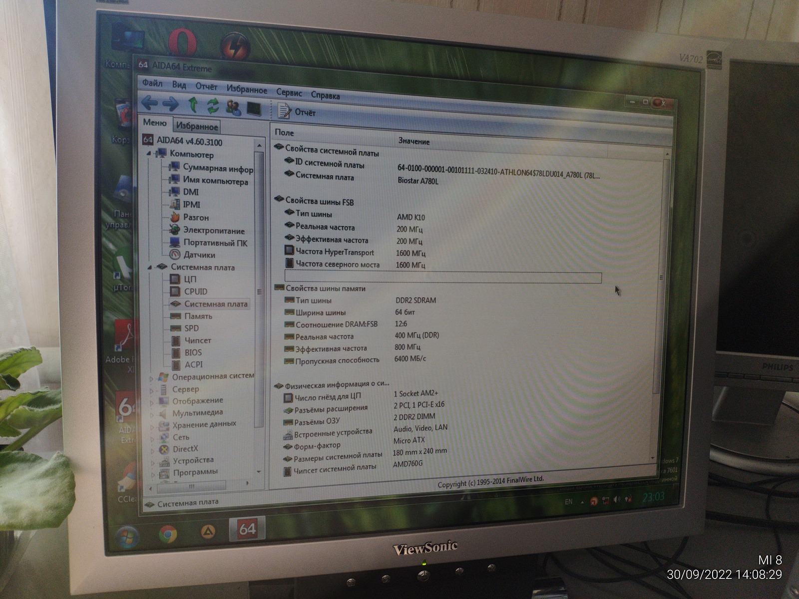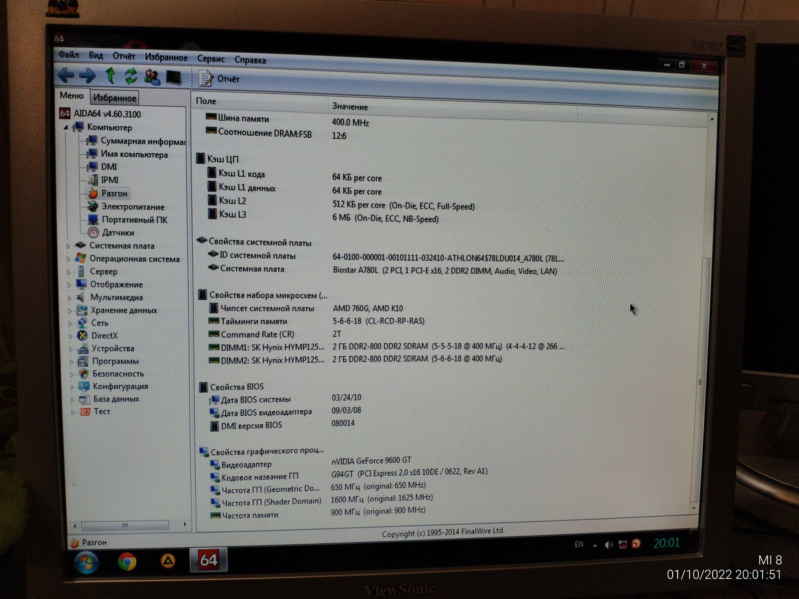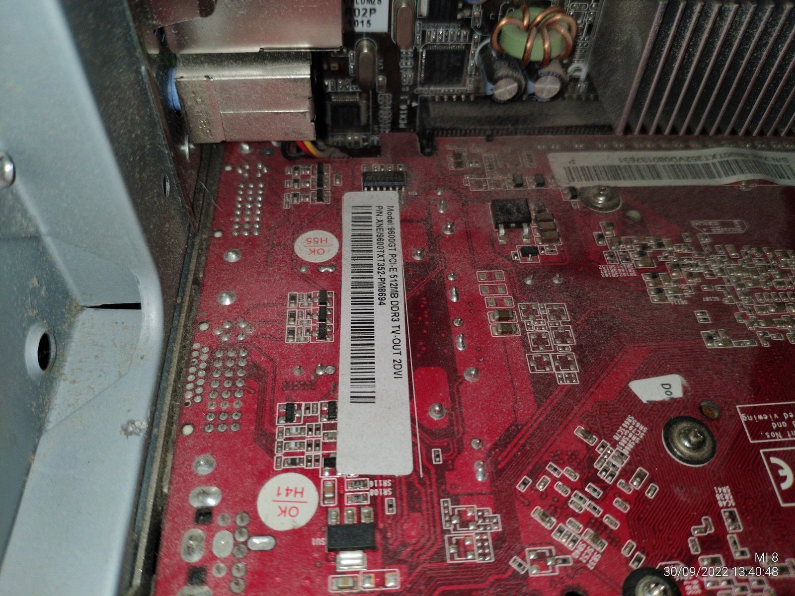 Видеокарта GeForce 9600 GT 512 Mb DDR3, HDD Seagate Barracuda 7200.10 на 250 GB, 1 модуль DDR2 на 2 Gb, IDE дисковод, процессор как выяснилось позже Athlon64 x2 5000+ (ADO5000IAA5DO), системная плата Biostar A780L.