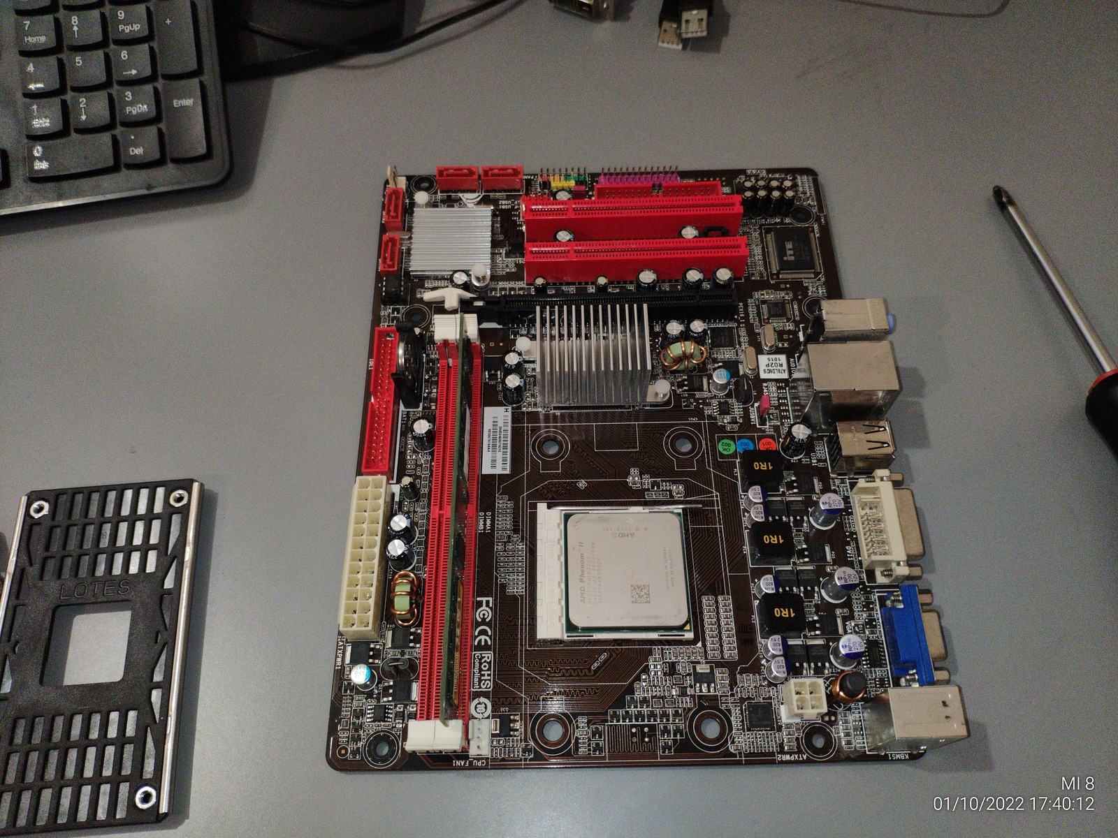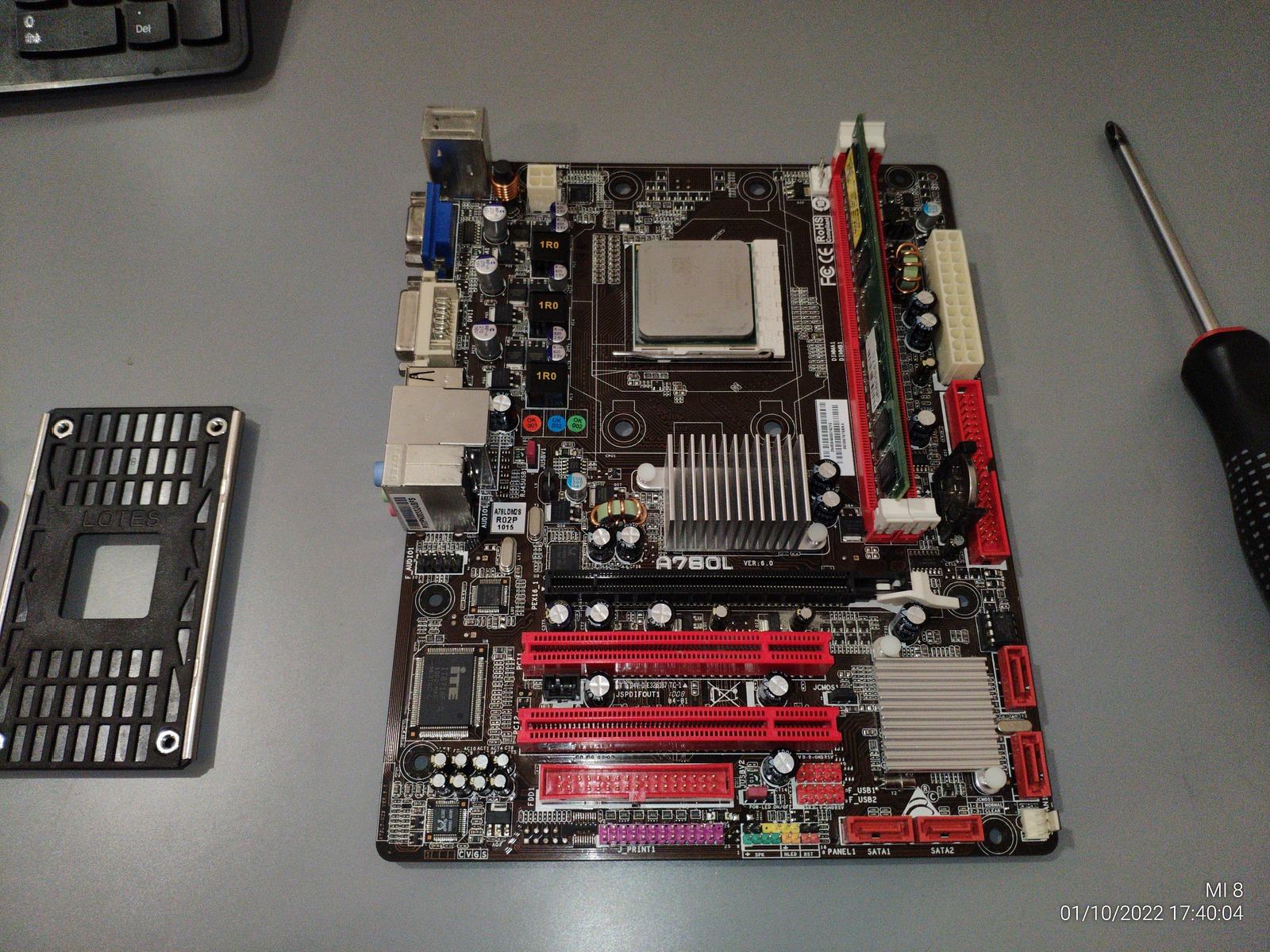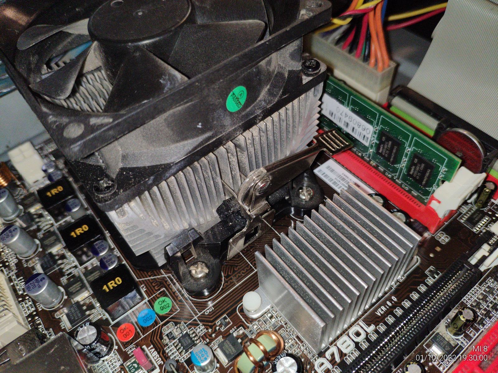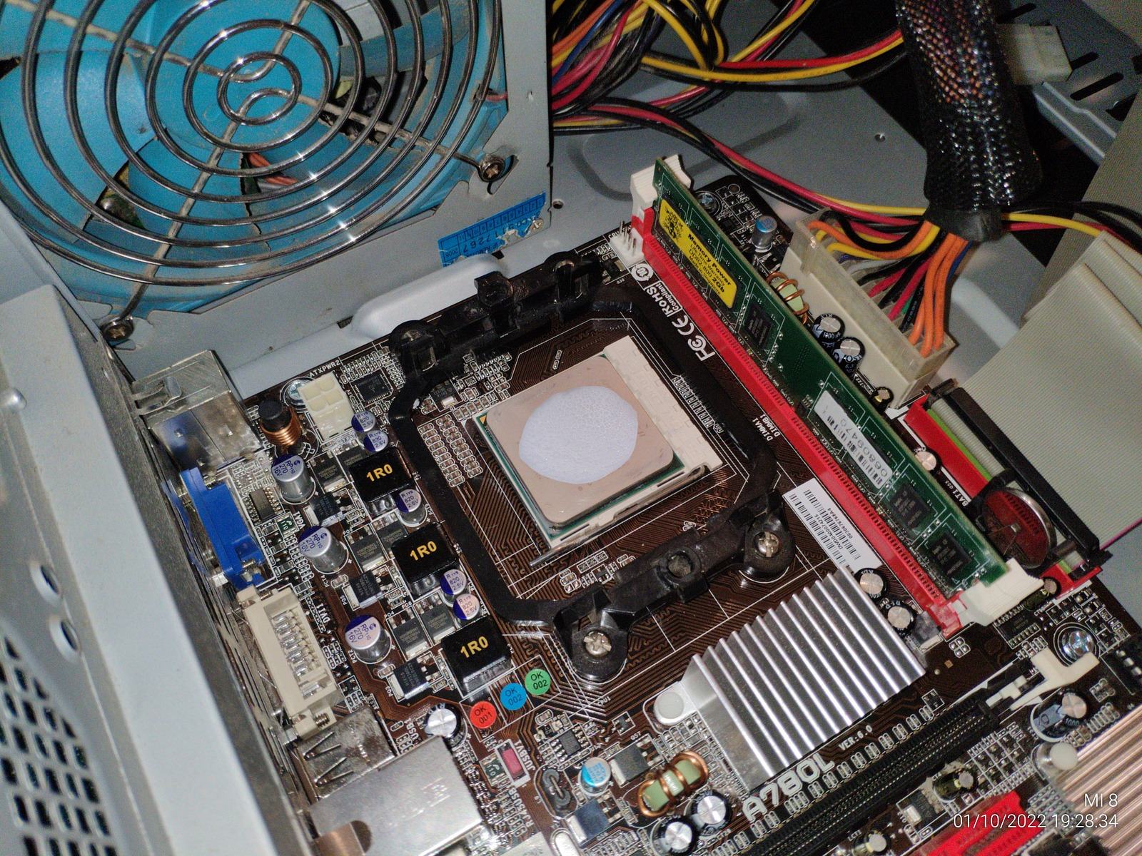 Наконец я добрался до процессора, заменил Athlon64 x2 5000+ на Phenom II x3 720 Black Edition, повесил радиатор без пасты, учитывая отсутствующий прижим я не уверен что охлаждение будет нормально работать, но почему бы не проверить.